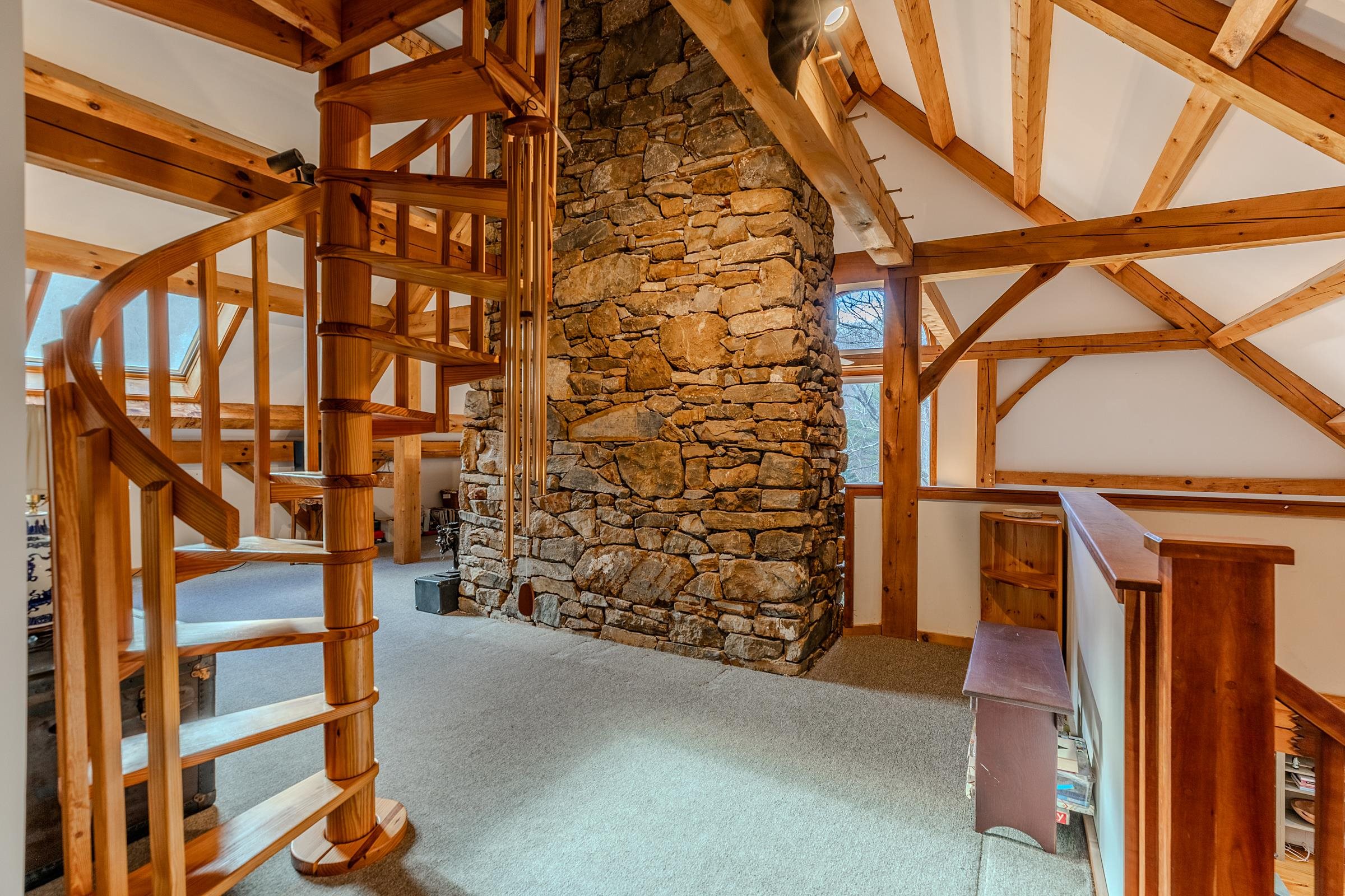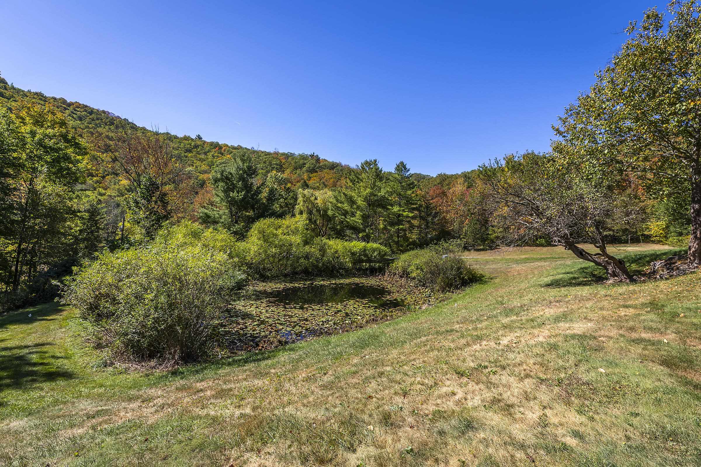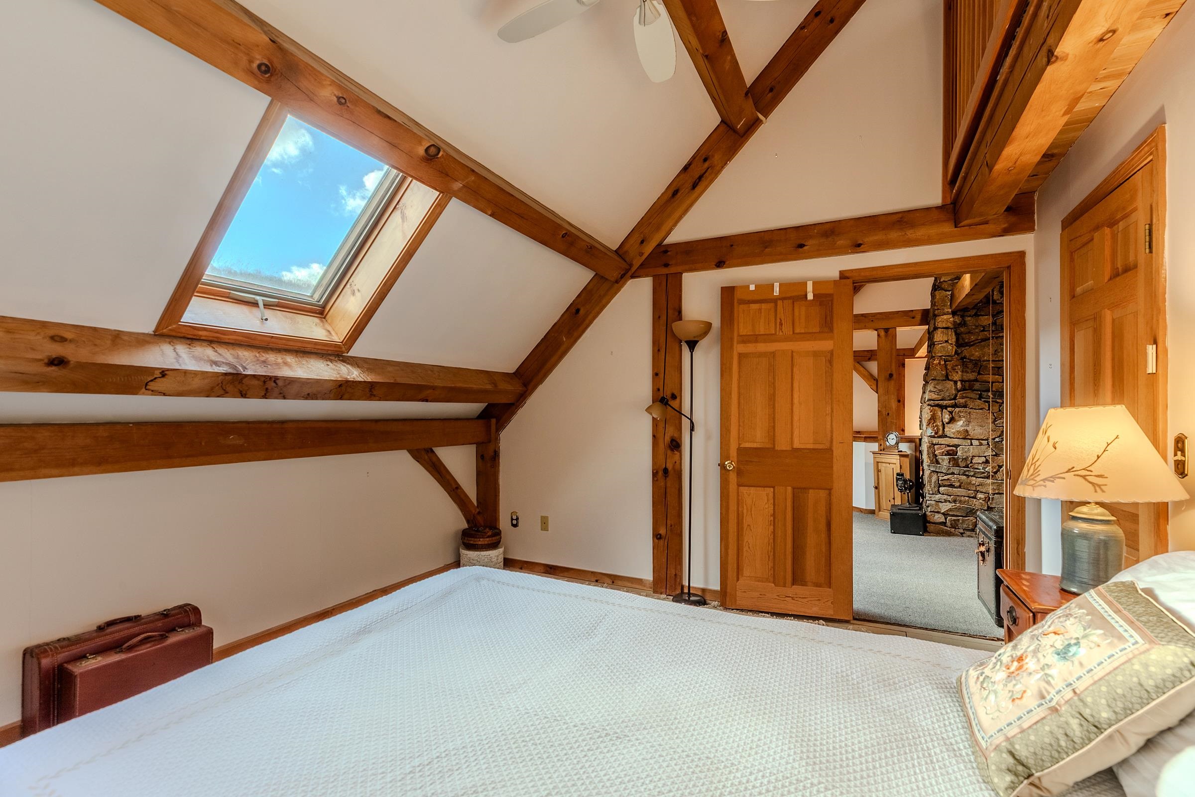 Private, Quiet, and Solidly built timeless Post & Beam 2, 200 SF residence on 10. 05 acres offering South and Westerly sunlight all day long ending with lovely sunsets! Overlooking a spring fed pond and a mix of open terrain and deciduous slope side forest with trails. The house offers main level all open 40' X 32' great room living / dining/ kitchen with a massive center 2. 5 story stone fireplace. Wonder up the cherry staircase to a lovely loft 23' X 15' that suffices as another seating area or office. . . there's two bedrooms and bath. The third level offers a sizable overflow room or BR. Lower walk-out room is currently the primary suite with slate floor, 3/4 bath and spacious office sitting room that closes off with pocket doors. The 30. 5' X 19' storage room above the 2 bay attached garage has direct access from the mudroom. Great for an artist studio, gym/yoga space, bunk room or guest over flow. Step outside to enjoy a spacious deck, and a patio complete with a relaxing hot tub—perfect for unwinding or entertaining guests. House includes a full-house generator for uninterrupted comfort. Ideal as a full-time residence, mountain escape, or remote work sanctuary, this property offers limitless possibilities for those seeking beauty, solitude, and craftsmanship that stands the test of time.