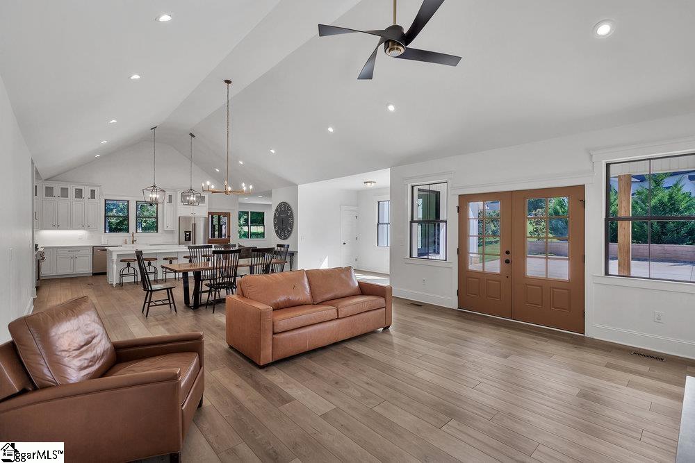 Farmhouse-Inspired Home on 1. 93 Acres with Saltwater Pool. Beautiful farmhouse-inspired home on 1. 93 acres featuring an open floor plan, soaring ceilings, and oversized windows that fill the home with natural light. Triple-terraced saltwater pool includes a diving board and sun deck, overlooking a fenced backyard and farmland. The gourmet kitchen offers custom inset cabinets with brushed gold pulls, large island, quartz countertops, pot filler, ZLINE Autograph Edition dual-fuel oven with 6 burners, griddle, and double ovens, plus a commercial vent hood. Spacious living room with slate-hearth fireplace and wide wood mantel includes a flex space ideal for office, music, or sitting area. A warming room behind the kitchen provides additional versatility. Primary suite on the main opens to the back porch and features a tiled walk-in shower, dual vanities, and large walk-in closet. Two additional main-level bedrooms share a Jack-and-Jill bath. Upstairs includes a large bedroom/bonus room with a walk-in closet. Additional features: Oversized L-shaped front porch and large back porch with brick fireplace. High-end wide plank scratch- and dent-resistant flooring, Energy-efficient wood double-pane windows, Tankless gas water heater, Large laundry room with sink on main level. Convenient location next to Easley schools and JB Owens baseball field. Easy commute, just 20 minutes to Clemson and downtown Greenville. Enjoy the Easley lifestyle in this fabulous 4 bedroom, 3 bath home. Built in 2019 with a clean and well-planned 3131 sqft floorplan. This isn't just a house, it's the lifestyle you've been waiting for. Come see it today before someone else call it home.