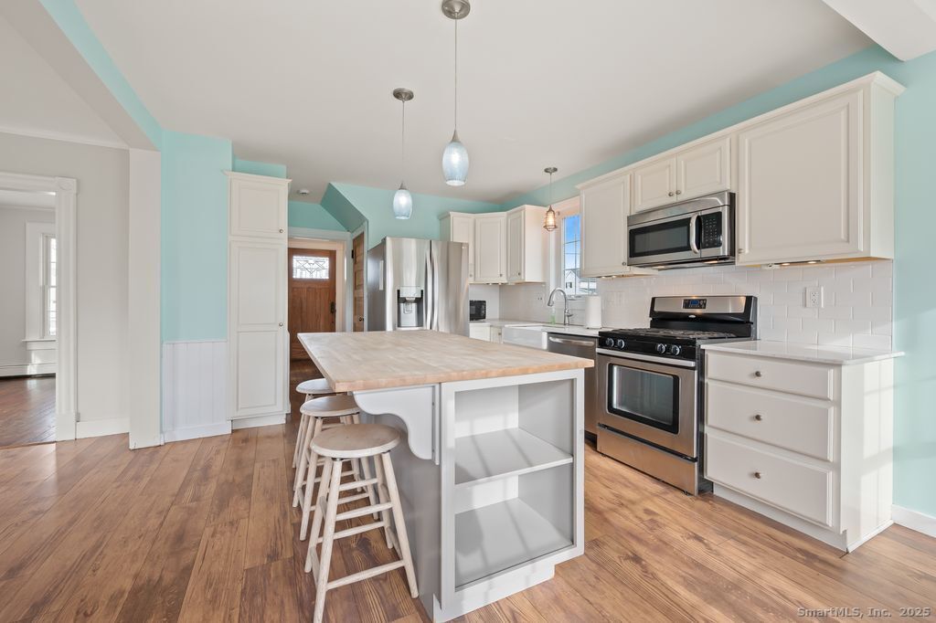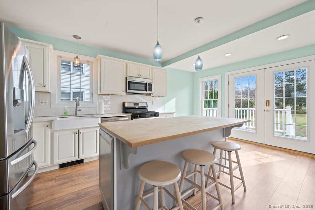 This property invites you to step into the story and start your own. Welcome home. In the heart of downtown Glastonbury, where history lingers and location matters, stands a home at 31 Melrose Street, one of the few downtown streets left. Located in the Buttonball Lane district this home is a place where memory breathes and dreams take root. Open the front door to warmth and welcome, guiding you through rooms that glow with quiet charm, from the inviting living room that is generously proportioned, to the dining room's gentle light that keeps everyone connected and within view, perfect for all gatherings. At its heart lies a light-filled, open plan kitchen, where aroma mingles with laughter and recipes become the language of love and memories. On the new rear deck and patio unite with the outdoors as this home promises long evenings of conversations, storytelling, friends and family. Updates include: 2 new front windows, Boiler and Hot Water Heater (2022), New paint throughout (2025), New refrigerator (2025), New stone paver patio and new composite decking (2024). Updated kitchen. Hardwood throughout & under all laminate. Here, at 31 Melrose Street, every corner whispers of possibilities. A sanctuary awaiting its next chapter, for new hands to shape its story, for new hearts to call it home. Within its walls, time softens, and life unfolds like poetry written in sunlight and laughter on the front porch as you watch life walk by, as the sun sets for the next chapter.