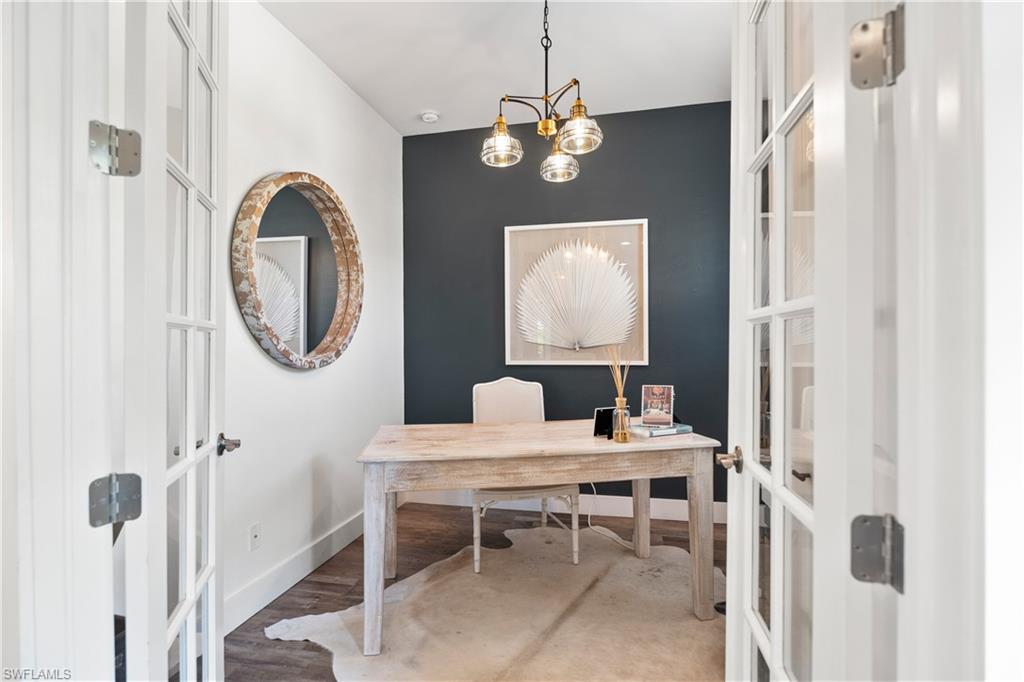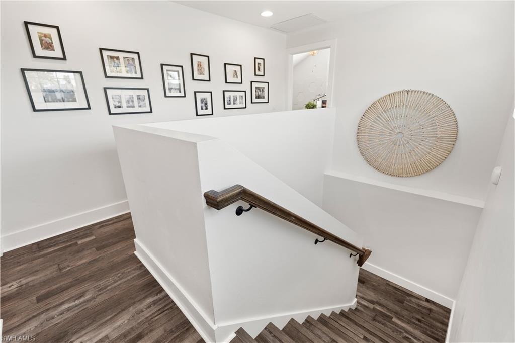 Upstairs, a Jack-and-Jill bedroom configuration (with one room currently serving as a second office) provides generous closet and storage space. Luxury vinyl flooring spans the entire home, complemented by custom detailing on the staircase for both beauty and durability. The garage has a private door and can be converted into a fabulous office space for 2, letting you use all the bedrooms, for well bedrooms.