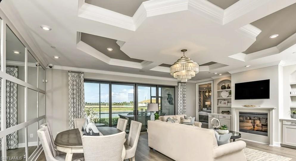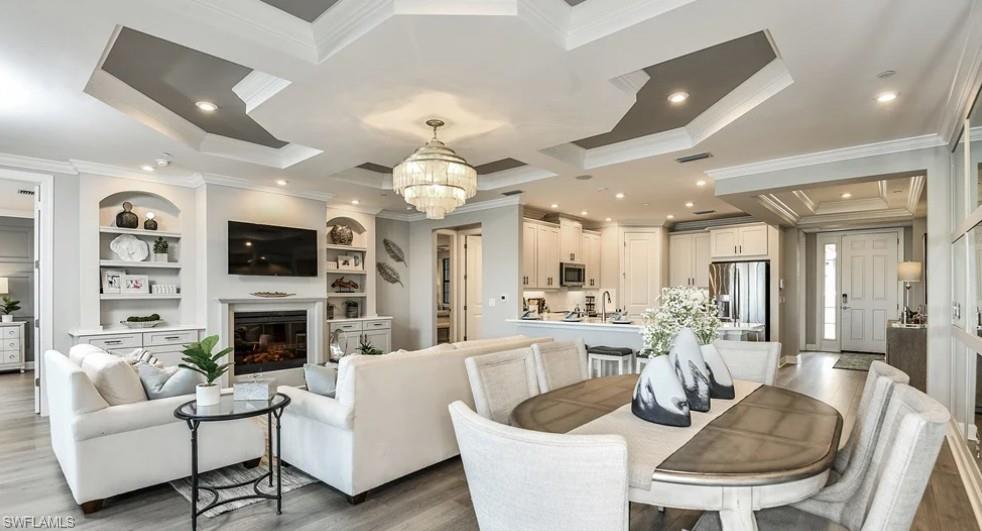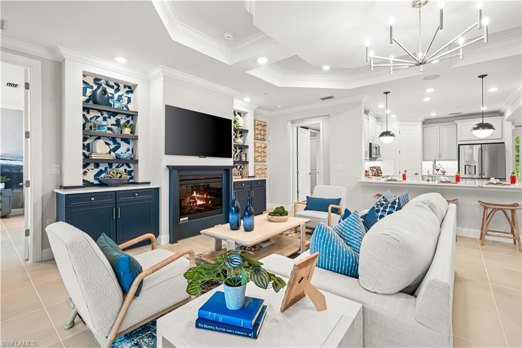 Welcome to the Vitale at 15339 Giardino Drive, Unit 103 in Esplanade by the Islands Coach Homes. This first-floor Vitale VII offers 1, 717 square feet of thoughtfully designed living space with 2 bedrooms and 2 bathrooms, all set within the beautiful Esplanade by the Islands community in Naples, Florida. Step inside and enjoy a spacious central living area that feels open and welcoming. The gathering room flows into the designer kitchen and dining room, creating an easy space for everyday living and entertaining. The owner’s suite is a private retreat with dual sinks, a large shower, and a generous walk-in closet. The secondary bedroom and full bath provide comfort for guests, while the sunny lanai invites you to relax outdoors. A convenient laundry room and other well-appointed features complete this stunning coach home. Additional Highlights Include: Fireplace, quartz countertops, appliances, gourmet kitchen cabinet selections, crown molding, and screened in covered lanai. MLS#225081089