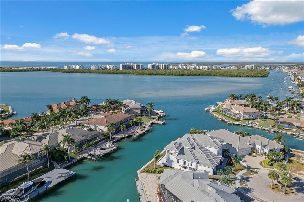 Experience refined living in this exceptional new construction estate by award-winning Stonebreaker Builders, now nearing completion with delivery anticipated by January 2026, where architectural brilliance and timeless craftsmanship converge. Set on a rare tip lot offering 176 feet of waterfront, this residence captures mesmerizing western sunset views over expansive converging waterways, with vistas stretching across Collier Bay toward the Gulf. This is a rare opportunity to own a custom Stonebreaker home in one of the island’s desirable neighborhoods, offering proximity to Snook Inn, Old Marco entertainment district, the Esplanade and Residents’ Beach. Designed for luxury and livability, the impressive 3, 896-square-foot two-story estate offers 176 feet of waterfront and quick direct Gulf access, an exceptional advantage for boating enthusiasts. This five-bedroom residence features five full en-suite baths, two half baths, a flex room and a three-car garage, all executed with Stonebreaker’s signature attention to detail. The exterior showcases a flat tile roof, impact doors and windows, and an elevated homesite over 11 feet. A grand foyer with a soaring two-story ceiling immediately sets an elegant tone. The open-concept great room, kitchen, and dining area feature 12-foot ceilings and expansive glass accordion doors that frame shimmering pool and bay views, creating effortless indoor-outdoor living. The great room centers around a striking 60-inch gas fireplace with a tray ceiling, while the chef’s kitchen impresses with a beamed ceiling, gas cooktop, large center island and walk-in pantry. The outdoor living area is ideal for luxurious waterfront entertaining, offering a covered lanai with an outdoor kitchen, built-in gas grill, outdoor shower, a dedicated pool half bath, and a 30-foot pool with spa and sun shelf. The main-floor owner’s suite offers a serene retreat with lanai access, two walk-in closets and a spa-inspired bath with dual vanities, a built-in makeup counter, linen closet, dual walk-in shower with multiple shower heads and a deep soaking tub. A secondary owner’s suite on the first floor also offers lanai access, a walk-in closet and en-suite bath. Upstairs, a spacious flex room creates an ideal lounge space and opens to a remarkable 65-foot covered balcony overlooking Collier Bay and the Gulf. Three additional second-floor bedrooms each feature private en-suite baths. Additional highlights include a mudroom off the garage and a tankless water heater. Embrace sophisticated waterfront living in this unparalleled Marco Island residence, crafted with exceptional quality and now approaching its final stages, with completion expected by end of January.