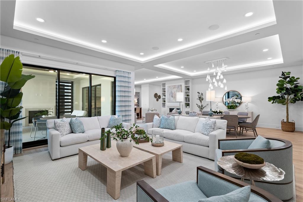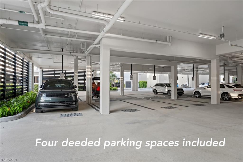 WALK TO 5TH AVENUE/DOWNTOWN NAPLES! A true one-of-a-kind! Welcome to Stella Naples, where luxury meets exclusivity in the heart of Olde Naples. Built in 2024 with only nine total residences (each with their own PRIVATE ROOFTOP DECK), this newly constructed boutique building redefines upscale, low-density living, just steps from the world-renowned 5th Avenue South, historic Downtown Naples, and the white sandy beaches of Naples. Unit 301 is an extremely unique residence consisting of two units that were combined during original construction and offers nearly 4, 100 square feet under air, 4 bedroom suites (each with a private ensuite bath), den, music room, 4. 5 baths, two covered lanais (with motorized roll down privacy/bug screens) each with their own gas fireplace, and FOUR DEEDED PARKING SPACES underneath the building. This tastefully designed top floor, end unit condo offers an open concept floor plan with 10’ ceilings, 4 sets of sliding glass doors to the two lanais, and rich wide plank European White Oak wood floors that flow throughout. The Kitchen has been outfitted with custom Ruffino cabinetry, Cambria quartz countertops, top of the line appliances including a 48” eight burner GAS Viking range and Sub-Zero refrigerator/freezer. Just off the Kitchen is a generously sized walk-in pantry with Miele speed oven. The impressive wet bar is complete with a wine cooler, ice maker, and ample bottle/glass storage. The impressive primary suite features its own private lanai with gas fireplace, separate his & hers walk in closets with custom shelving/drawers, auxiliary washer/dryer, music room with hidden storage closet, bath with oversized shower & free standing soaking tub, and a private den. Accessed from within the condo, the private 1, 000 sq ft roof top deck is the perfect spot to enjoy the Naples sunset or entertain family & friends around two fire pit areas or outdoor kitchen complete with a gas grill and refrigerator, creating the ultimate setting for sunset cocktails before dining at one of the many iconic restaurants here in Downtown Naples. A long list of special features can be found throughout: motorized shades on all windows; custom window treatments/curtains; custom wallpaper details; recessed lights in all rooms; reverse osmosis water filtration system; in-ceilings speakers; 8’ solid core doors with Emtek hardware; stained cypress wood ceiling accents on the lanais; custom Ruffino cabinetry with Cambria countertops; designer Brizo, Rohl & Kohler bath fixtures; and more! Residents of Stella Naples enjoy an exclusive collection of amenities, including a sunny Southern-exposure 24/7 heated pool, state-of-the-art fitness center with an outdoor turf area, and an elegant club room. The building also provides four deeded parking spaces, ample guest parking and state-of-the-art security, featuring facial recognition technology and smartphone-integrated video access panels. Experience the finest in Downtown Naples luxury living at Stella Naples.