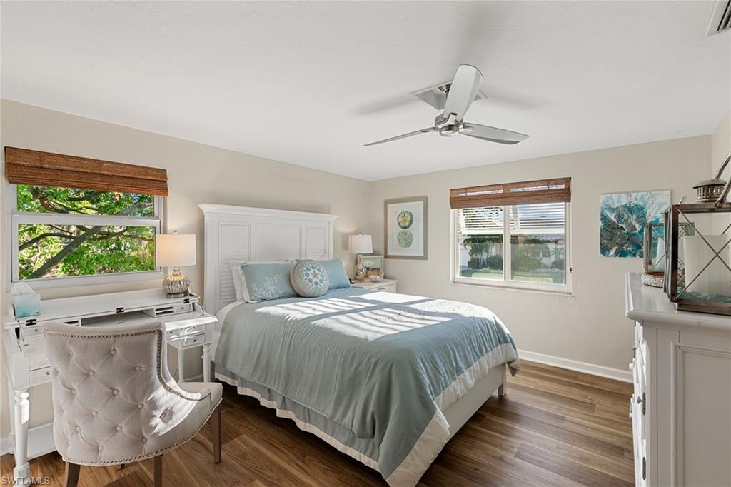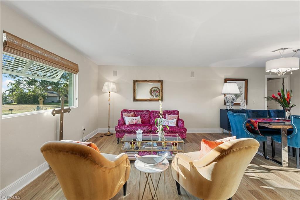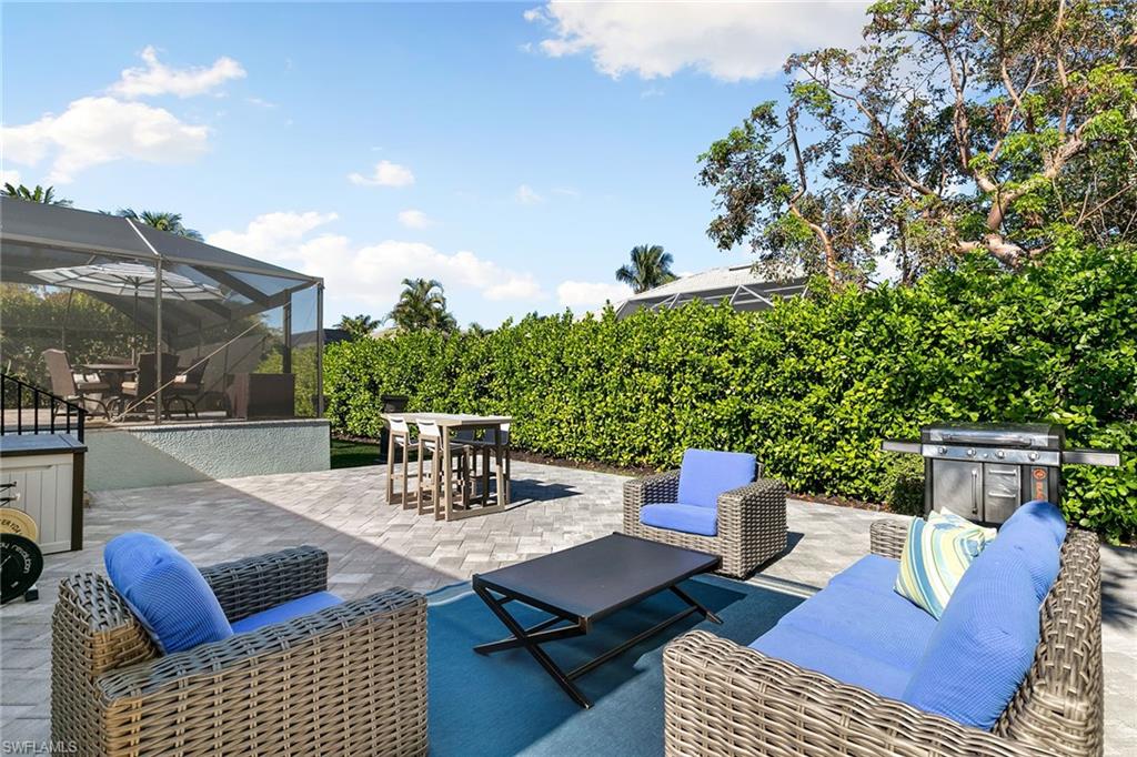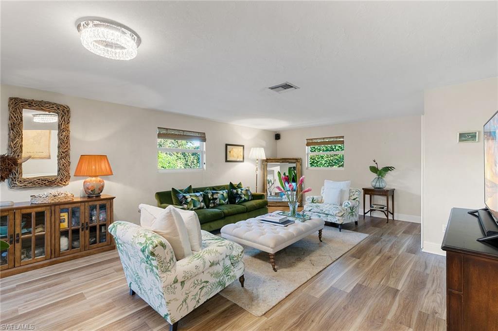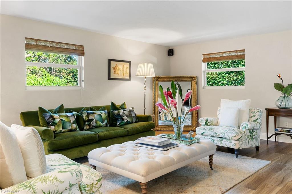 This beautifully updated island residence offers fabulous outdoor living space and is conveniently near renowned beaches, shopping and dining in the desirable Tigertail neighborhood of Marco Island. The thoughtful floor plan features a primary bedroom for privacy at one end of the home, with two additional bedrooms in a separate wing for guest comfort. There are two full baths, as well as distinct living and family rooms. Custom blinds have been installed throughout the property. The kitchen has been modernized with Big Chill appliances. The home boasts numerous upgrades including a new air conditioner (2019), metal roof (2020), hurricane-impact glass windows and doors (2021), and a hurricane-rated garage door (2022). Elegant honey oak luxury vinyl plank flooring provides a coastal aesthetic with a contemporary finish. The expansive outdoor area is designed for entertaining, featuring a newly added, large rear paved patio and a state-of-the-art Buzz Off system. The updated pool area includes a resurfaced oversized pool and full panoramic screens. Lush tropical landscaping surrounds the property, and the yard is enclosed with a wrought iron fence, ideal for children and pets. There is also the potential for an additional quarter-acre expansion. Experience a seamless transition to the Island lifestyle in this exceptional property, a rare opportunity and a must-see.