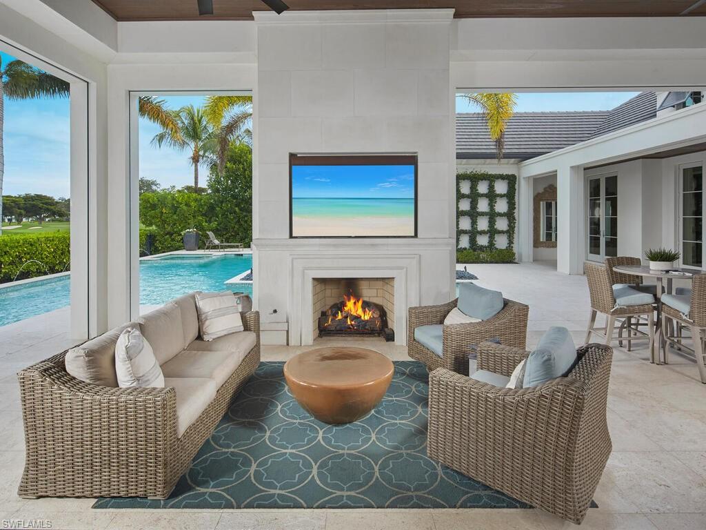 IMMEDIATE GOLF MEMBERSHIP AVAILABLE! An exceptional single-level custom estate along prestigious Prato Way in Talis Park, offering refined design, superior craftsmanship, and sweeping views across the newly renovated 14th fairway. Built to the highest standards, this residence pairs timeless finishes with a spacious and highly functional layout that blends privacy with effortless flow. Inside, a stunning gourmet kitchen anchors the home with custom cabinetry, beautifully integrated built-ins, two expansive islands with cristallo countertops, dual Sub-Zero refrigerators, two dishwashers, a private coffee bar, and a large walk-in pantry. A discreet bar/lounge, with walk-in wine room for the wine enthusiasts, creates a separate entertaining zone, while the oversized great room showcases vaulted ceilings, elegant beams, and wide-plank oak flooring throughout. Multiple sets of glass doors open to a full outdoor living area with a resort-style pool, sun shelf, covered seating areas, and a fully equipped outdoor kitchen, all overlooking lush fairway vistas. The primary suite offers a serene retreat with sophisticated millwork, abundant natural light, and a spa-inspired bath with dual showers. All rooms maintain the ease and comfort of single-level living rare for homes of this scale; all bedrooms are en-suite. Residents of Talis Park enjoy one of the most beautiful club environments in Naples, featuring a grand clubhouse with dining, fitness, and social spaces; a charming café for casual gathering; tennis, pickleball, and bocce; and a championship golf course fully redesigned for modern play. This home is an extraordinary opportunity to own a meticulously designed estate in one of Naples’ most sought-after luxury communities.