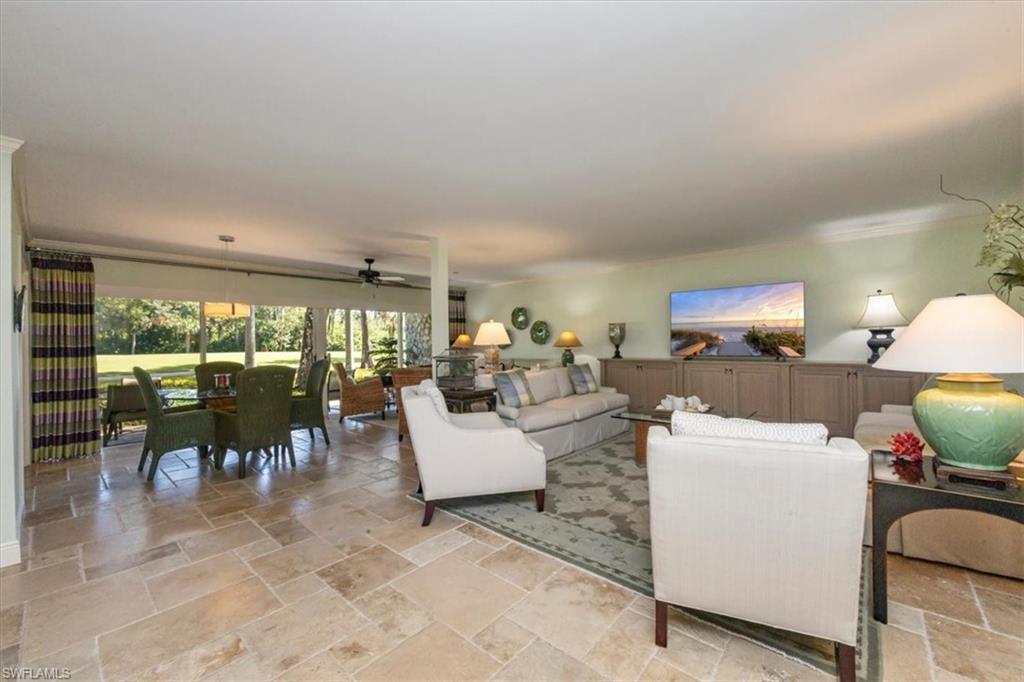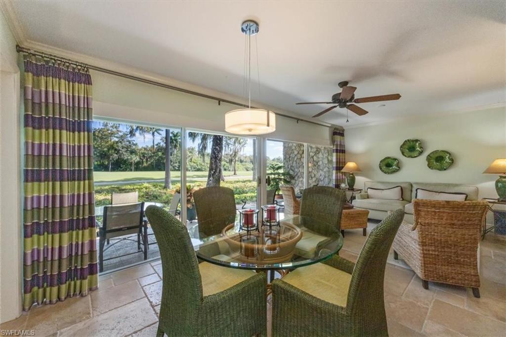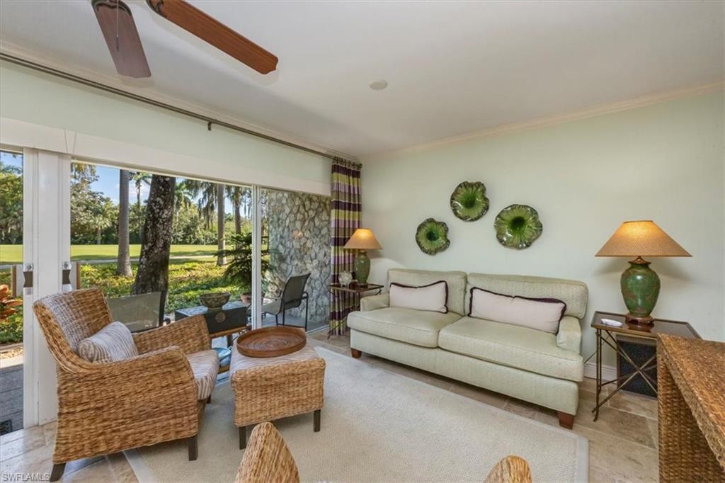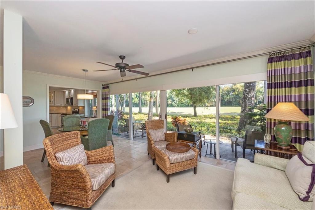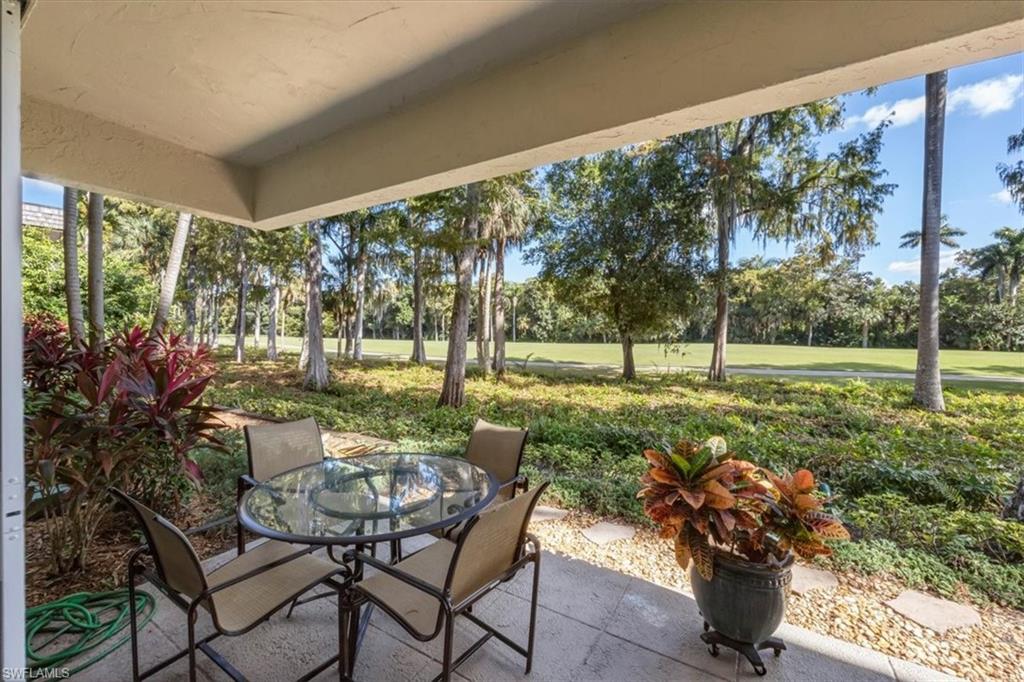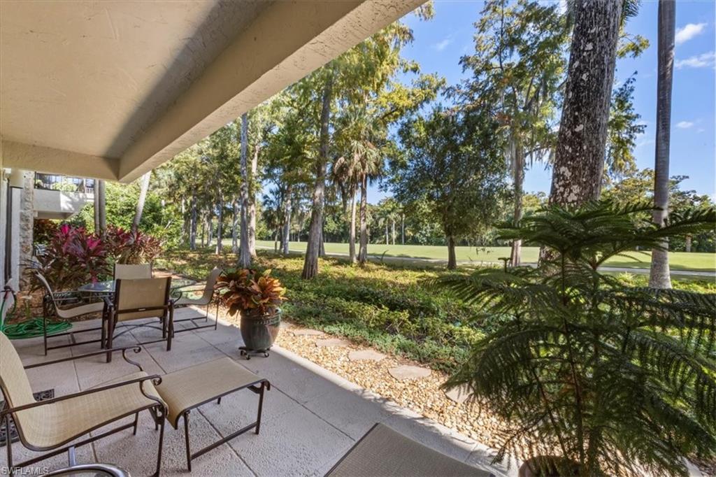 Welcome to the prestigious Wilderness Country Club—a premier golf community in the heart of Naples, known for its exceptional service, lush natural surroundings, and abundant wildlife. This meticulously remodeled first-floor residence features two bedrooms and two full baths, offering the perfect blend of modern luxury and Florida charm. Enjoy picturesque golf course views right from your private patio—an ideal spot to relax, entertain, and appreciate the peaceful beauty of nature. Inside, the light-filled open-concept floor plan highlights a stunning gourmet kitchen with upgraded granite countertops and backsplash, custom built-ins, ivory raised-panel cabinetry, and stylish light luxury tile flooring. Additional enhancements include impact-rated sliders and tastefully neutral finishes for a bright, timeless aesthetic. The spacious primary suite is a true retreat—boasting an expansive spa-like bathroom with custom built-in cabinetry, a beautifully tiled walk-in shower with seamless glass, impressive lighting, and a full-size laundry room for added convenience. This condominium includes your own golf cart and a private golf cart garage located adjacent to your reserved covered parking space. This gated paradise is an Audubon Cooperative Sanctuary set within a 200-acre forest with stunning landscaping and mature trees overhanging roadways. Wilderness Country Club offers a spectacular state-of-the-art clubhouse, driving range and practice green, 5 saltwater pools, 4 Har Tru tennis courts, bocce courts, croquet, and a dog park. It is located minutes away from charming shopping and dining at 5th Avenue and Old Naples and a mile to white sand beaches. Purchase of a Wilderness Country Club membership is required and immediately available.