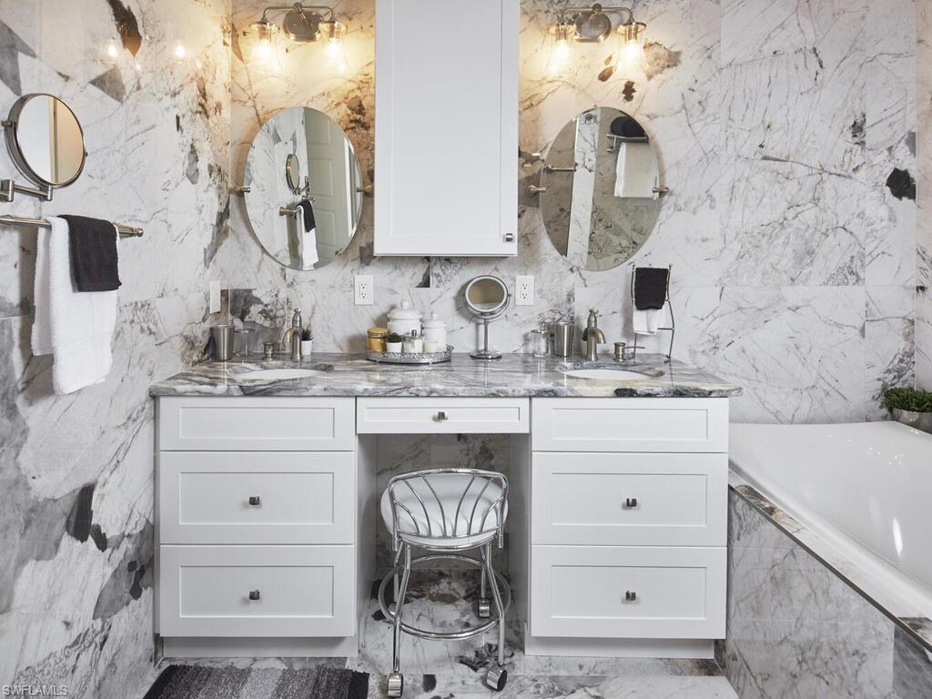 LOCATION LOCATION LOCATION. Impeccably Renovated Park Shore Villa. Nestled in one of Naples’ most coveted enclaves, this central villa in Park Shore offers the perfect blend of privacy, elegance, and coastal convenience. Fully renovated in October 2023, the interior boasts new cabinetry, countertops, appliances, bathrooms, and flooring, complemented by thoughtfully designed built-ins, a locked safe, and abundant storage throughout. The original Lanai has been converted to an under air private den/study giving additional under air square footage. Hurricane french slider doors enter from the den into living room. Just outside the den is a beautifully paved lanai that features a serene private backyard framed by lush landscaping and a hedge, ensuring quiet seclusion. The front is accessed via a gated paved courtyard for morning coffee or your dogs to enjoy the outdoors while adding charm and security. A central unit of three connected homes, it is remarkably quiet and boasts economical utility costs, ideal for sophisticated, effortless living. Walk to the community clubhouse, pool, pickleball courts, tennis courts, gym, card room, and other amenities in the clubhouse. Lots of planned activities for the community. Enjoy the exclusive Park Shore lifestyle, including private membership access to the beach and park via a scenic bridge just steps away. Within minutes, residents can savor Naples’ world-class dining, boutique shopping along 5th Avenue, cultural attractions, and pristine Gulf beaches. This villa offers a rare combination of turnkey elegance, safety, and quintessential Park Shore coastal living.