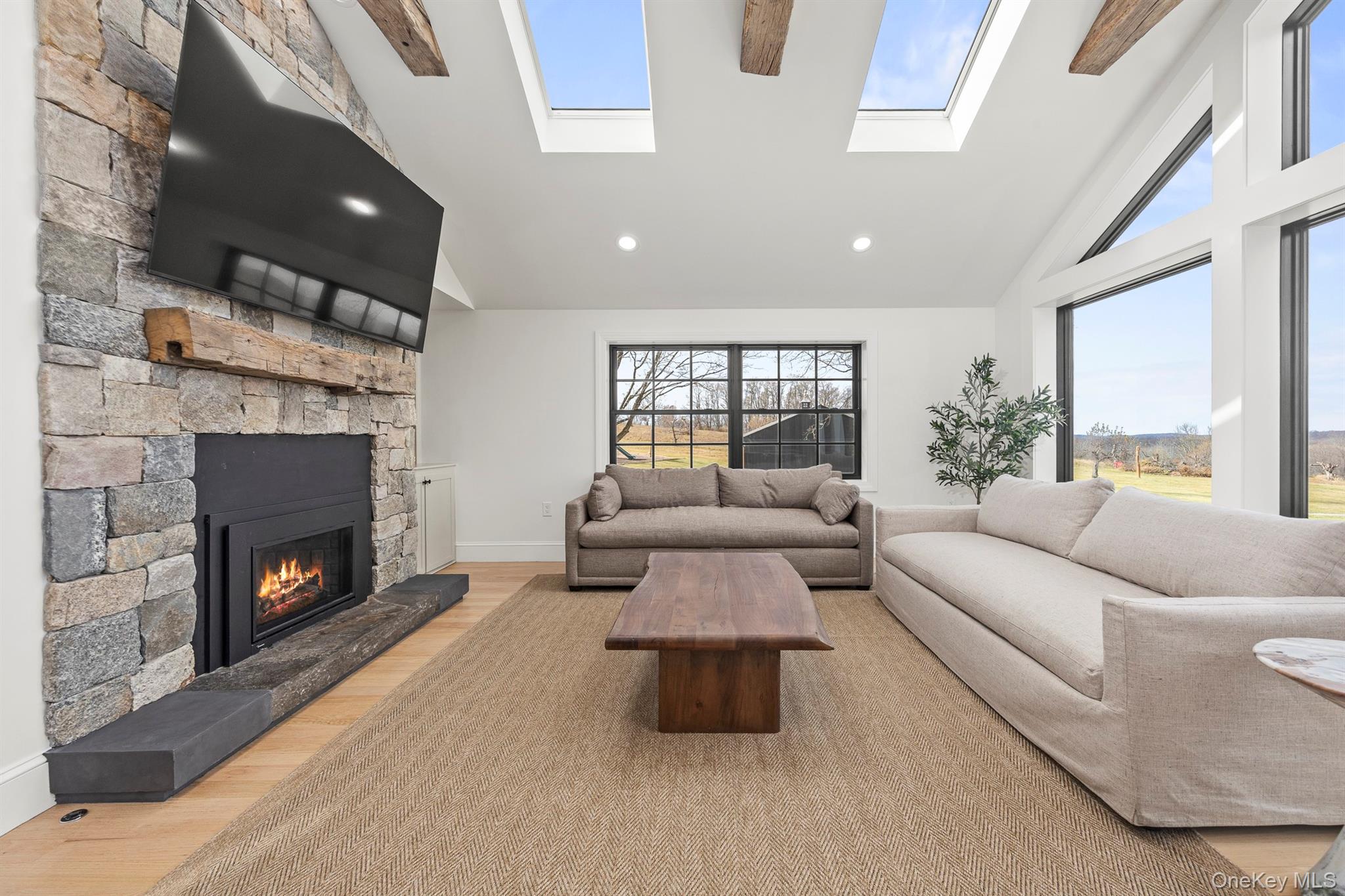 New, never lived in, move in ready, almost 20 acres, just outside the Village of Millbrook, stunning, fully remodeled total renovation (both inside and out), country property with the most gorgeous sweeping Catskill Mountain Views. No expense was spared. Pure luxury inside and out. Inside: All brand new: windows, doors, heating & cooling system, plumbing and electrical, water purification system, white oak flooring, chef’s/entertainers dream kitchen with Wolfe and Subzero appliances, quartzite countertops and backsplashes, and a walk-in hidden pantry, bathrooms with custom micro cement finishing (primary suite has 2 separate bathrooms), soaring beamed ceilings, beautiful stone fireplaces, walls of glass, skylights, completely finished lower level with bathroom and laundry room, added square footage, and much more. Outside: All brand new: Never-ending Bluestone walkways and patios that lead you to the enormous in-ground pool, jaw dropping kid’s play area with zipline, handmade stone gas fire pit with seating, beautiful pond with fountain, hardtop gazebo, and large barn. Stonework, copper gutters, Hardie-board siding, lightning system, and much more. This expansive property offers plenty of acreage to build out and is ideal for creating a compound. All of this and so much more, minutes to the Village of Millbrook and within reach of commuting from NYC.