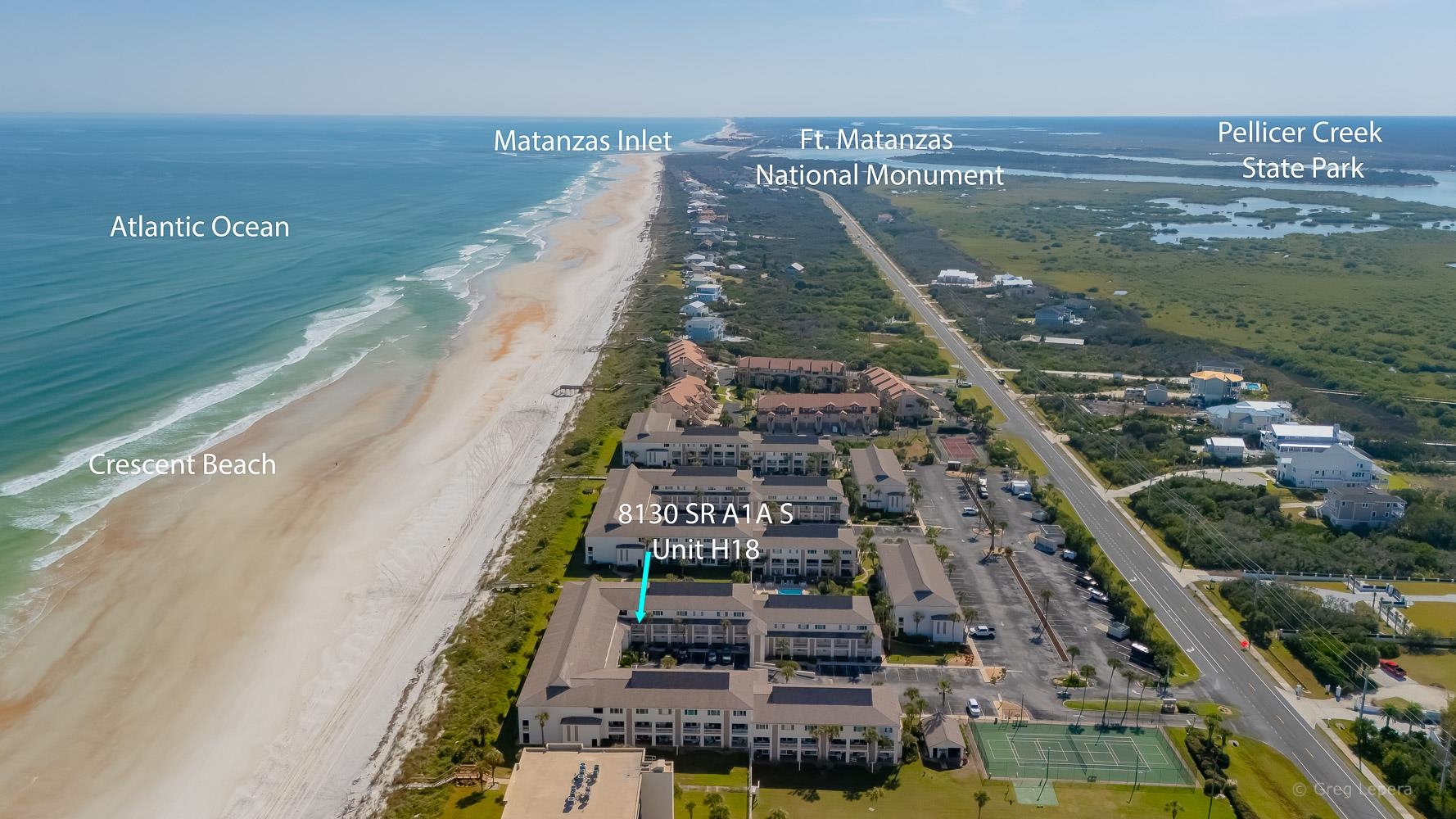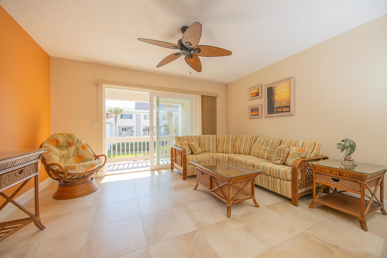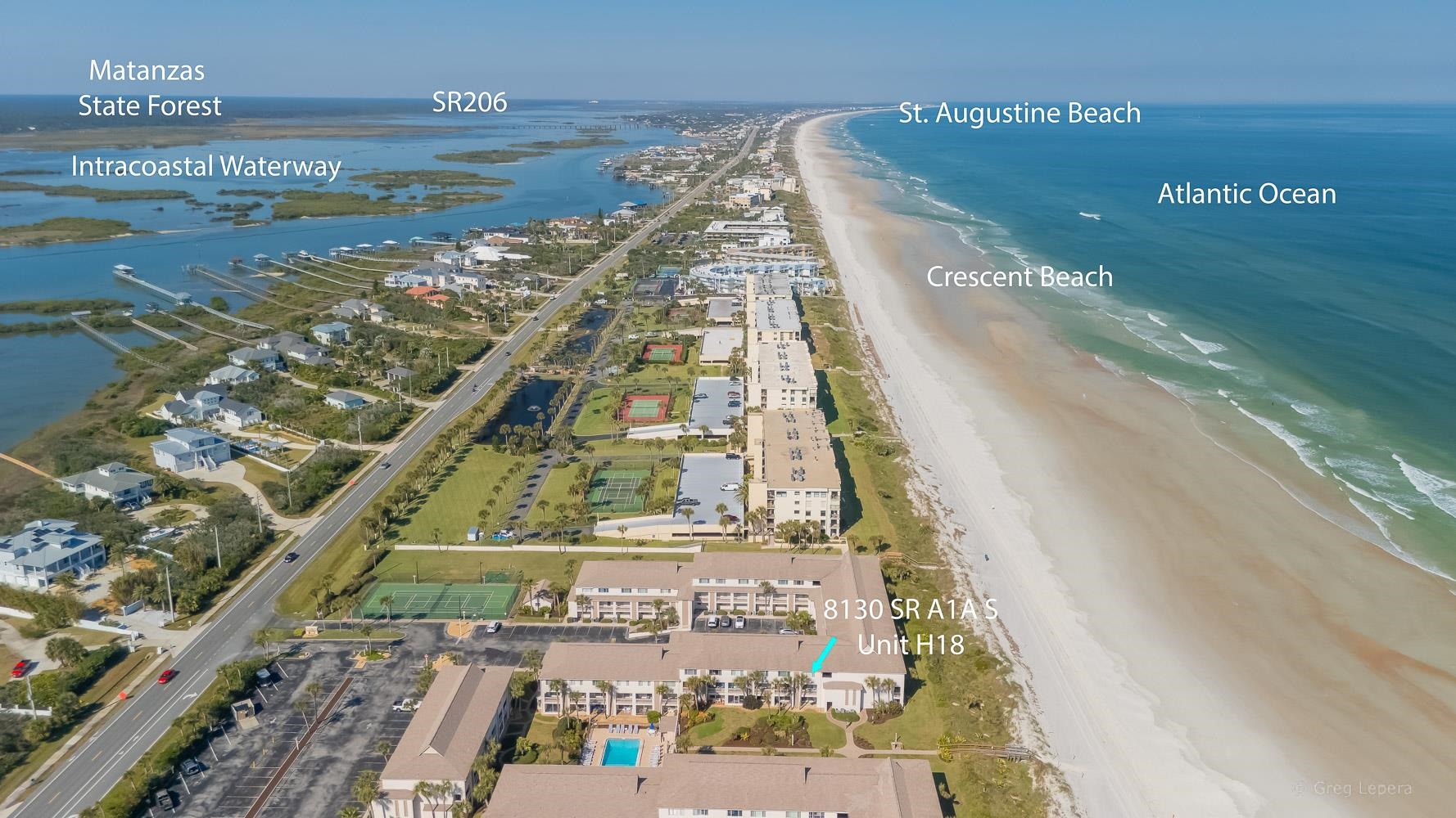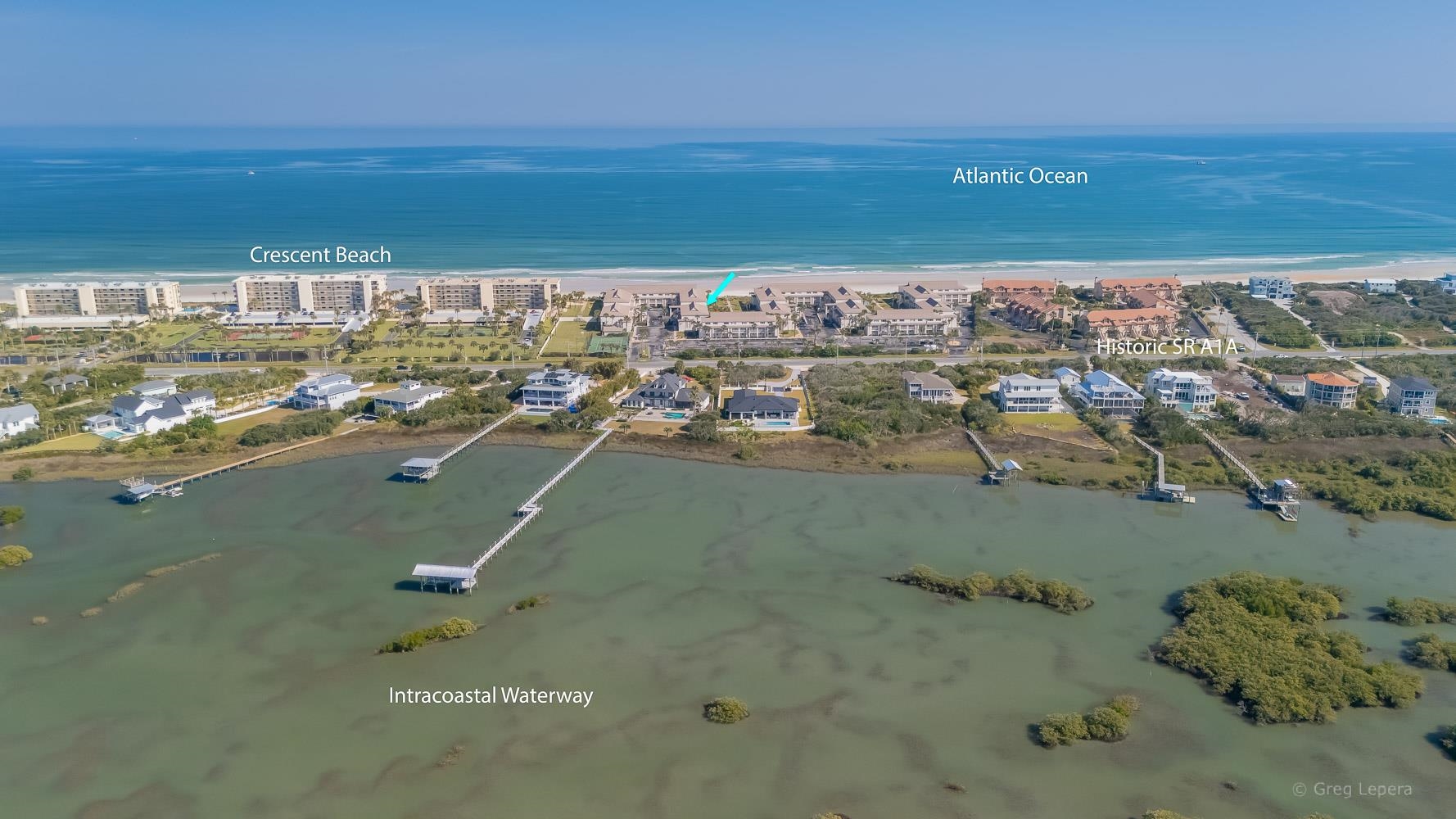 STUNNING OCEAN VIEWS FROM FULLY FURNISHED CONDO 1 BACK FROM OCEANFRONT AT CRESCENT BEACH. This 2BR condo has been beautifully upgraded with travertine floors throughout the first floor. Wood flooring on the stairs and 2nd floor landing with newer carpeting in both bedrooms. Kitchen with stainless steel appliances, plus pull out drawers in the cabinets. Laundry closet has built in cabinets with countertop and full size stackable washer & dryer. Kitchen overlooks light & bright dining/living area to 10 ft balcony with beautiful ocean views & replaced hurricane strength sliding glass door. More gorgeous ocean views from primary bedroom. Bathrooms have been completely remodeled with rich tilework & spacious walk in shower. All windows & doors have been replaced. NO PET RESTRICTIONS!! Bring your boat & park onsite. Intracoastal boat ramp only 1. 5 miles north. Located in the middle of Crescent Beach & far from public drive on ramps. 2 heated pools, 2 dune walkovers, tennis & pickleball! Less than 20 min to shopping centers, restaurants, Amphitheater, historic downtown St Augustine & I-95.