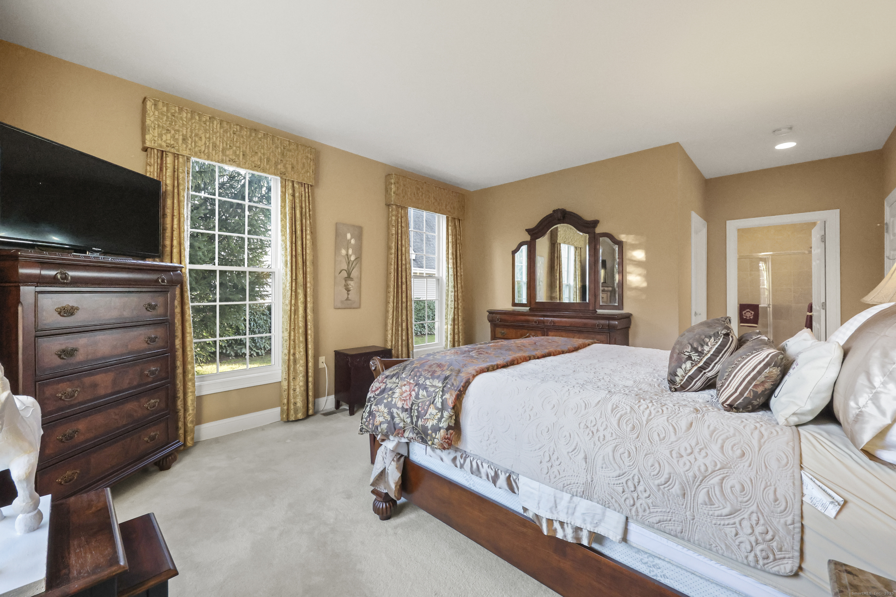 Welcome to carefree living in this sought-after 55+ adult community! This beautifully maintained 3-bedroom home offers an ideal blend of comfort, convenience, and modern design, featuring a first-floor primary suite complete with a spacious walk-in closet and a luxurious bath with double sinks, a stall shower, and a soaking tub. The open floor plan is highlighted by gleaming hardwood floors, natural gas heat, central air, and the peace of mind of a whole-house generator. The inviting living room with a gas fireplace flows seamlessly into the family room, which opens to the well-appointed kitchen-perfect for gatherings and everyday living. A formal dining room and first-floor laundry add ease and functionality. Upstairs, you'll find a second bedroom suite plus an additional large bedroom, offering plenty of space for guests, hobbies, or a home office. Generous closet space is found throughout the home. A full basement provides excellent potential for finishing should you desire even more living space. The property also includes an attached 2-car garage for added convenience. This vibrant community offers wonderful amenities, including a clubhouse with fitness/exercise room and meeting space, walking trails, and a playground/tot lot. A perfect home for those seeking style, comfort, and an active lifestyle-don't miss this opportunity! Seller is Marilyn E Larose Trust, Mark A Larose, Trustee