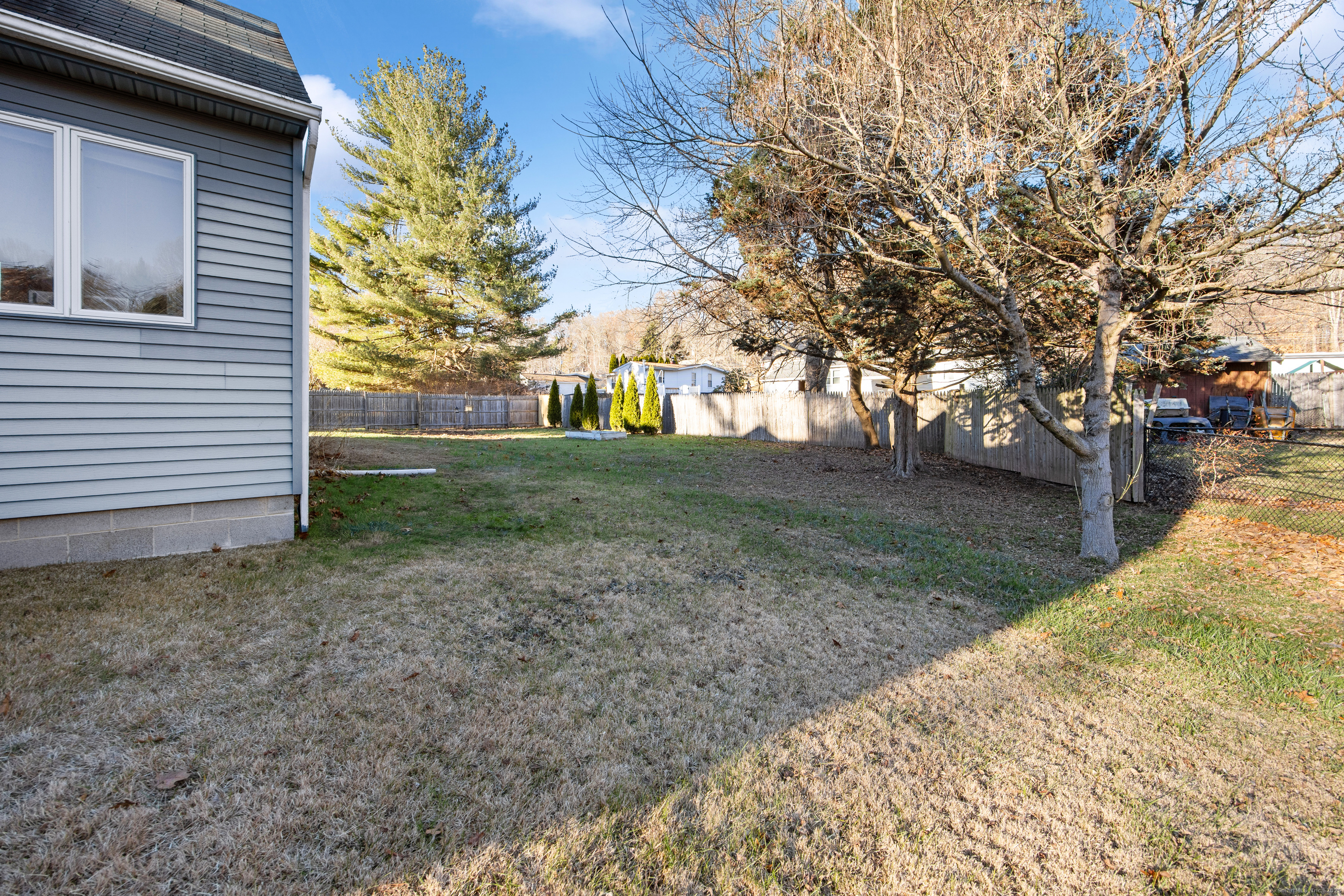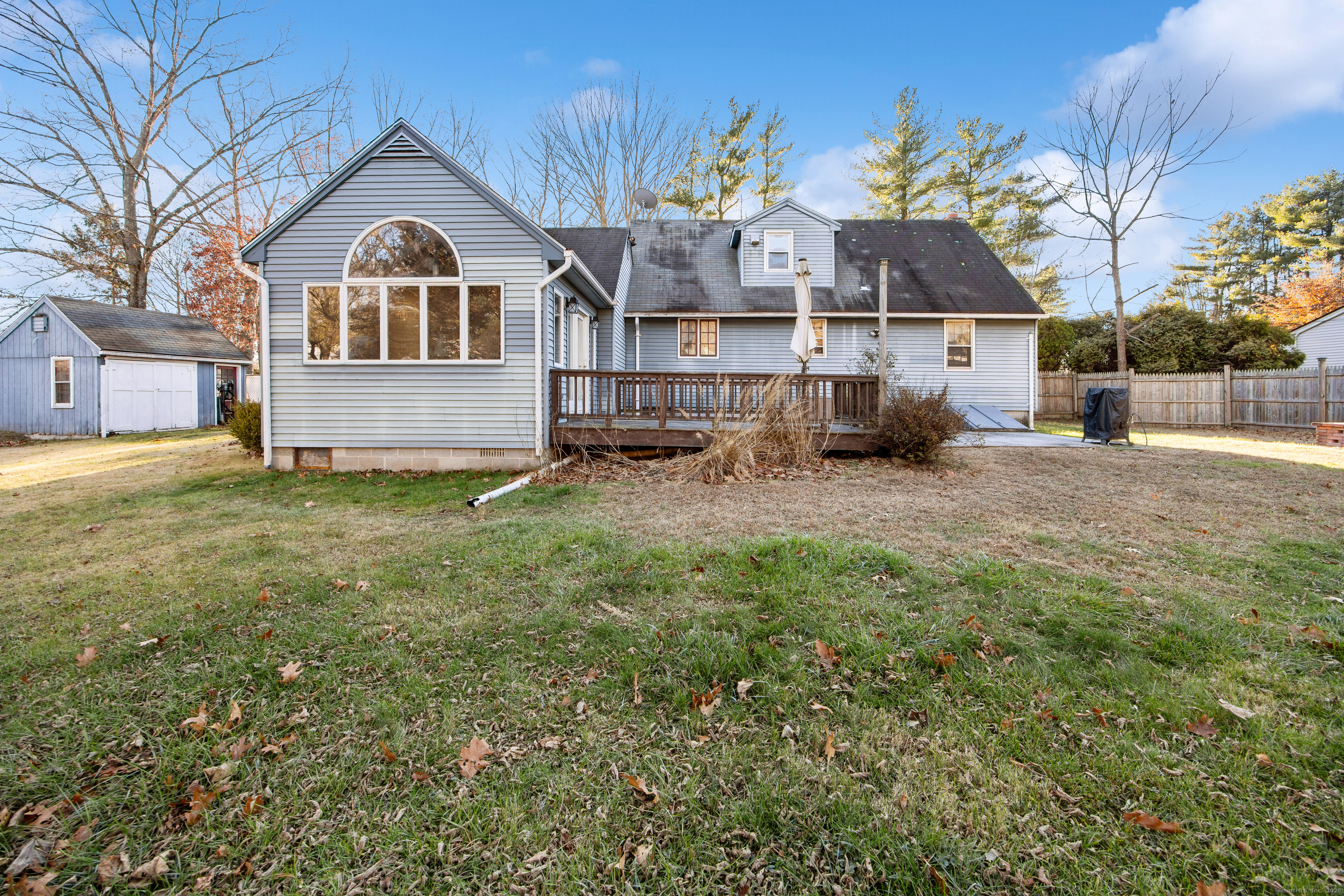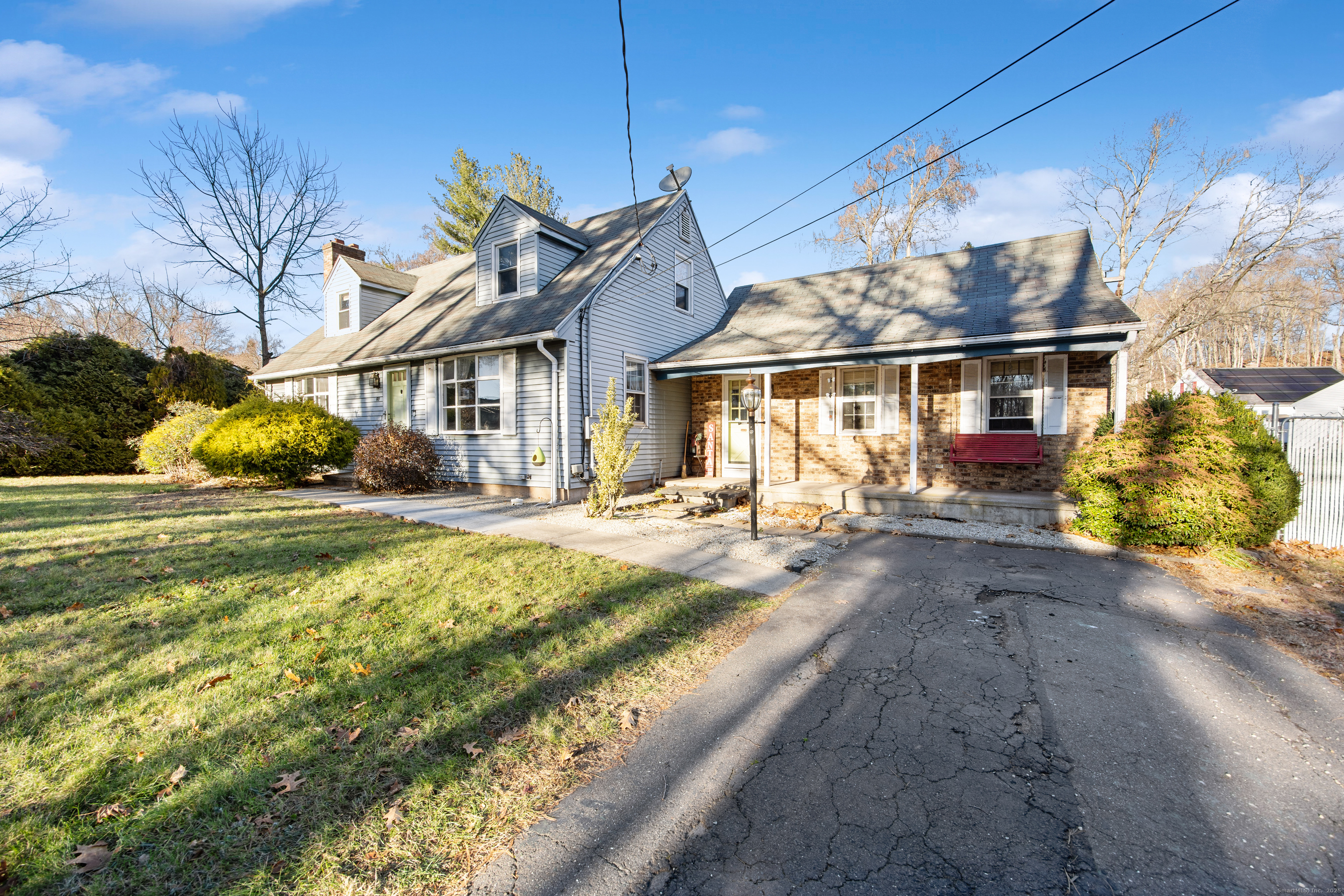 This spacious Cape-style home offers an open and functional layout ideal for everyday living. The modern kitchen opens directly to the dining and family rooms, allowing for easy interaction and flow between spaces. A breakfast bar provides additional seating, and the large tiled sunroom offers access to the rear deck. The backyard provides ample space for outdoor activities, with areas suitable for seating, recreation, and gatherings, including a designated fire pit area. The main level includes a large bedroom and a full bath. The formal living room features a brick-surround fireplace with a full mantel. The second floor includes a primary bedroom, a full bath, and an additional bedroom. The full, unfinished basement offers future expansion potential and includes 200-amp electrical service, a gas furnace, and a Bilco door leading to the backyard. Recent updates include landscaping, new walkway, new patio, and recent interior painting. The home is located within a short drive to Meriden Village, local restaurants, the YMCA, parks and playgrounds, an elementary school, and Hanover/Habershon Field, which offers tennis, basketball, baseball, and access to boating. Schedule a showing today.