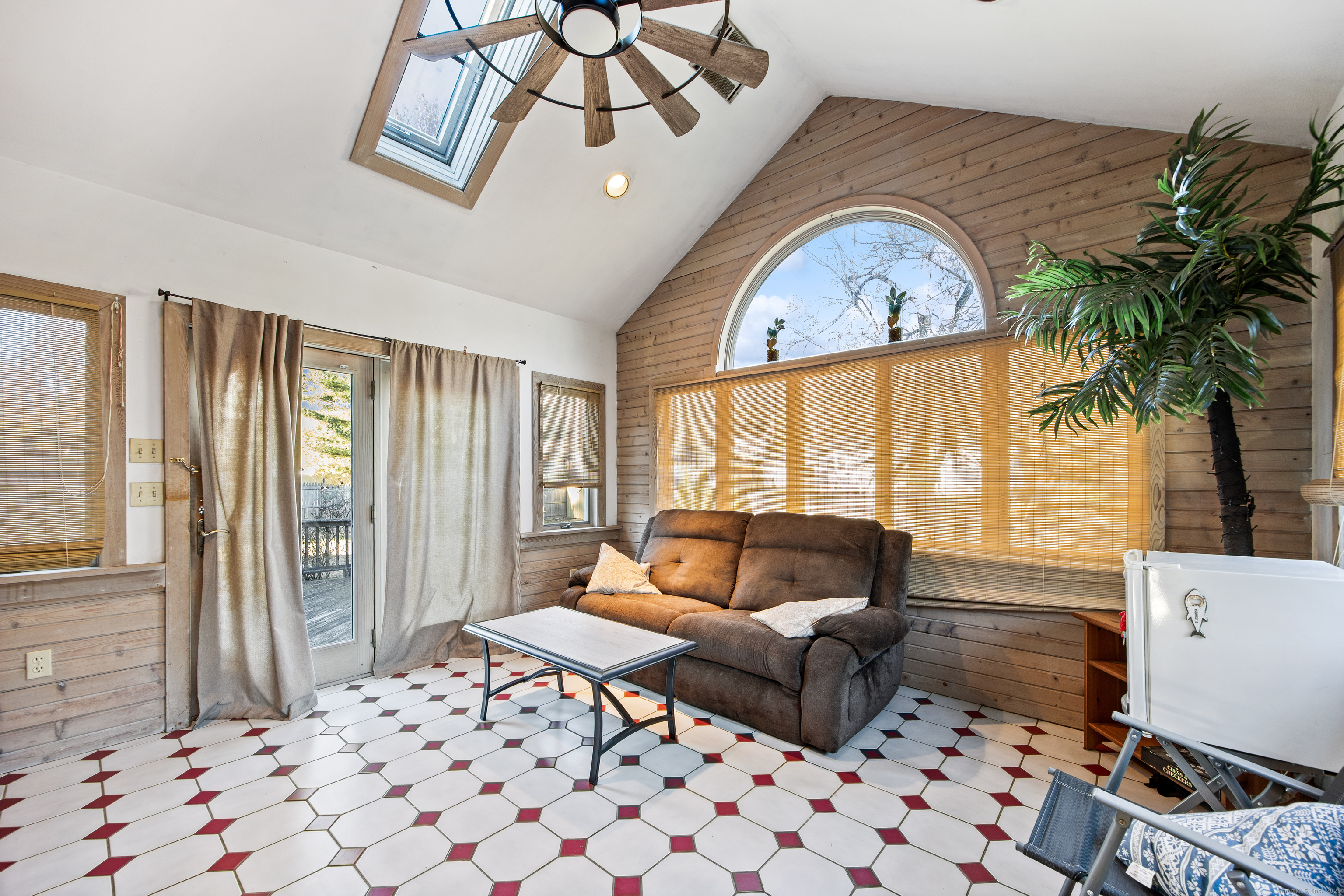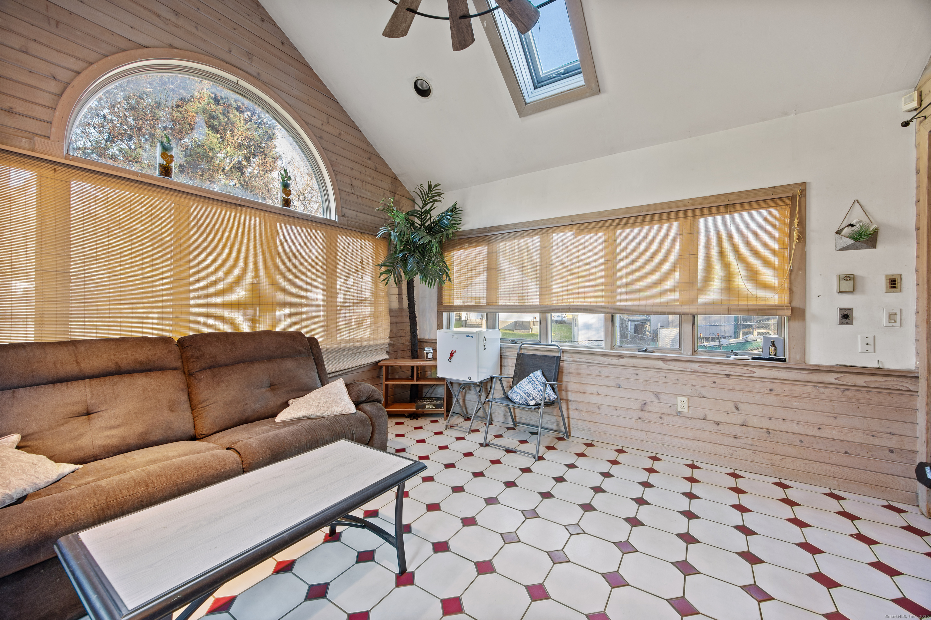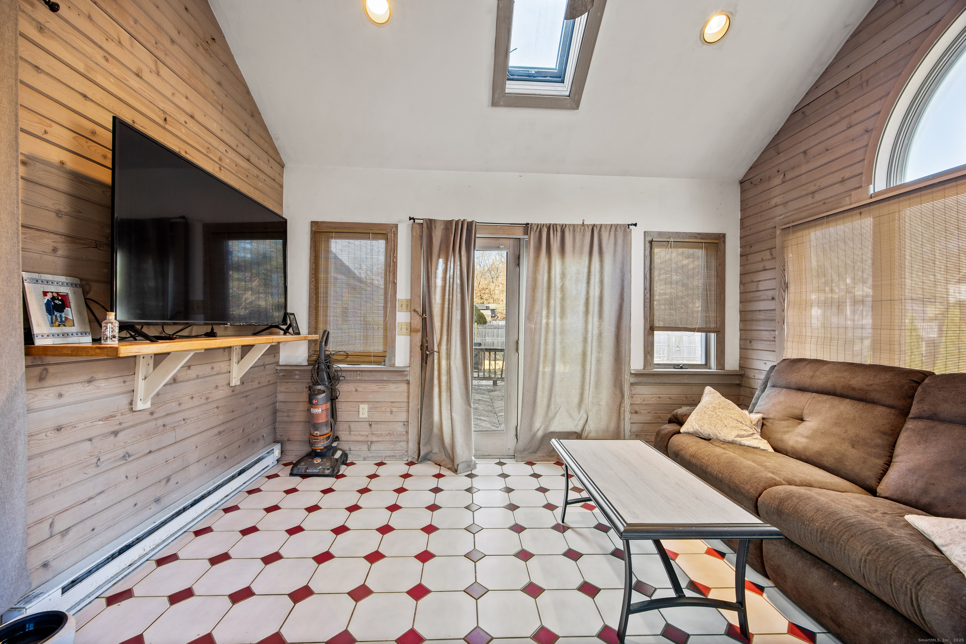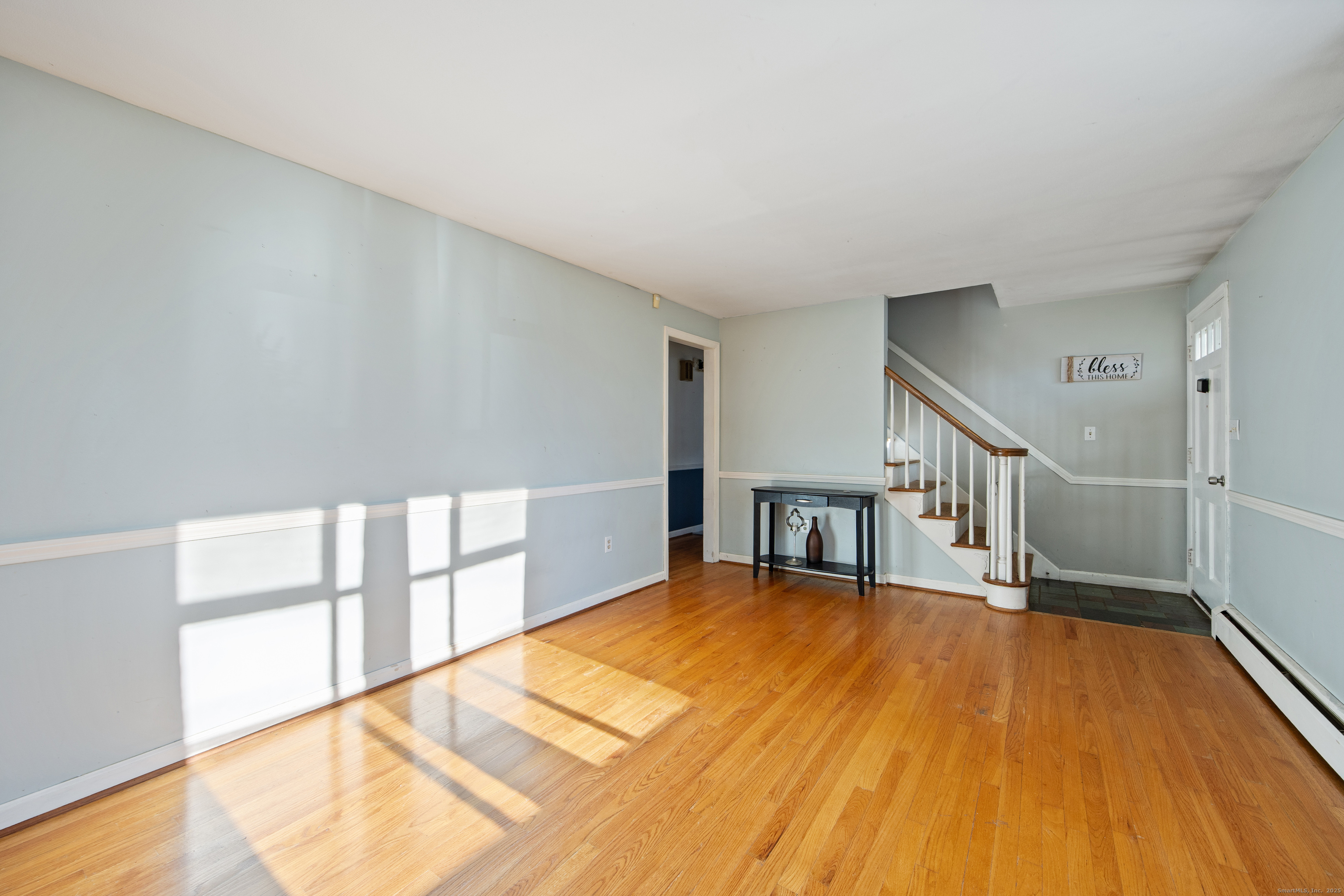 This spacious Cape-style home offers an open and functional layout ideal for everyday living. The modern kitchen opens directly to the dining and family rooms, allowing for easy interaction and flow between spaces. A breakfast bar provides additional seating, and the large tiled sunroom offers access to the rear deck. The backyard provides ample space for outdoor activities, with areas suitable for seating, recreation, and gatherings, including a designated fire pit area. The main level includes a large bedroom and a full bath. The formal living room features a brick-surround fireplace with a full mantel. The second floor includes a primary bedroom, a full bath, and an additional bedroom. The full, unfinished basement offers future expansion potential and includes 200-amp electrical service, a gas furnace, and a Bilco door leading to the backyard. Recent updates include landscaping, new walkway, new patio, and recent interior painting. The home is located within a short drive to Meriden Village, local restaurants, the YMCA, parks and playgrounds, an elementary school, and Hanover/Habershon Field, which offers tennis, basketball, baseball, and access to boating. Schedule a showing today.