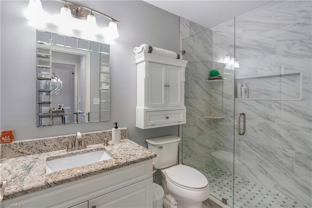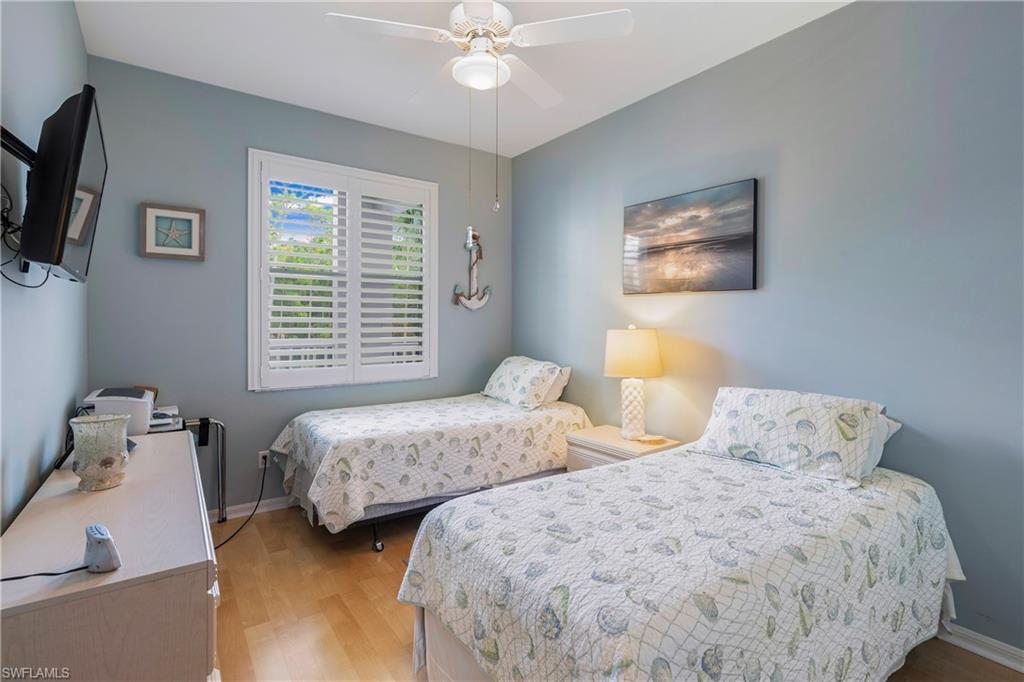 Welcome to resort-style living in the highly sought-after gated community of Naples Heritage Golf & Country Club. This immaculate 2-bedroom, 2-bath condo offers stunning panoramic views of the 8th hole, delivering the perfect blend of privacy, natural beauty, and exceptional community amenities. Step inside to an inviting open floor plan filled with natural light. The spacious living area flows seamlessly to a screened-in lanai, now enhanced with a hurricane protection screen, ideal for morning coffee, relaxing afternoons, or sunset cocktails while enjoying tranquil golf course views. The recently updated kitchen and bathrooms feature fresh finishes and thoughtful upgrades, complementing the home’s comfortable and efficient layout. Additional enhancements include newer plantation shutters, as well as newer AC unit and hot water heater installed in 2024 for peace of mind and year-round comfort. The primary suite offers two closets and a private en-suite bath, while the welcoming guest bedroom and full guest bath provide a perfect retreat for visitors.