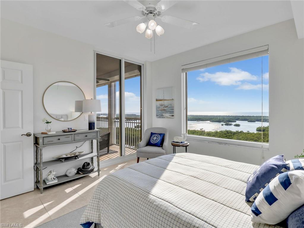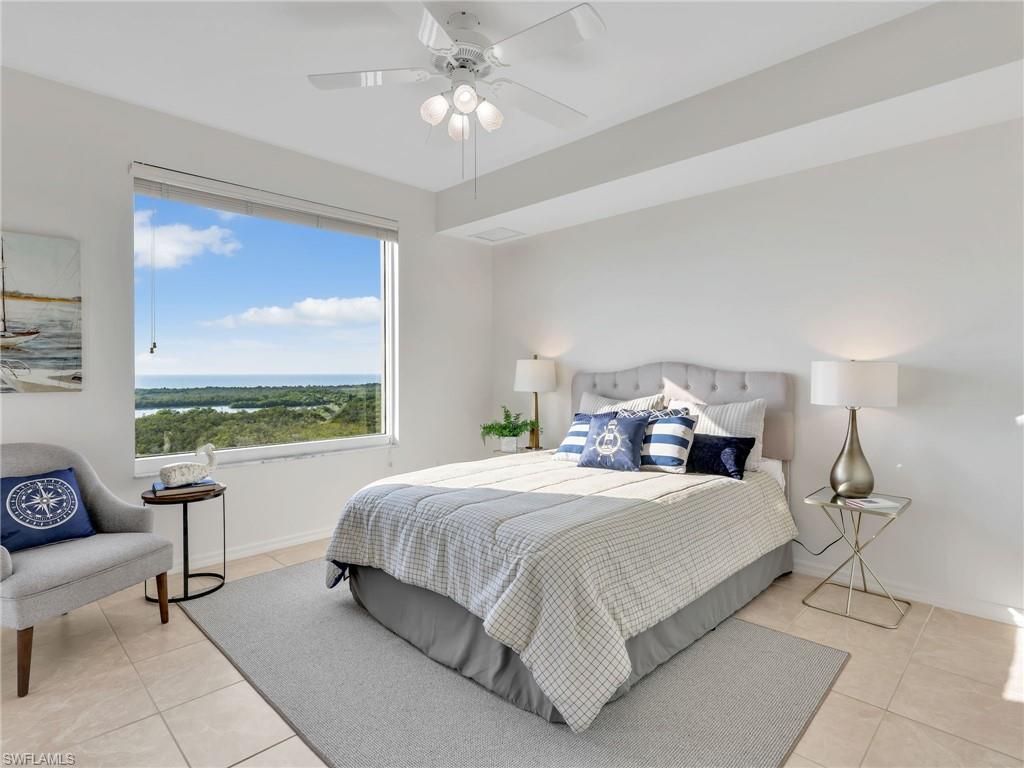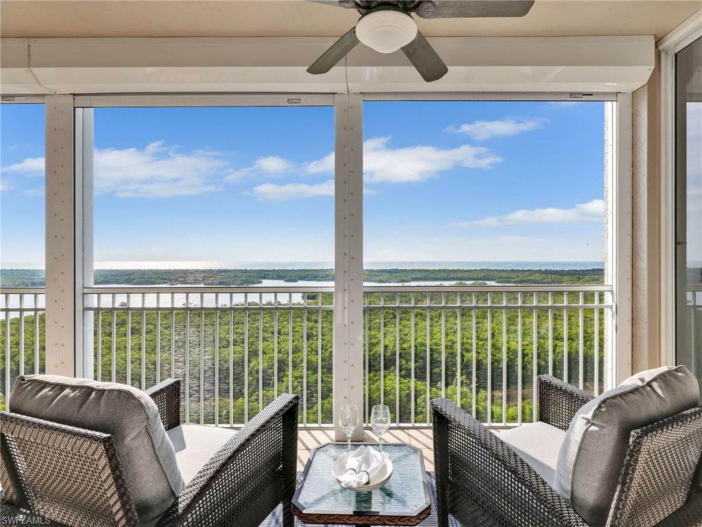 Enjoy stunning Gulf and sunset views from this 10th-floor, 2-bedroom, 2-bath residence in Tower Pointe at Arbor Trace, one of North Naples’ premier 55+ active adult communities. This light-filled condo offers an open layout with tile flooring throughout and a spacious screened balcony showcasing panoramic western views—perfect for taking in Naples’ breathtaking sunsets. The living and dining areas flow seamlessly to the lanai, while the well-designed kitchen offers ample cabinetry and counter space. The primary suite features beautiful Gulf views, balcony access, two closets, and an en-suite bath with a walk-in shower. A private guest bedroom and full guest bath offer comfort for visitors. Tower Pointe residents enjoy access to the exclusive 17th-floor “Top of the Pointe” lounge with sweeping views of the Gulf and Little Hickory Bay, a fitness center, library, and guest suites. The Arbor Trace community features a 36, 000 sq. ft. clubhouse with fine dining, a resort-style pool & spa, pickleball, bocce, social activities, transportation services, and 24/7 medical monitoring for peace of mind. Deeded ownership with 100% equity and no financial or medical requirements.