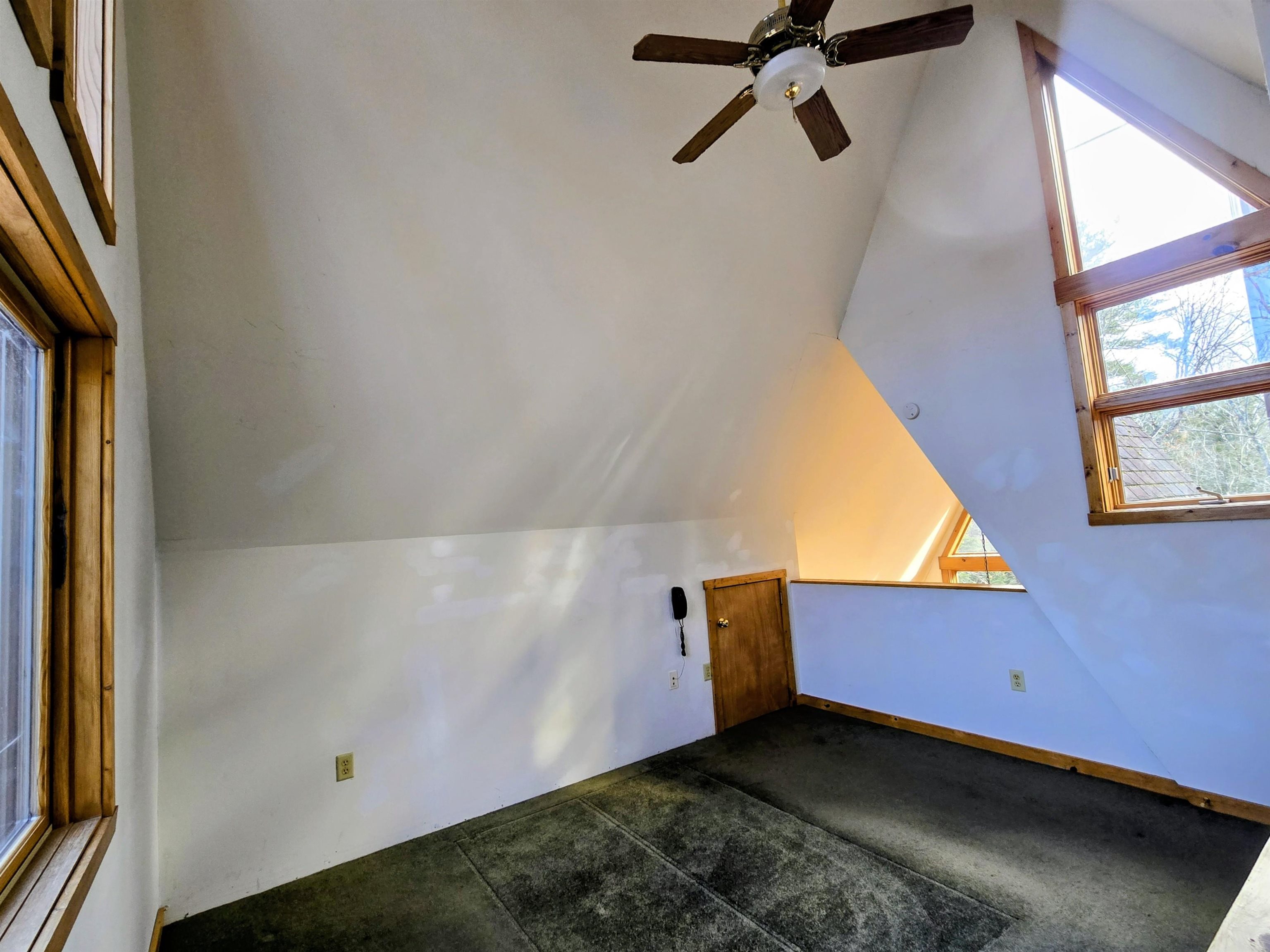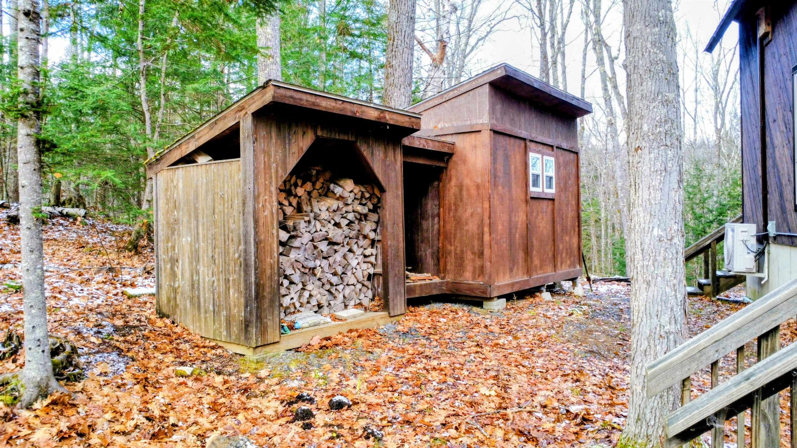 Discover a truly unique A-frame in the Mountain Lakes District of Haverhill, NH—an eye-catching design that feels almost “double-stacked” and offers approximately 900 sq ft of comfortable living space. Set on two lots totaling 1. 58 wooded acres, this property provides privacy, recreation, and an inviting four-season lifestyle. The walkout lower level offers surprising space, featuring a large family room, a bedroom with utility closet, and a ¾ bath. The main level is bright and open, with a wall of windows, cathedral ceiling, and a cozy living area that blends easily with the kitchen and breakfast bar. A full bath with a jetted soaking tub is also on this level; the jetted tub is currently not usable and requires repair due to a leak. Upstairs is a loft-style bedroom that overlooks the living space below. Enjoy the outdoors from the open front deck, small rear porch, or enclosed storage area beneath the deck. A detached shed adds additional storage for tools and recreational gear. Located in the Mountain Lakes District, owners enjoy access to a wealth of amenities including hiking and biking trails, snowmobile and ATV access, an in-ground pool, four beaches, a dog beach, playground areas, tennis and basketball courts, and more. All of this is just 6 miles from shopping, dining, and services. Whether used as a year-round home or four-season getaway, this A-frame offers charm, character, and endless potential.
