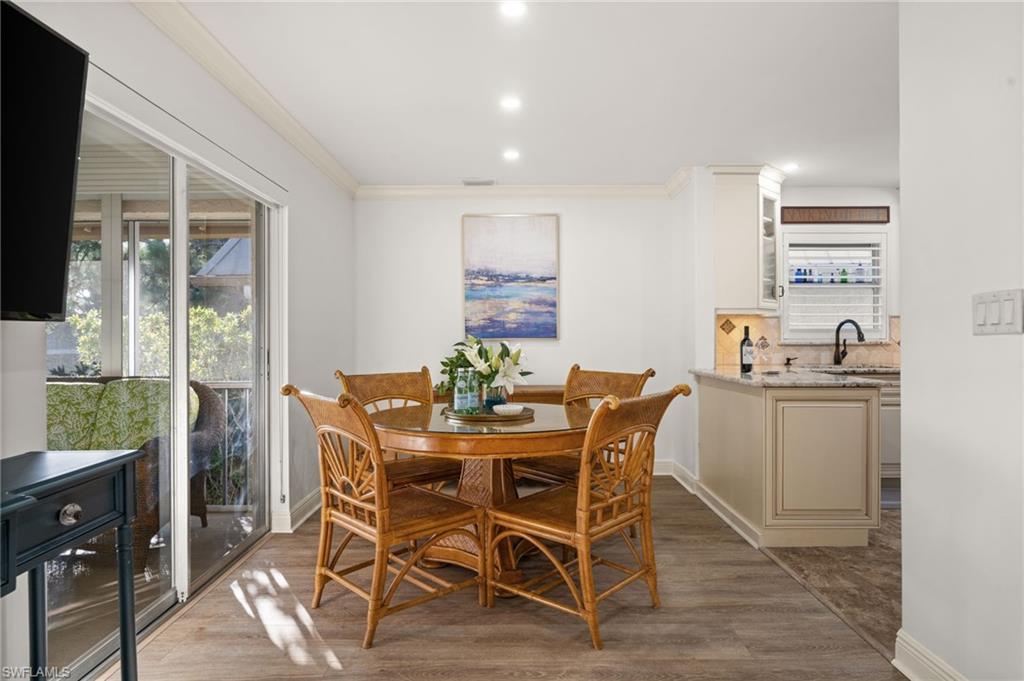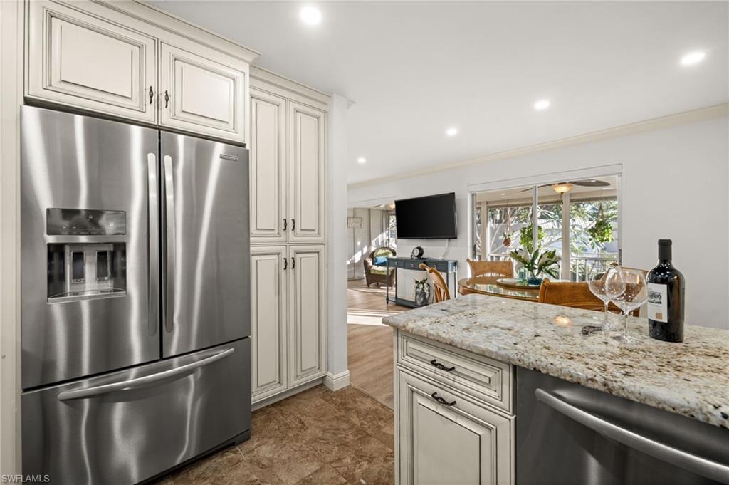 Bask in quiet coastal elegance inside this beautifully updated 2-bed, 2-bath second-floor condo in Old Naples , a low-density community within walking distance to downtown Naples and the Gulf beaches. This bright and airy residence captures the essence of relaxed Southwest Florida living, with natural light filtering through impact-rated windows and classic plantation shutters. Be sure you see the Lifestyle video! The screened 21 foot southern lanai, creates a calming space to enjoy morning coffee, evening breezes, or peaceful moments throughout the day. A timeless upgraded kitchen. . . understated luxury with clean lines, granite counters, a crisp tile backsplash, and ample cabinetry. Split-bedroom layout enhances privacy, with a spacious primary suite featuring an updated ensuite bath, while the guest bedroom and second full bath comfortably accommodate visitors or a home office. Royal Bay Villas offers pickleball, tennis, and a pool just steps from your door, with the Gulf beaches only 2 miles away. With added storage—a rare find downtown—and a community budget that already accounts for landscape renovations with no anticipated assessments. Move-in-ready and impeccably maintained, this condo is ideal for year-round living, a seasonal retreat, or an appealing investment opportunity—all just minutes from 5th Avenue’s vibrant restaurants and shops and the sugar-sand shoreline Naples is famous for.