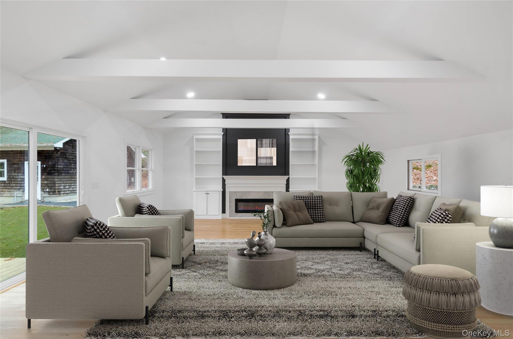 Welcome to 150 Remsen Rd in the heart of Wading River! This gorgeous 3 bed 3. 5 bath home boasts 2, 750 sqft of living space with a detached 4 car garage which includes a loft! As you enter the home you will be greeted by stunning wood floors leading to the living room which is the perfect spot to read a book or relax in front of an oversized bay window! Walk into the den which features built in book cases, electric fireplace and cathedral style ceilings with beam accents perfect for relaxing in front of TV or looking at nature through the sliding glass door! As you walk toward the kitchen you will pass the Laundry Room neatly tucked away with a half bath and plenty of room for piles of clothes! The kitchen is bathed in natural light from huge windows on two walls and a skylight! The stainless steel appliances, additional wall oven and detailed accents perfectly balance function and elegance! The Dining Room boasts large windows overlooking the backyard and deck while being easily accessible from the kitchen. Walking down the hall towards 3 bedrooms you will notice a full bathroom complete with double vanity and rainfall shower system over the tub. Two bedrooms offer plenty of closet space, one with sliding doors and the other with a small walk-in. The primary bedroom has a sliding glass door with stunning views of the wooded backyard also allowing access to the oversized deck. The walk-in closet offers tremendous storage opportunity and the primary bathroom features a double vanity, walk-in shower with a rainfall shower and convenient bench. The basement has a walk-out door, recreational room, full bathroom and plenty of storage! This is truly a magnificent home just right for you!