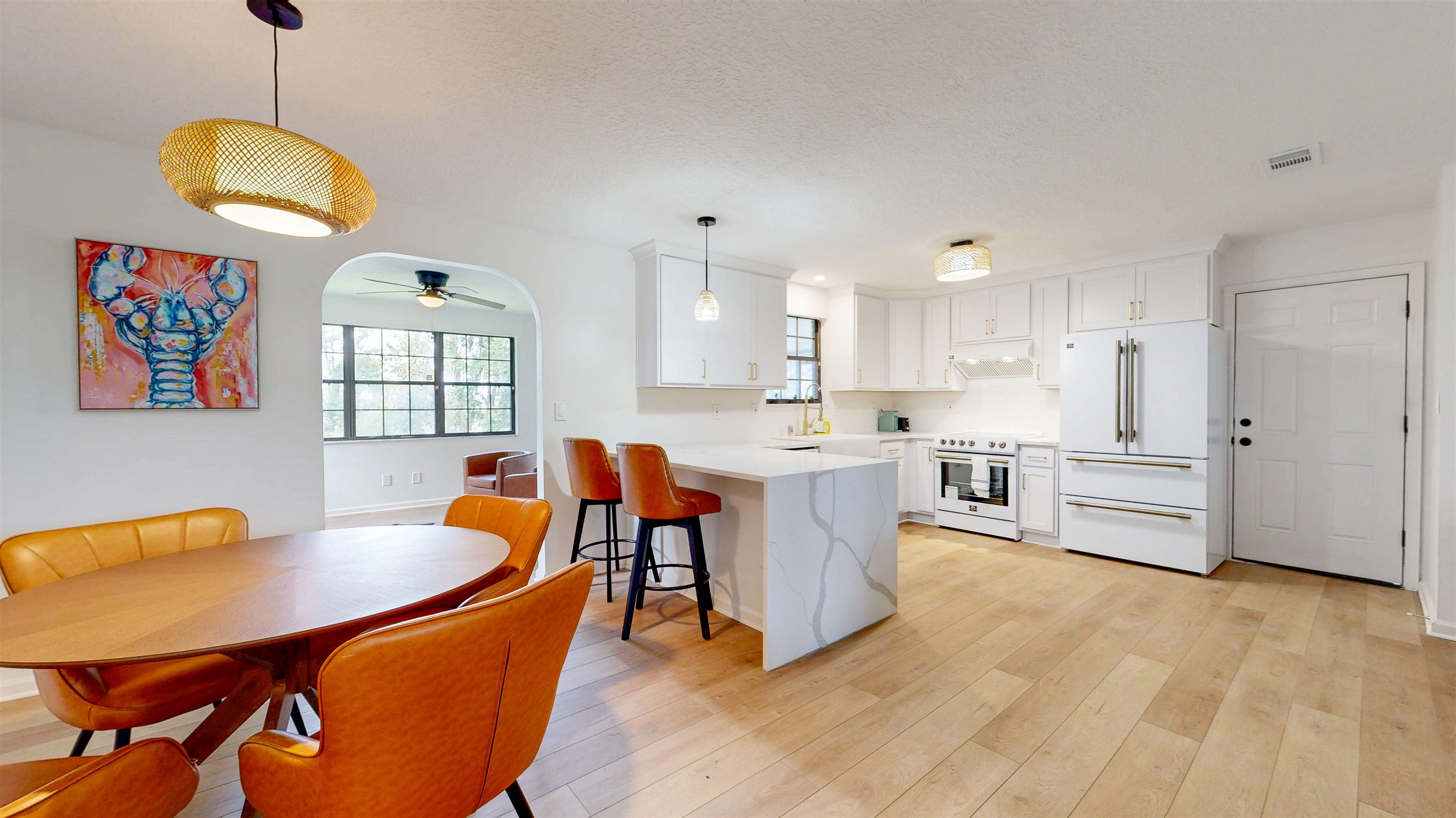Attention Boaters and Anglers, this home features direct access to the St John’s River in both the front and back yard. There is a boat dock in the front canal to keep a fishing boat in the water. This home is fully furnished and turn key, it can make an amazing short term vacation rental or simply enjoy classic Florida living on the St. Johns River in this fully furnished and beautifully renovated waterfront home. Updated with high-end finishes throughout, the home features a stunning kitchen with premium appliances, quartz countertops, modern bathrooms, luxury vinyl flooring, and a cozy wood-burning fireplace. Enjoy peaceful river views and stunning sunsets from the screened back yard or porch. Drive-through garage with doors on both sides, a large storage shed, and a new well pump and filtration system. Located in a top-rated St. Johns County this home offers outstanding flexibility as a primary residence, vacation home, or strong short-term rental. FORNO Espresso Appliance Package - 30" Electric Range, 36" Refrigerator with Ice Maker, Dishwasher and 24" Microwave Drawer in matt white with Antique Brass Accents. Home is an active short-term rental. Showing requests are welcome; however, availability may be limited and must be coordinated around guest reservations.