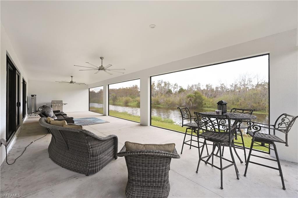 Step outside to your own private oasis: a massive 49-foot-long screened lanai with a desirable southern exposure offers serene views of the fresh water and a natural wooded preserve area. Enjoy the unique Florida lifestyle of catching native species like Tarpon and Snook right in your backyard canal. The expansive yard provides ample room to design and add a custom pool or tropical garden.