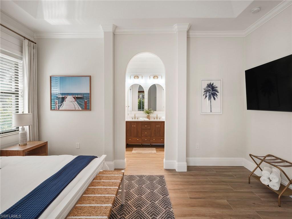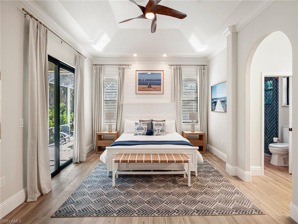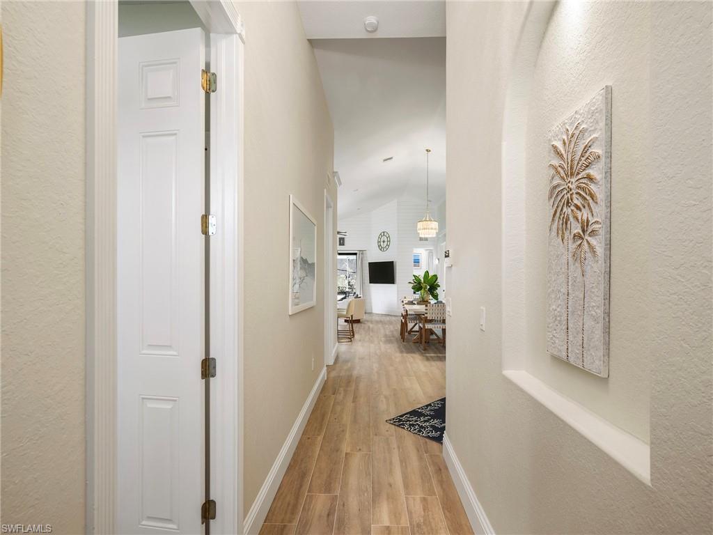 Stunning Turnkey Coastal Retreat Near Naples Bay!! This meticulously maintained, beautifully furnished, and GORGEOUSLY UPDATED 4-bedroom, 2. 5-bath home offers effortless luxury living just minutes from Naples’ finest attractions. An inviting great room floor plan showcases soaring ceilings, abundant natural light through ALL-NEW IMPACT WINDOWS AND DOORS, and sophisticated touches including shiplap walls, gold designer accents, and modern plank tile flooring throughout. The gourmet kitchen impresses with quartz countertops, a sea-blue American Olean backsplash, stainless steel appliances including a wine cooler, abundant cabinetry with crown trim, and a striking navy accent island perfect for gathering. A serene primary suite features an en-suite bath with a beautifully tiled walk-in shower in an eye-catching herringbone pattern, dual vanities, elegant mirrors and fixtures and rich wood cabinetry. Outdoor living takes center stage on the screened lanai with desirable SOUTHERN REAR EXPOSURE. Here, the HEATED POOL is surrounded by lush landscaping and offers a private, tranquil setting. The home’s built-up 10' elevation adds peace of mind and enhances its long-term value. Situated in an unbeatable Naples location, this residence is close to Bayview Park, offering 4 acres of waterfront recreation, a public boat launch, picnic pavilion, and million-dollar views of Naples Bay with easy access to the Gulf and Keewaydin Island. Boating and waterfront enthusiasts will also appreciate proximity to Hamilton Harbor Yacht Club, one of Florida’s most advanced boat storage facilities with exceptional waterfront dining. Just 5 miles from Naples Beach and 5th Avenue South, and minutes from Naples Airport, premier shopping and dining, championship golf courses, the Naples Botanical Garden, and countless coastal attractions, this home combines luxury, convenience, and the quintessential Naples lifestyle.