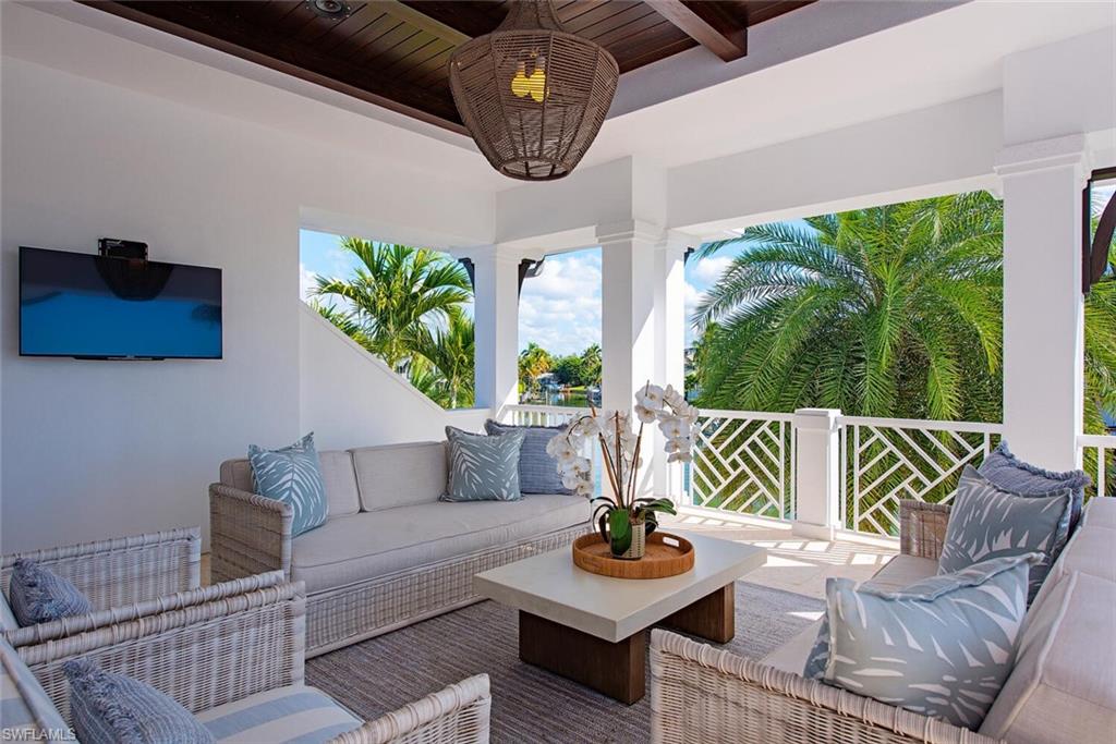 Making your way upstairs you’ll discover a spacious media room, perfect for movie nights or entertaining guests. This area provides access to an additional expansive outdoor living space, with a breathtaking Birds Eye view of the water basin—an unparalleled feature rarely found in Royal Harbor. Enjoy direct access to Naples Bay with no obstructions to the Gulf, allowing for effortless boating and fishing adventures.