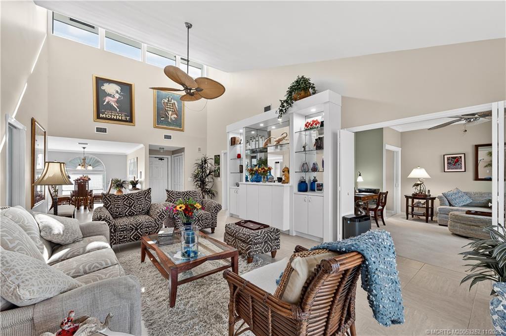Fabulous 3 B?dr?om/2 Bath 2nd Fl?or C?ndo ov?rlooking the St. Luci? Riv?r in Harbour Ridge Y&CC. Located in South Shore Village, this condo has high vaulted ceilings and includes a 1 Car Garage plus Separate Golf Cart Garage. Renovated Kitchen with Stainless Appliances and Corian Counters. Beautiful etched glass is primary bath with new vanities in both bathrooms. 3rd Bedroom used as a den but has a closet to easily convert back to a bedroom. Community amenities include 2 Championship Golf Courses, Tennis, Pickle Ball, Fitness Center, Salon, Doggie Park, Nature Trail & Clubhouse on the St. Lucie River. $124, 000 Non-Refundable Joining Fee & $1, 000 Refundable Equity Due at Closing. Monthly HOA Fee includes Club Dues, Trail Fees, POA, Village HOA, Capital Fund Fees and appropriate taxes. NO CORPORATE BUYERS. Membership approval process includes: $500 application fee plus background/credit check. Additional financial information may be required to provide for credit scores below 740.