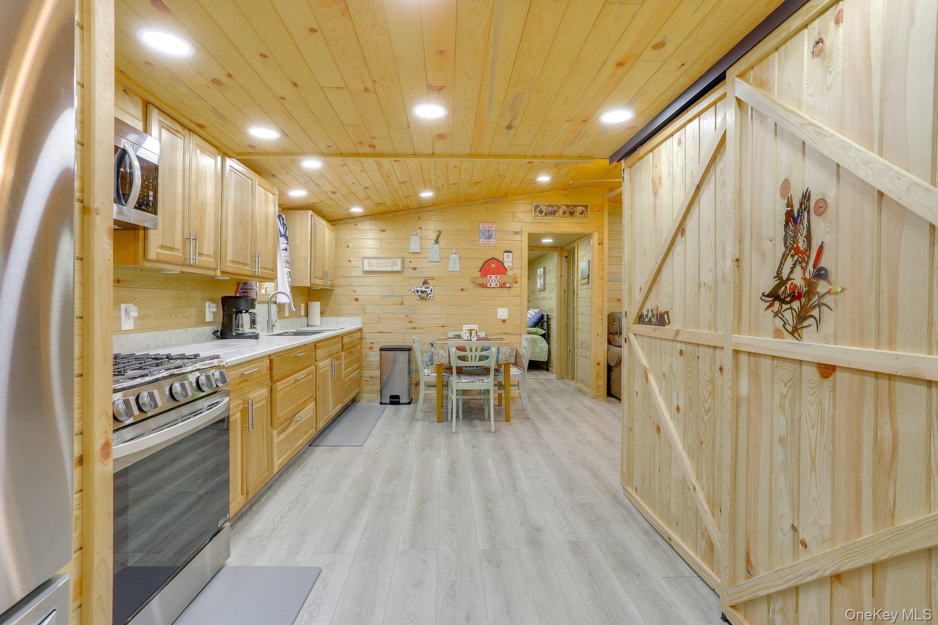 Beautifully renovated and fully furnished 3BR, 3BA home on over 1 acre, offering a turnkey blend of comfort and style. Upgrades include new 2024 windows, doors, siding, roof, hot water heaters, plumbing, electrical, appliances, and custom tongue-and-groove pine throughout. Features smart appliances, central vac, and three mini-split A/C units. The spacious master suite includes a private bath, plus two additional bedrooms and another full bath. A 12 x 55 deck offers outstanding outdoor living with a year-round 12 x 12 entertainment room and a 12 x 12 hot-tub-ready area. Property includes a pond, stream, 24 x 30 garage with bonus room, whole-house generator, and comes fully furnished. Minutes from the famous Delaware River for top-tier fishing and rafting, with easy access to parks, hiking, and local shops for added convenience.