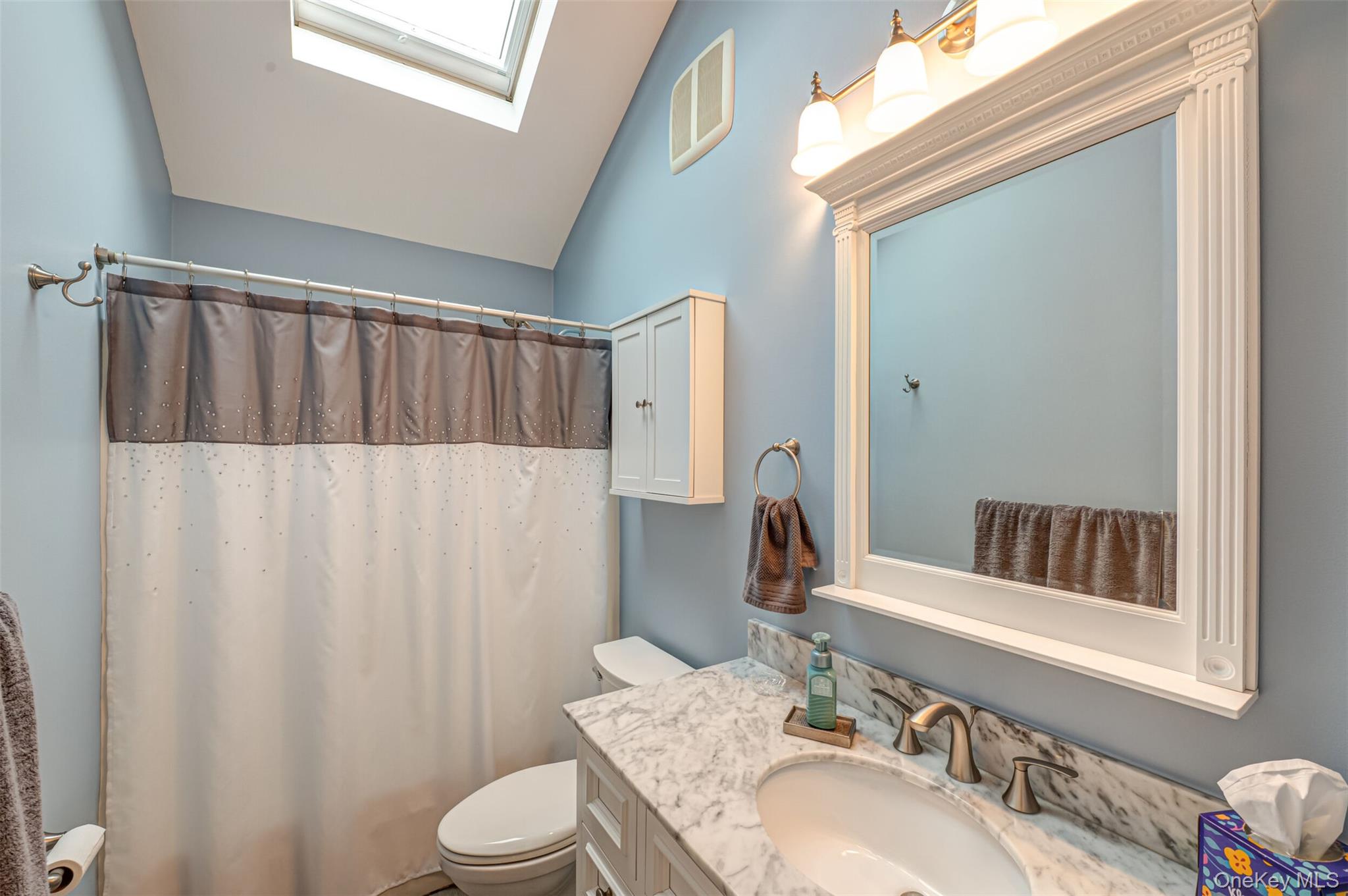 Pride of ownership shows this beautiful updated home. Gleaming hardwood floors cathedral ceilings and custom moldings throughout. The large eat in kitchen is open to the family room with lots of cabinets Quartz counter tops and updated stainless appliances. Just off the kitchen is a laundry room for added convience. The second floors also has hardwood floors throughout and large spacious bedrooms. The primary bedroom has a high ceiling, custom window, walk in closet and ensuite bathroom. The main hall bathroom has been updated. The basement has been beautifully finished with an egress window and lots of storage and has a CO. In addition to the attached garage there is a 2 car detached garage with large walk up storage and drive through access to back yard and its own 100 amp electrical box. The property is fenced and level with a beautiful deck and two sheds. Located on a cul de sac of other young home this colonial has lots of recent updates (too many to list) including roof, central air and driveway. Close to beaches wineries and so much more, there is nothing to do but move in and enjoy