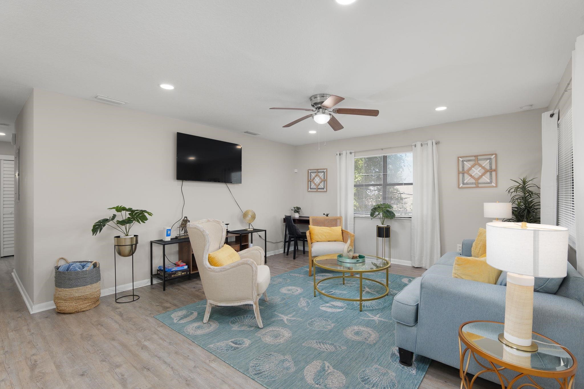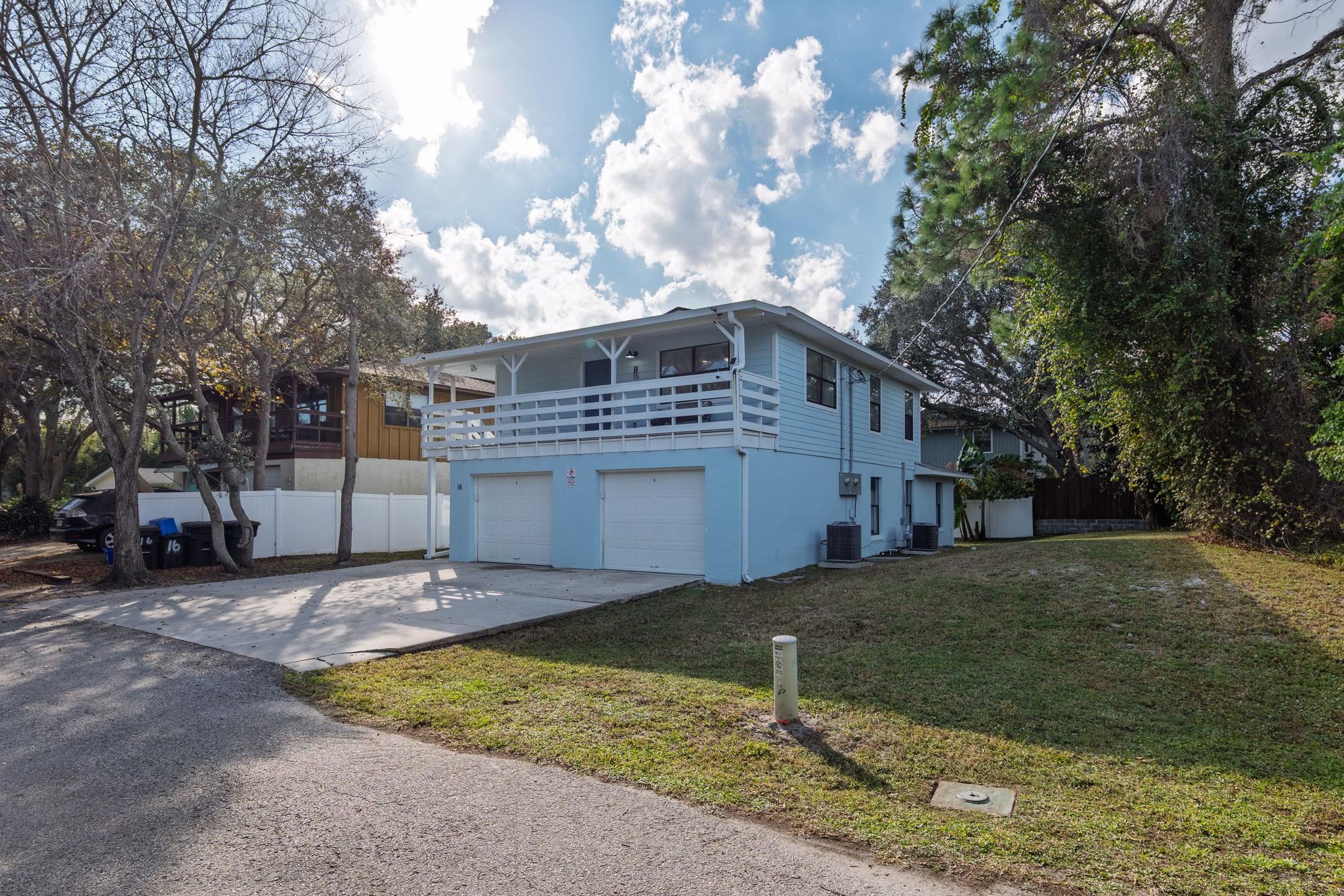 Rare St. Augustine Beach opportunity offering a fully renovated coastal DUPLEX plus an additional sub-dividable lot with the potential to build another home or create immediate equity. Just a short walk to the beach and under 10 minutes to historic downtown, this property features a 3BR/2BA unit upstairs and a 3BR/2BA unit downstairs, each with its own 1-car garage and private washer and dryer. Beautifully refreshed throughout with new Hardie Board siding, new roof, new HVAC systems with Nest thermostats, new electrical panels, repiped plumbing, new water heaters, updated lighting, new interior doors, keyless entries, and new LVP flooring. Both kitchens offer white shaker cabinets, granite countertops, stainless steel appliances, and coastal blue backsplash accents. All bathrooms have been fully updated with new tile, vanities, and fixtures. The downstairs unit has a screened lanai and fenced yard, while the upstairs unit offers a spacious balcony for sunrise views. Property is sold fully furnished and fully stocked for immediate use. Ideal for multigenerational living, snowbird or mid-term rentals (30-day minimum), or for anyone wishing to live in one unit and rent the other while leveraging the extra lot for additional value.
