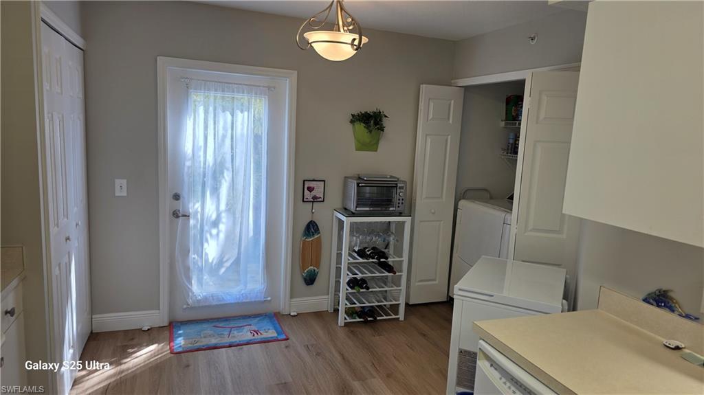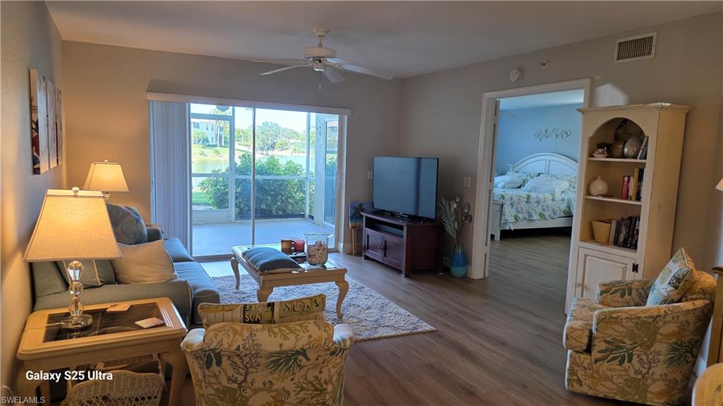 This is a must see 1st floor, end residence with one of the better wide-water lake views in the area! Enjoy 2 Big Bedrooms, a Flex den, 2 Baths, and beautiful laminate floors throughout. The Garage leads into the Private Courtyard that is great for pets, parties, grilling and outside quiet time. The gated community of Bermuda Park offers 2 pools, tennis, clubhouse, exercise room and more. The screened Lanai has a gorgeous lake view and is the perfect for relaxing! See why this friendly community is a favorite among SW Florida visitors and owners. Priced right and easy to see! Quick possession is possible if you want to escape the cold! A real value at $299, 000!