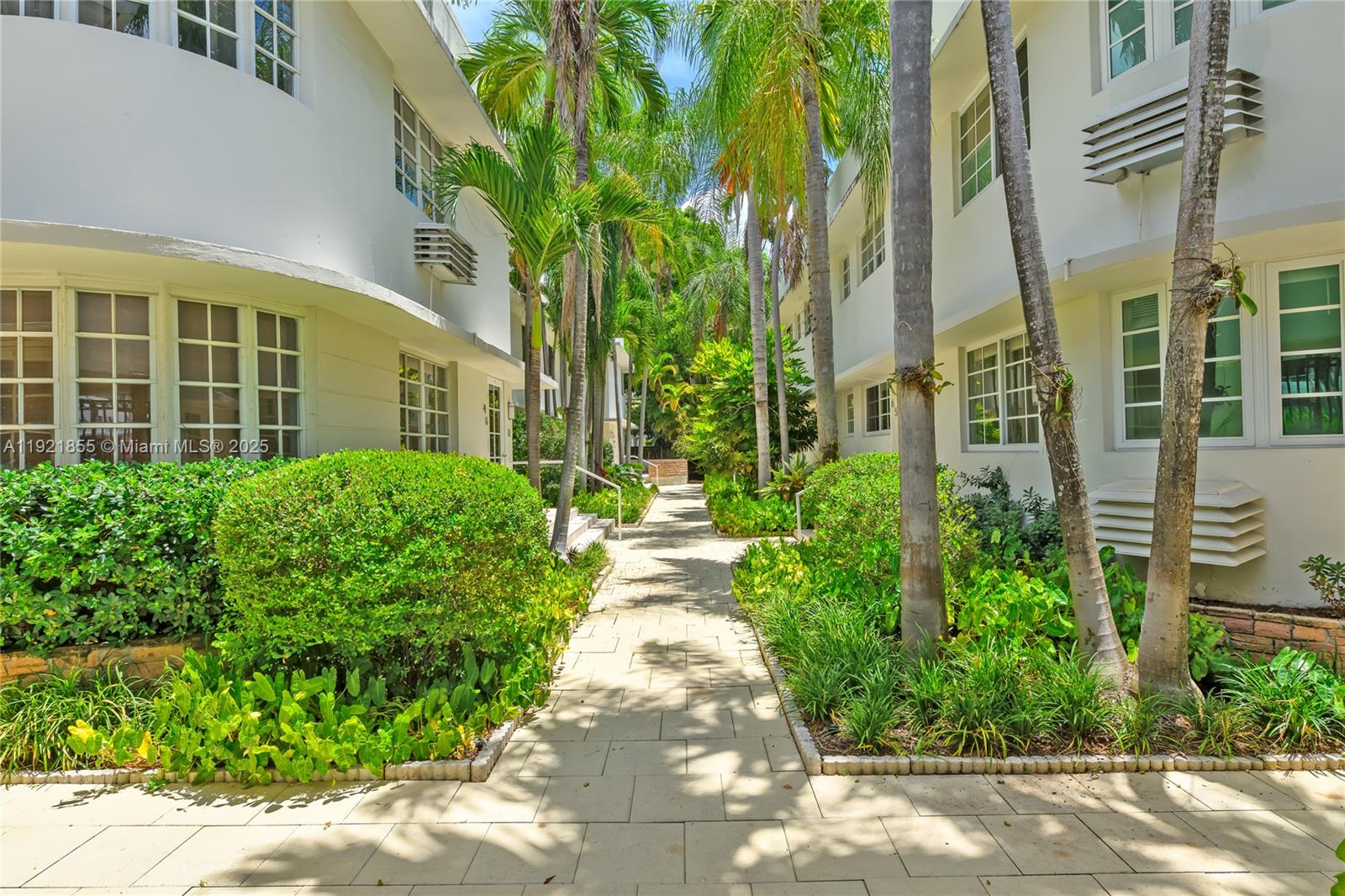 Discover classic Miami Beach charm in this spacious 1BR/1BA (746 sq ft) condo nestled in a charming Art Deco building just 1 block from Lincoln Road Mall. Garden-facing unit with original wood floors, spacious kitchen with an all-in one- washer/dryer, and new impact windows & doors pending permit approval. Secure, gated building with a beautiful courtyard. Prime location steps to dining, shops, markets, and the beach.