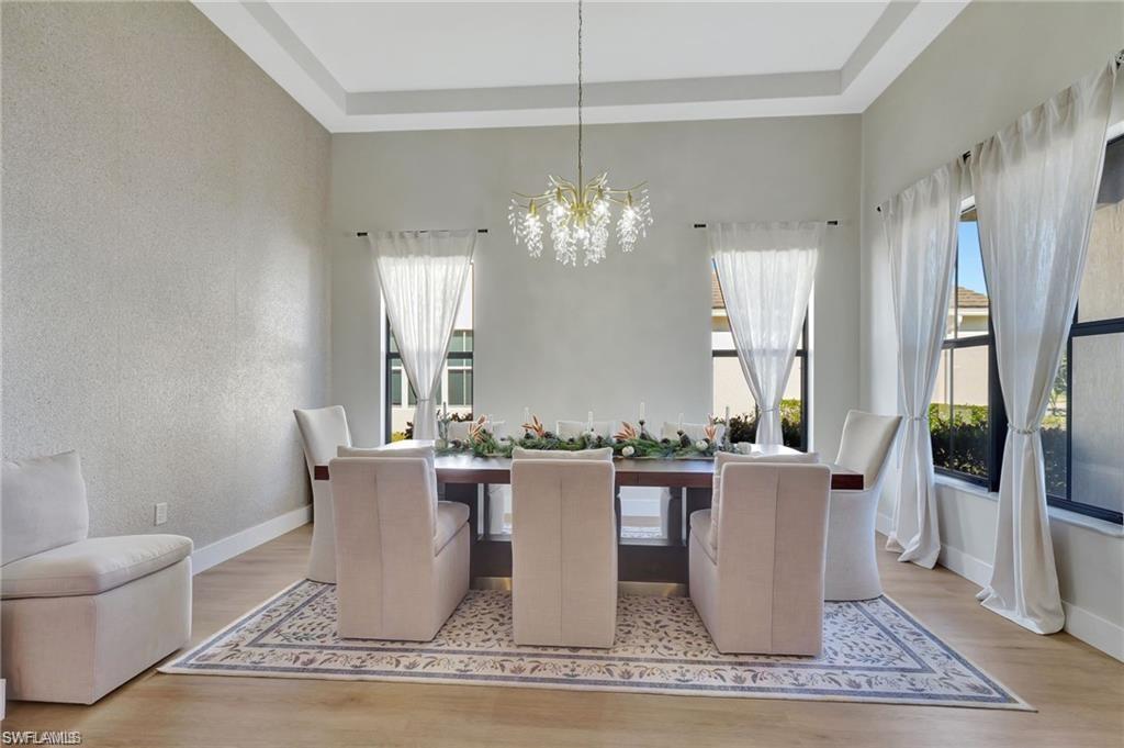 Amazing Brionnes model comes to market! Must see this well appointed and expansive mediterranean elevation 4 bedroom and 3 bath home situated on a lakefront lot in sought after Maple Ridge. Once you enter this home you are greeted by seperate formal dining and living room. Custom wood plank flooring throughout leads you to the entertaining space of the kitchen and family room. The kitchen features upgraded appliances, custom granite counters, modern white shaker style cabinets and walk-in pantry. This home features 10-12 ft ceiling heights making the space larger throughout. Bedrooms are a split floorplan with 3 bedrooms and 2 baths in one section and the master bedroom and bath in the other. Master bedroom features large windows overlooking the lake views and is connected to 2 walk-in closests and the master bath featuring seperate tub/shower and dual sinks. Enjoy the SW Florida weather with a screened in lanai as you enjoy beautiful lake views. As a resident in Maple Ridge, you will have access to the Club at Maple Ridge, the multi-million dollar ameneity clubhouse with pool, play area, walking path, party room, gym, steam sauna, dog park, billiard, poker/game room and more! Additional amenitites include waterpark, bike/jogging paths, town gym, sports parks, playgrounds, tennis, pickleball, shopping and restaurants.