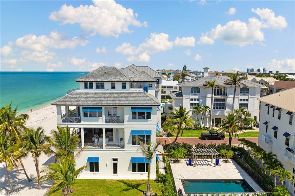 Positioned on a double Gulf-front lot in Barefoot Beach, this estate offers unmatched privacy, exclusivity and potential. Spanning 7, 490 square feet, the custom Potter Homes residence blends timeless craftsmanship with modern elegance, featuring rich wood flooring, expansive glass walls, and seamless indoor-outdoor living. Go onto the wrap-around balcony and savor panoramic Gulf views, where every sunset feels like a private performance. Entertain in the chef’s kitchen, retreat to the serene primary suite with spa-inspired bath and coffee bar, or host guests in multiple en-suite bedrooms, including a third-floor suite with its balcony. Outside, a private pool oasis awaits, framed by lush landscaping and just a short distance from the sand. This is a once-in-a-lifetime offering, a rare double-lot estate with endless possibilities for possible second residence, expansion, investment, or creating a multi-generational Gulf-front compound (independent verification recommended for all options). Optional membership to the Club at Barefoot Beach (waitlist applies). Club amenities such as dining, bars, poolside service and tennis, all in a gated, exclusive enclave.