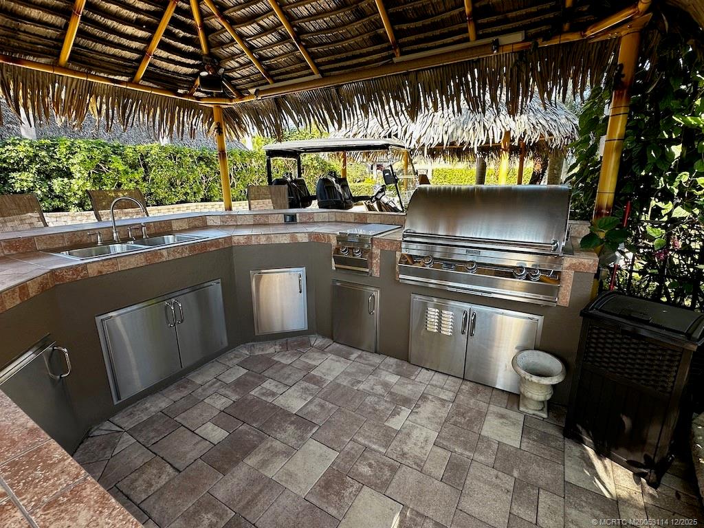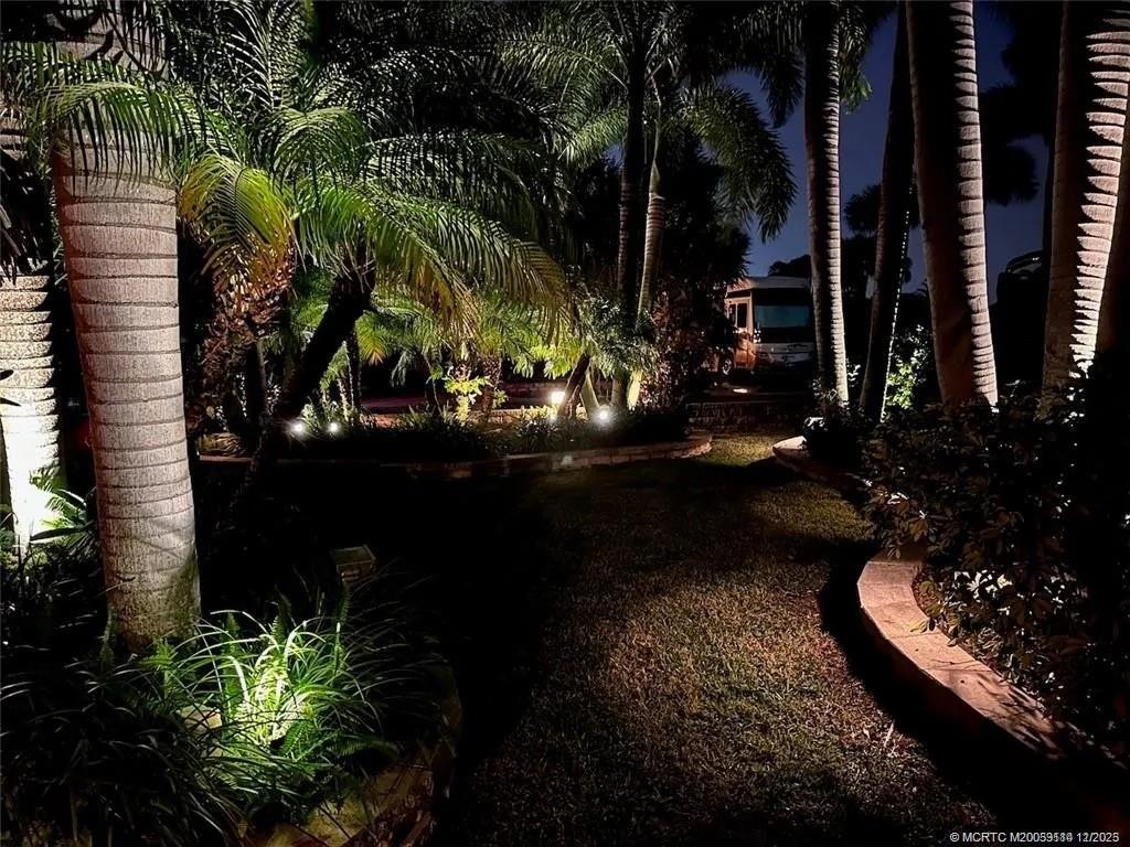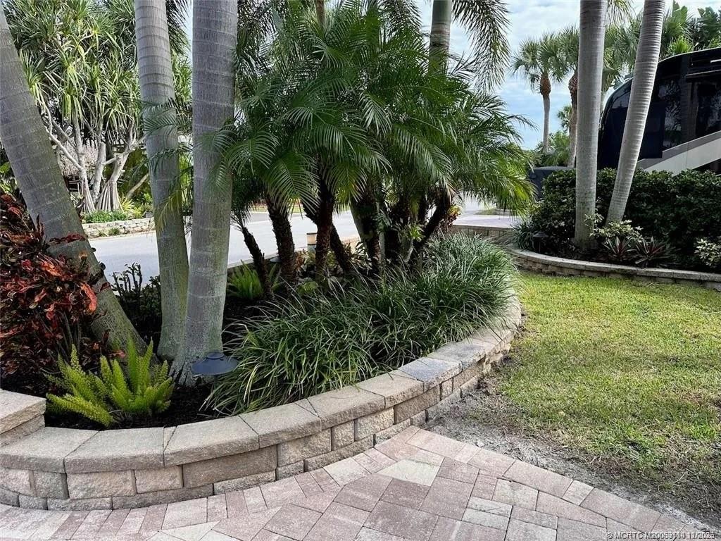 Experience the pinnacle of lakefront RV living with this extraordinary property! This north-facing, expansive 3514 square foot lot sets the standard for sophistication and comfort. The entertaining area is covered in pavers, creating an ambiance that complements the stunning surroundings. With two all-weather tikis, one a captivating round design, and a fully equipped outdoor kitchen with a grill, refrigerator, and double-burner cooktop, it's the perfect setting for culinary adventures sure to be the heart of your gatherings. Fully furnished with top-of-the-line furniture, including dining set, stylish bar stools, plush seating, a fire pit table, TV, umbrella, lamps, and more. The landscaping boasts lush greenery with an abundance of lighting. A park-like grass area adds a touch of serenity and ornamental decor items that enhance the overall aesthetics. The lake view, complete with a beautifully illuminated fountain, is nothing short of breathtaking. Meticulously maintained beauty!