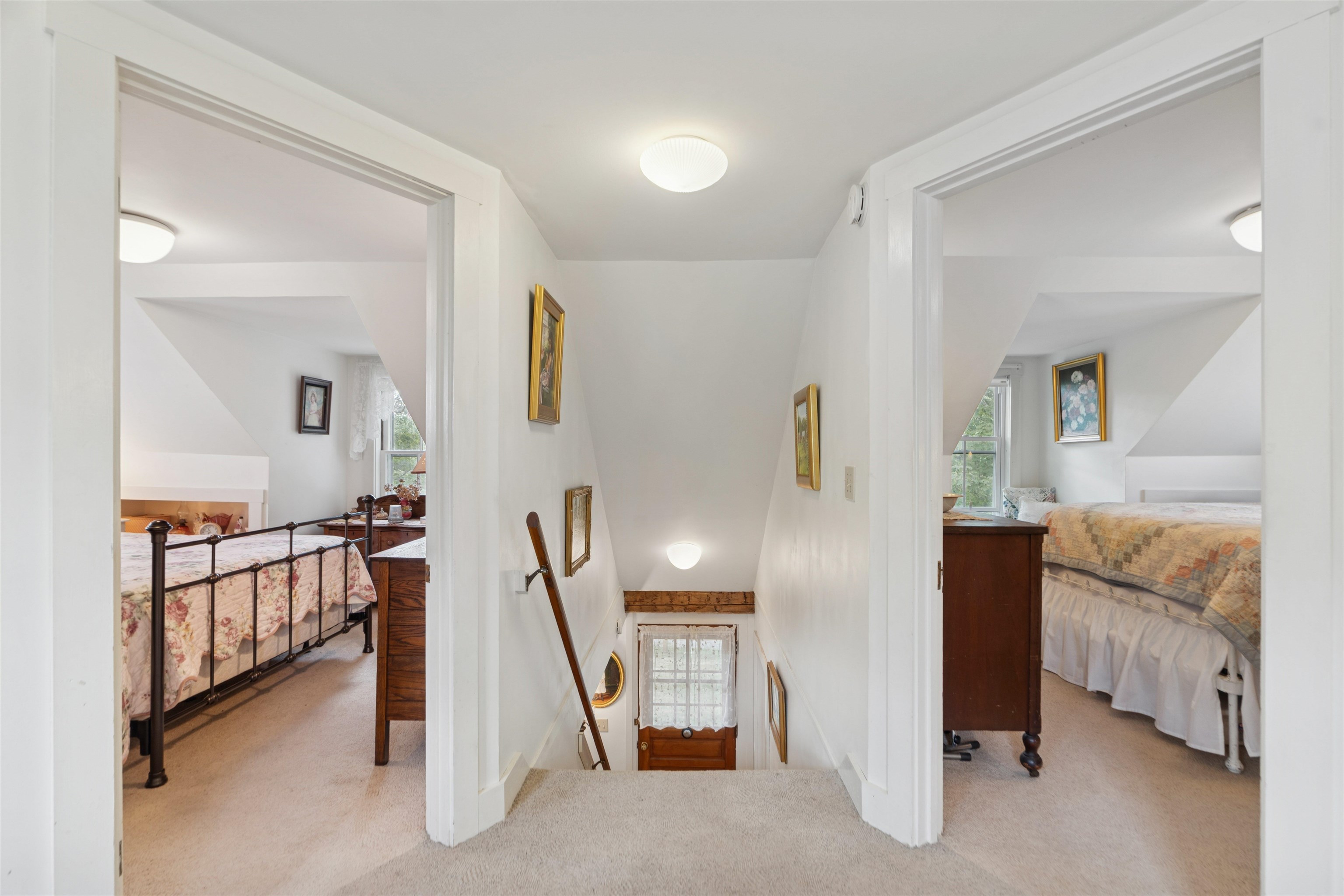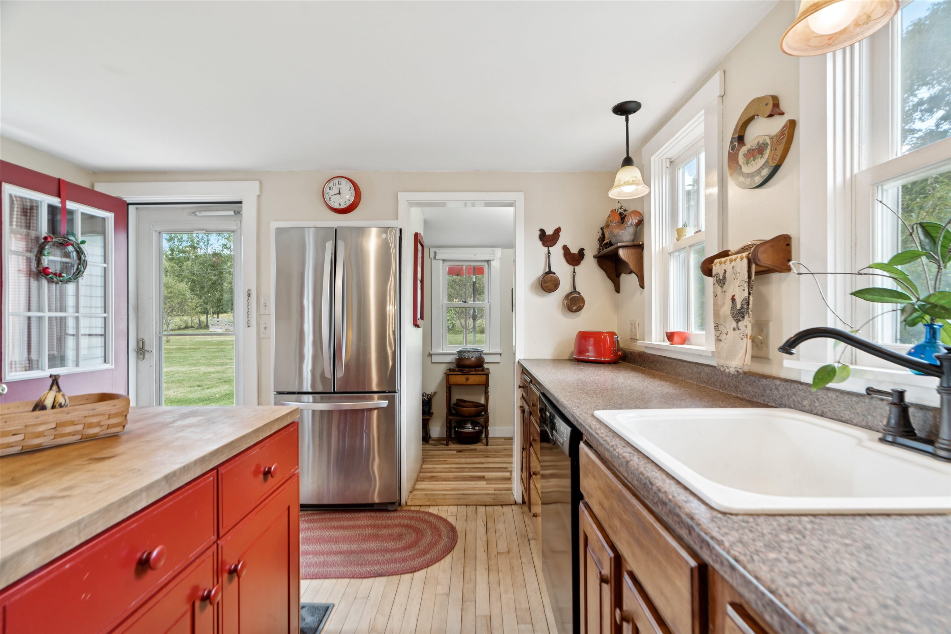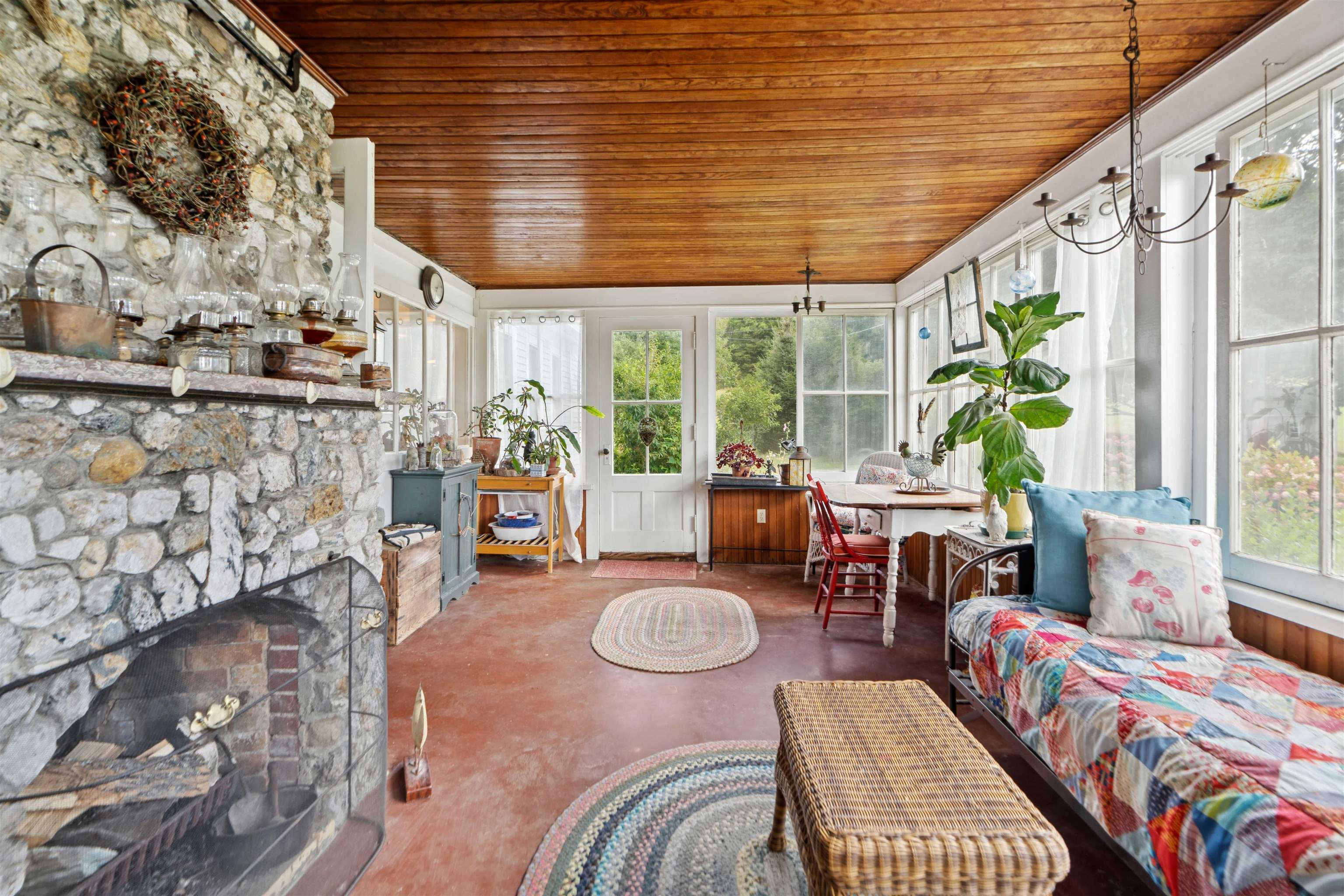 A traditional Vermont farm house surrounded by beautiful hay fields and gorgeous mountain views. Spend mornings or evenings relaxing on the wraparound covered porch while taking in the amazing sun sets or enjoying the wildlife in the open fields. Off the kitchen is an open deck which overlooks the back yard and extensive flower and vegetable gardens. The house is outfitted with 4 bedrooms, 2 full bathrooms, along with multiple living spaces for everyone to enjoy. The country kitchen and pantry are open to the dining and living room, which is equipped with a woodstove for those chilly nights. Off the living room find a charming 3 season sunroom with a quartz stone fireplace; perfect for warm summer evenings or for a quiet reading nook. Also included on the first floor is a main floor bedroom, full bathroom, along with the entrance/mudroom. The 2 detached barns are in good condition and can be used for animals, storage or parking. The property has been well loved and cared for over the years and is now looking for the new steward who will love the home as much and the current owners. Showings start on September 7th at 11-1 with the open house.