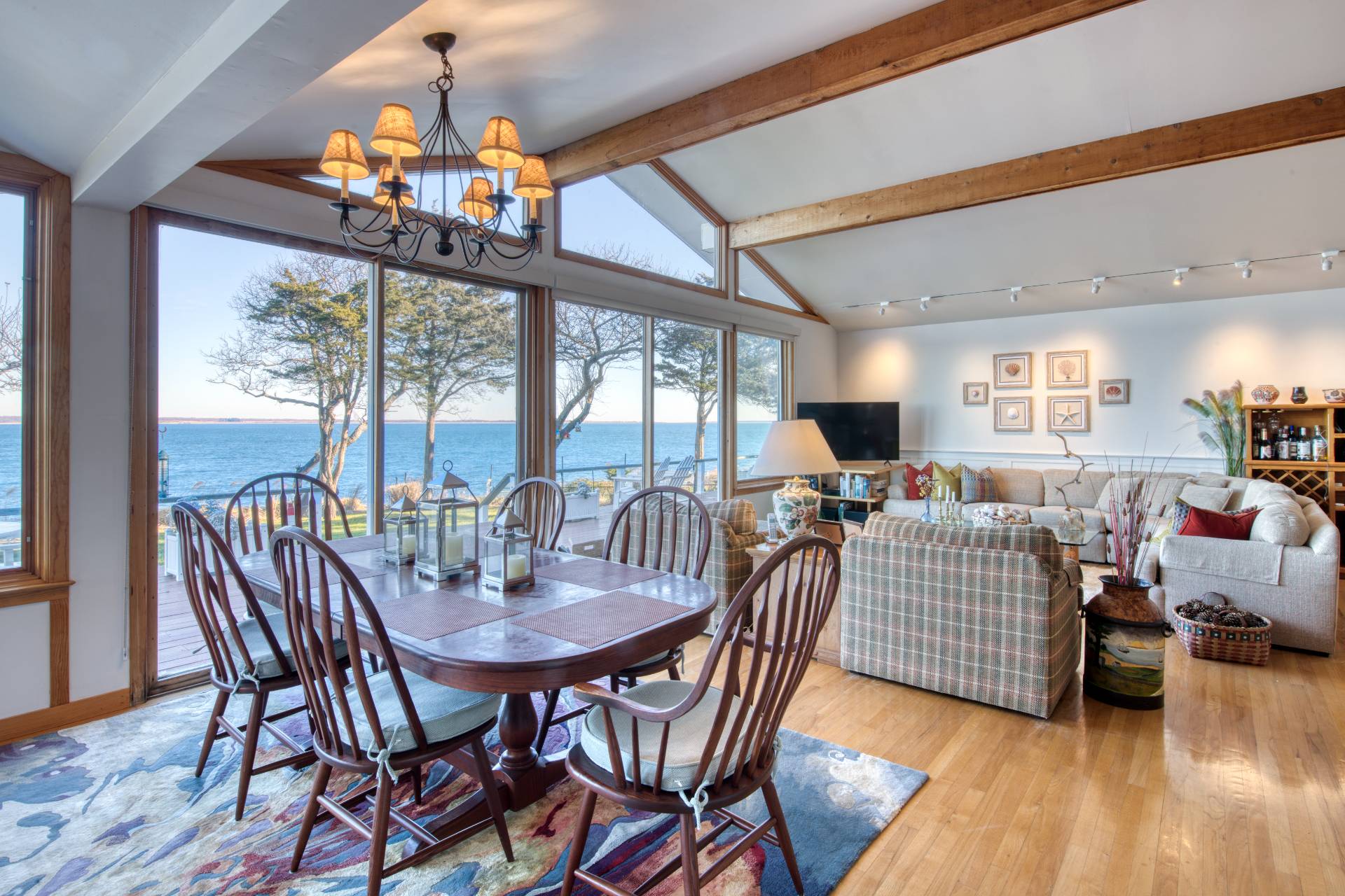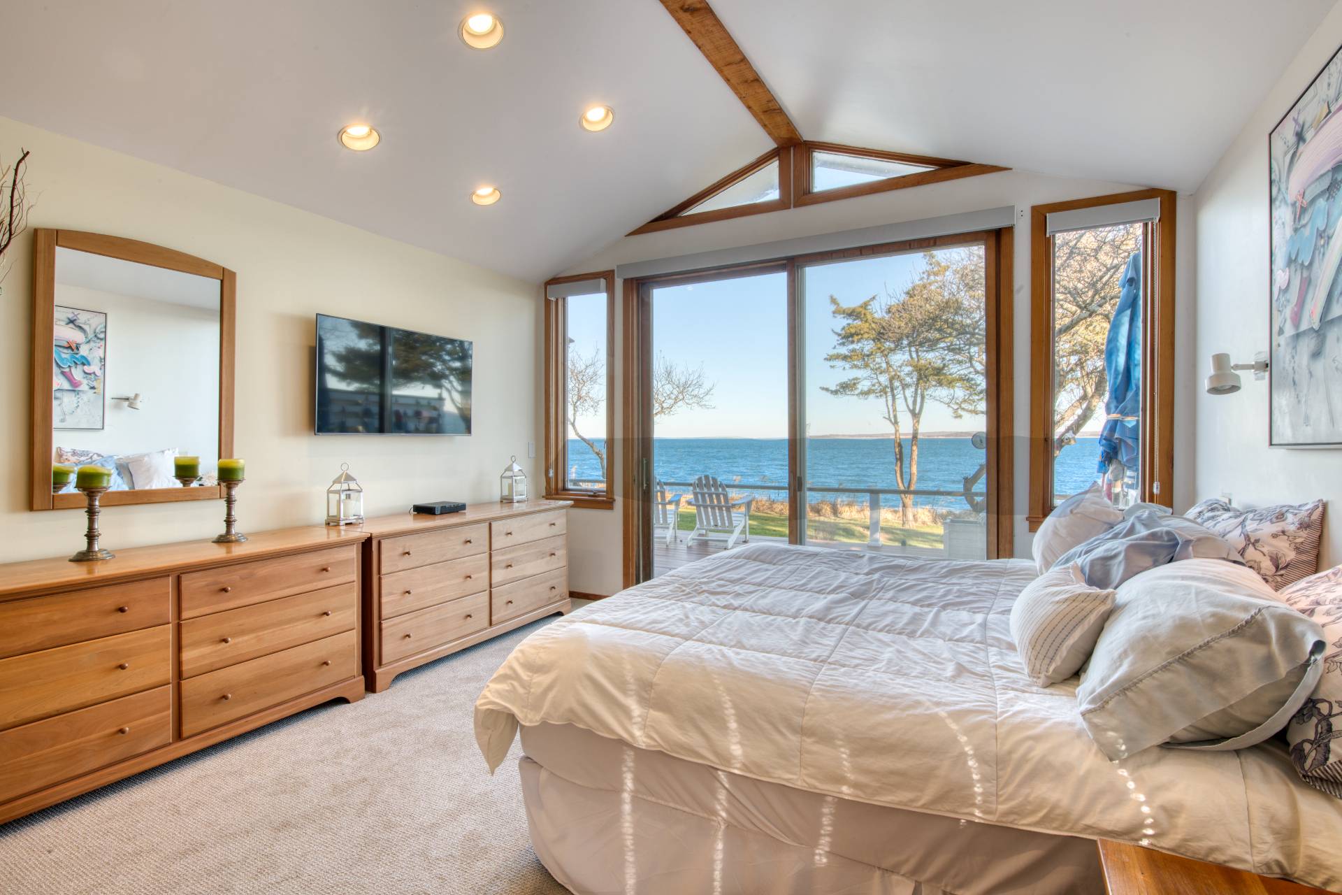 This elegant contemporary residence is situated in the highly sought-after Clearwater Beach community, offering a picturesque view of Gardiner's Bay. Boasting four bedrooms and three baths, this property serves as an ideal family retreat for the month of August, set on a pristine acre of private land. Enjoy a panoramic vista of Gardiner's Bay, complete with access to a private marina and beach association. Impeccably furnished, the residence is equipped with modern amenities, including a dedicated home office with high-speed internet and televisions in every room. This home provides an exceptional summer getaway experience, enhanced by the inclusion of a kayak and bicycles, as well as privileged access to the renowned Clearwater Beach.