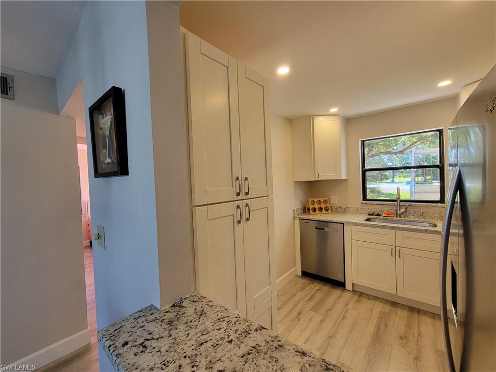 THIS beautiful FIRST FLOOR / GOLF COURSE VIEW, 2 Bedroom / 2 Full Baths condo, 55+ community. This unit is clean and updated with many options! This newly renowned unit will be located on the recently discussed public golf course, which is currently under construction. This community is so amazing! Featuring Great amenities, pickleball, bocce ball, shuffleboard, a large social pool, and many fun social events. Close to downtown Naples, beaches, and the airport!