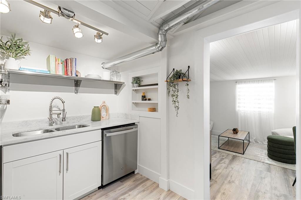Unlock the best of Southwest Florida living with this beautifully updated furnished 2-bedroom, 1-bath single-family home, set on a rare double lot offering unmatched flexibility and future potential. Stylishly finished with a sleek, soothing color palette and warm wood-look LVP flooring, this home delivers modern comfort with room to personalize.