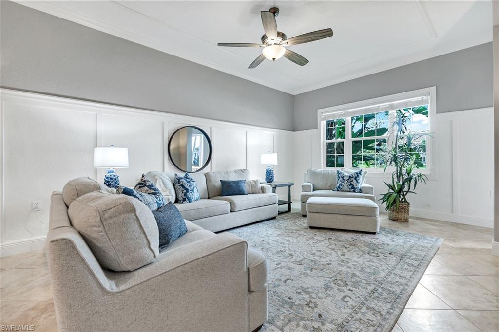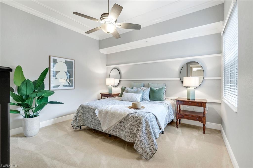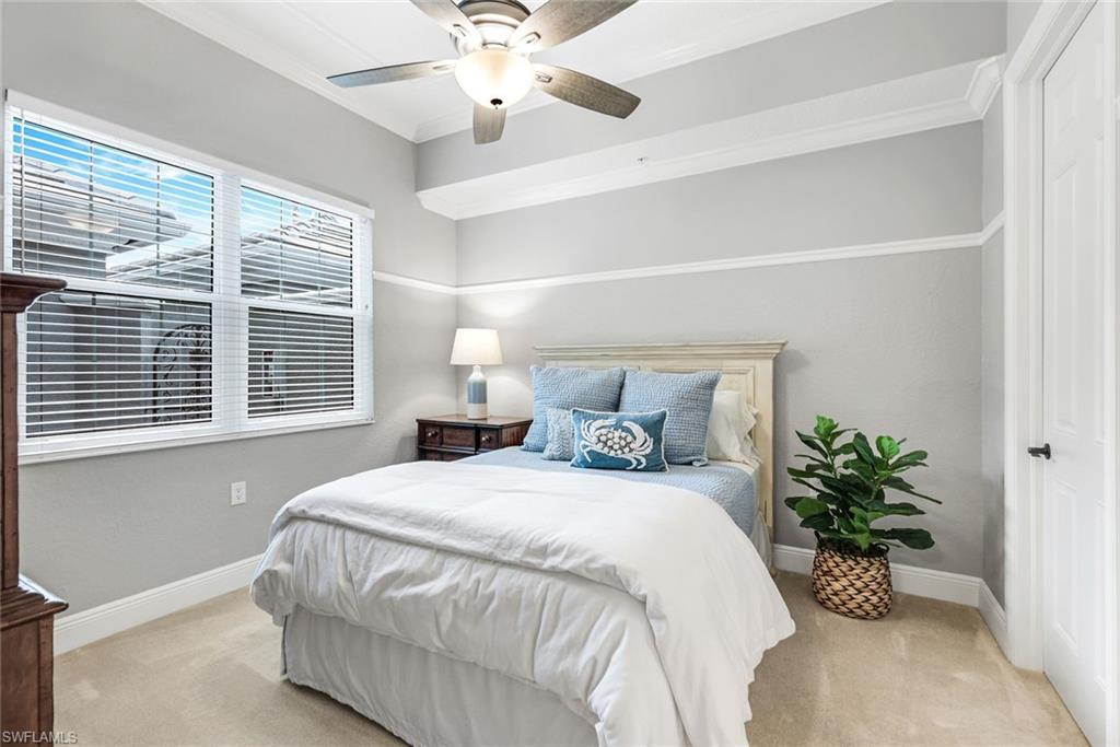 Former model, with loads of architectural detail and a view to die-for, this 3 bedroom, 3 bath coach home is absolutely fabulous! Beautifully designed millwork throughout creates a sophisticated layered backdrop for the coastal palette and clean lines that are fresh and current. Offered beautifully furnished and absolutely immaculate, with a long sparkling water view and spectacular sunsets every single day. Spacious primary suite with ensuite bath featuring soaking tub, shower, and dual vanities. 2 large walk in closets and 2 inviting guest rooms at the opposite end of the home, offer privacy and relaxation for all. The dining room flows into a conversation style living room, plus a full family room and kitchen adjacent creates the perfect entertaining space and functional living year round. Enjoy a short bike ride to the heart of the community, the updated 54, 000 sq ft home to the state of the art gym with new equipment, yoga studio, pilates room, 2 resort pools with waterfalls and slides, 2 newly renovated restaurants, spa services, fitness classes, full time activity staff providing special events and classes year round, tennis, expanded pickle ball and bocce ball. Miles of sidewalks, all underground utilities, lush landscaping, location, modern coastal designed future building, plus the overall design of the community sets Fiddler’s Creek apart from all others and is a gem of south Naples. As if this wasn’t enough, there is also an optional beach and/or marina membership available, an extremely rare opportunity to enjoy the beach club at the Marco Beach Ocean Resort and the Marina on Isles of Capri. If you are a golfer, you are in the right place! The Golf Club at Fiddler’s Creek just completed a total turf renovation, re-designed Arthur Hills greens, an amazing practice facility, all anchored by the brand new spectacular private golf clubhouse. Equity memberships are currently available with no waiting list. Come see this breath of fresh air come to life in this stunning coach home just minutes from Marco Island and downtown Naples!