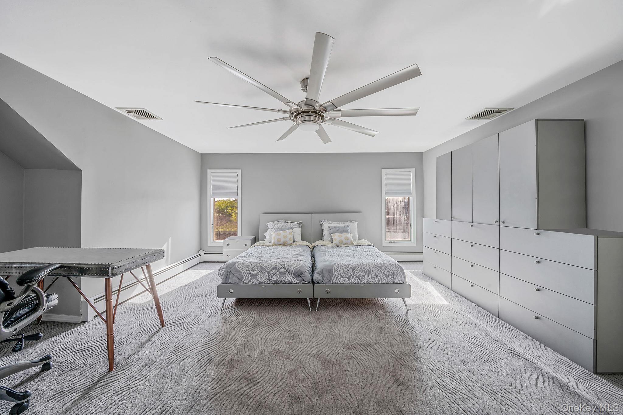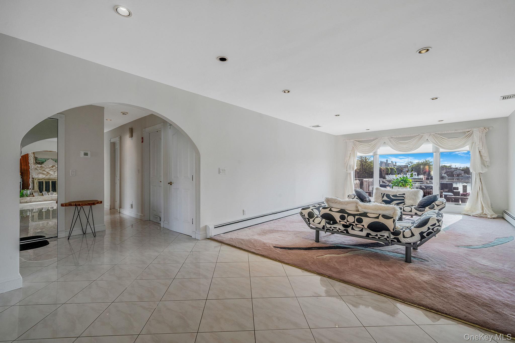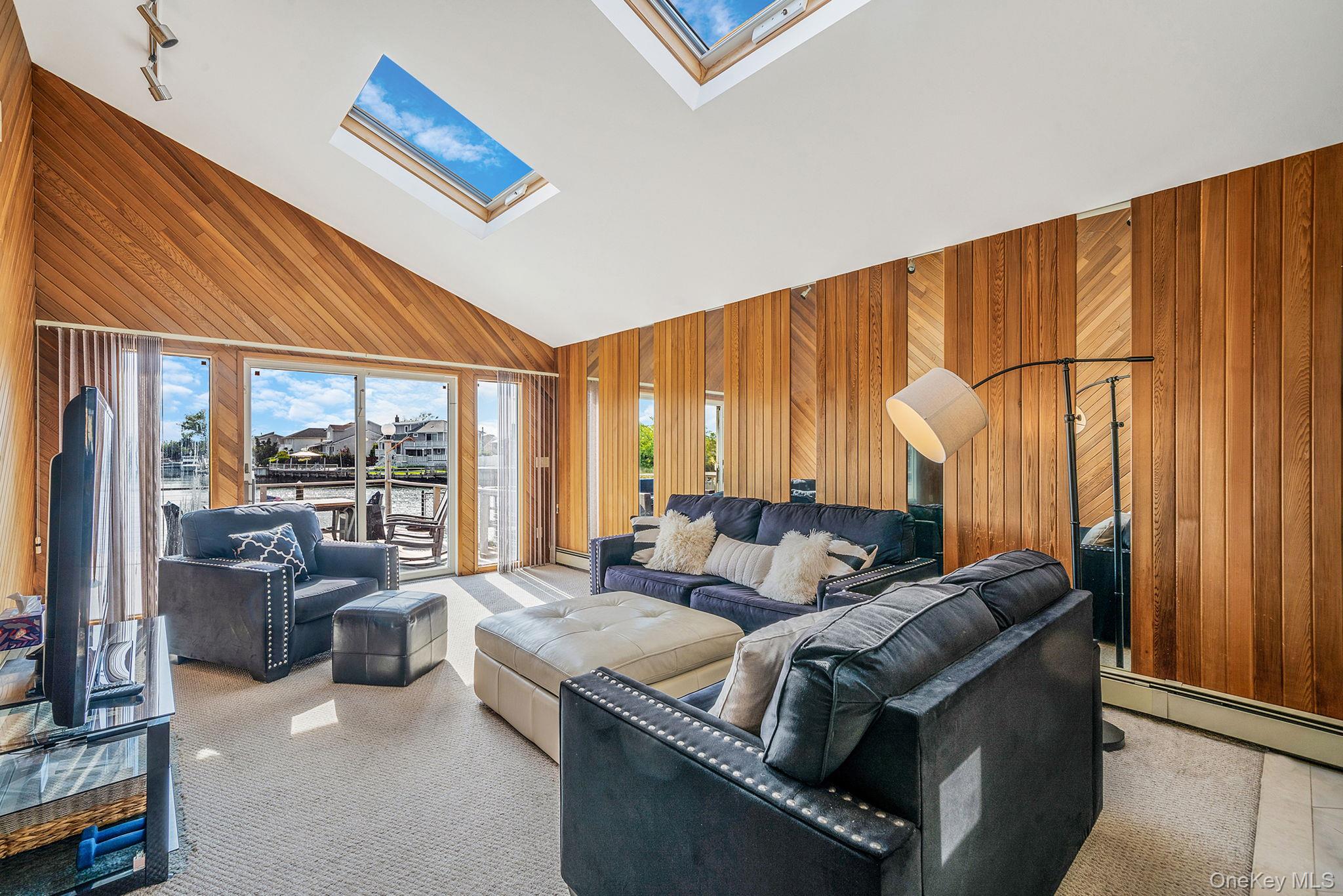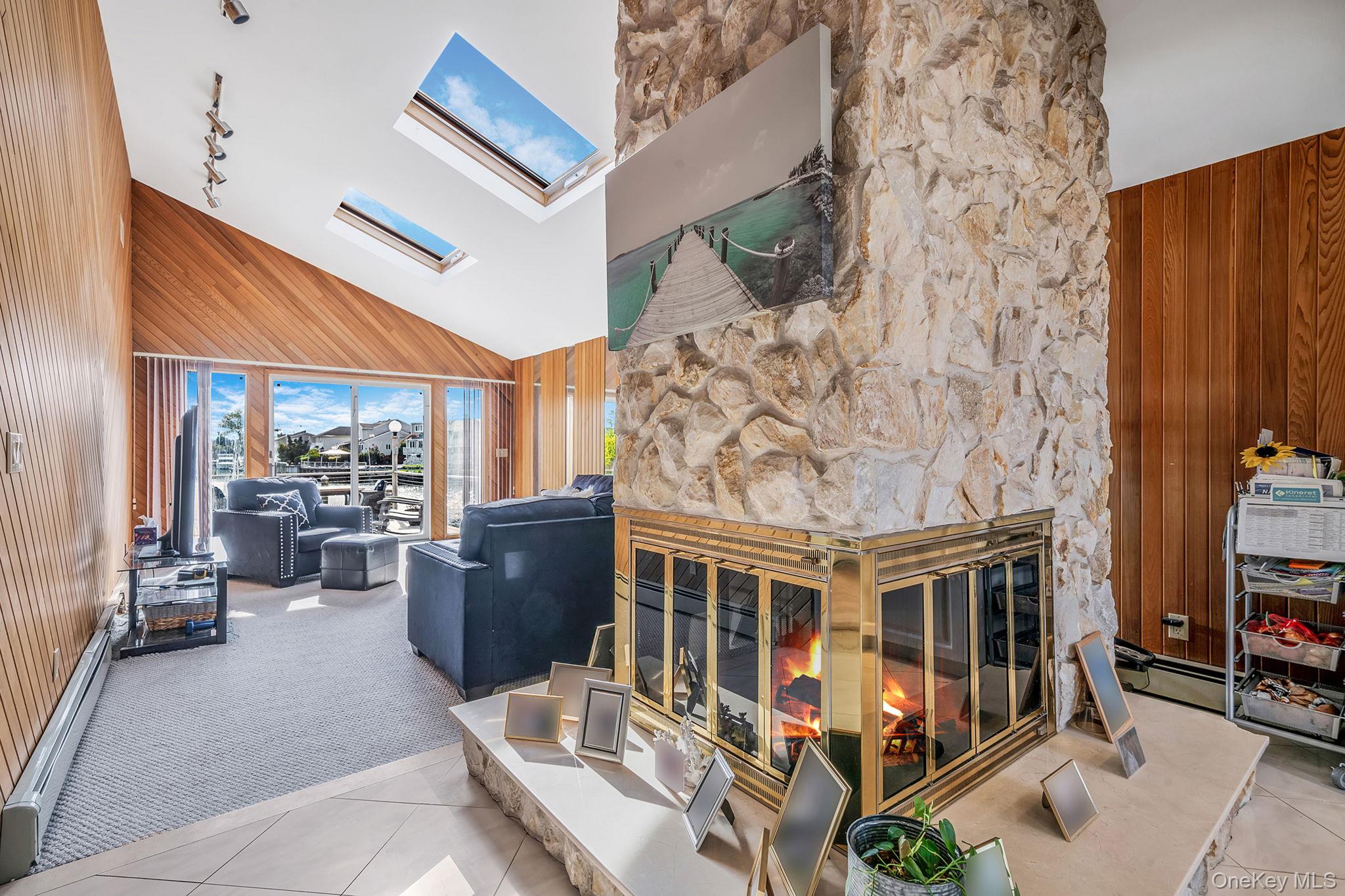 Discover a warm and inviting waterfront escape offering 3, 045 sq ft of comfortable living space on an impressive 80ft wide deep canal where summer 2026 can be boating days, backyard nights, and a lifestyle that feels like vacation. This expanded 4 bedroom, 2 bath ranch features open, sunlit interiors with an eat-in kitchen that flows into a spacious family room anchored by a dramatic floor-to-vaulted-ceiling 3 sided stone fireplace. Large windows and sliding doors showcase panoramic water views and lead to a generous deck with a pool, creating seamless indoor-outdoor living for everyday enjoyment or easy entertaining. The primary suite provides serene water views, private deck access, and a spa-inspired bath with an oversized soaking tub and separate shower. The exterior truly shines with 80ft of waterfront, a massive floating dock, and multiple slips, currently accommodating a 22-ft boat, a 40-ft boat, and jet skis, offering exceptional space for a variety of water toys. Additional highlights include a garage, circular driveway, manicured landscaping, and expansive windows that frame the tranquil canal setting. This rare property offers a versatile waterfront lifestyle with open views, generous indoor and outdoor spaces, and a layout ideal for relaxing, hosting, and enjoying time on the water.