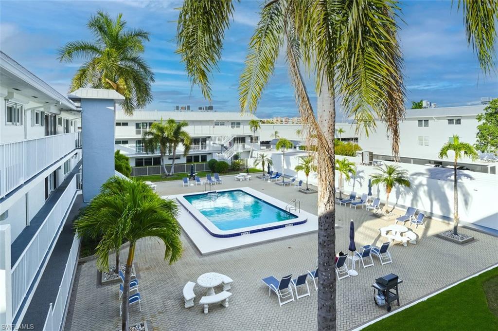COVERED BOAT SLIP w/ LIFT INCLUDED ($200, 000)! Beautiful 2 bedroom, 2 bath, Top floor (3rd floor) END UNIT CONDO - NEW WOOD-LIKE PLANK FLOORS THROUGHOUT-One of the most FINANCIALLY sound associations in OLDE NAPLES! Certificate of Ownership in the "Adventure's Club" is included! Just a few blocks away from Tin City, 5th Avenue & 3rd Street shopping, dining, galleries, beaches and Naples Pier. Bright and open floor plan with lots of natural light, plantation shutters, granite counters, laundry in residence. Corner units have more square footage than other units and top floor gives you great views of the boats and pool. A deeded 27-ft covered boat slip (water & electricity included) with a 10, 000 lb lift is just steps away. Direct Gulf access. . . NO bridges. If you're not a boater, you can RENT the boat slip to generate THOUSANDS OF DOLLARS of passive income. Unit has an assigned covered parking space and a storage unit (8. 5x4. 5). Residents use the common elevator or stairway accessibility. Great opportunity to own your piece of paradise or investment property. THE BEST VALUE IN OLDE NAPLES!