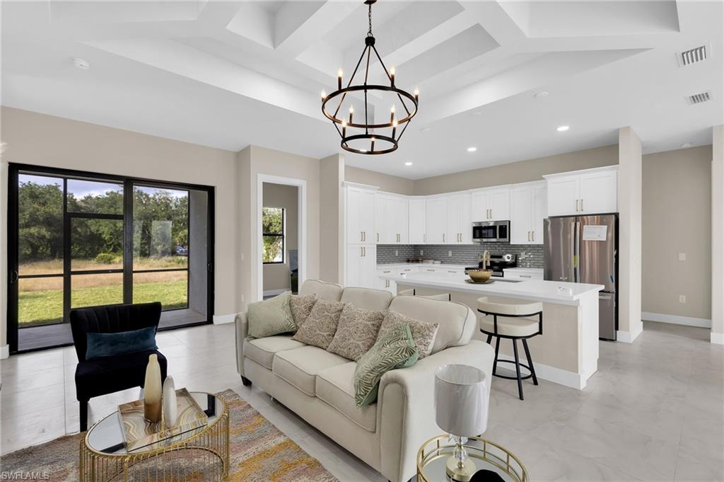Not the typical cookie cutters lehigh home. Design , engineer and build by naples engineer and builder. 10 ft ceiling with tray throughout the house. Build in entertainment center with electric fire place to add elegance. Open floor plan with good sizable master bedroom. Outside kitchen, screen lanai.