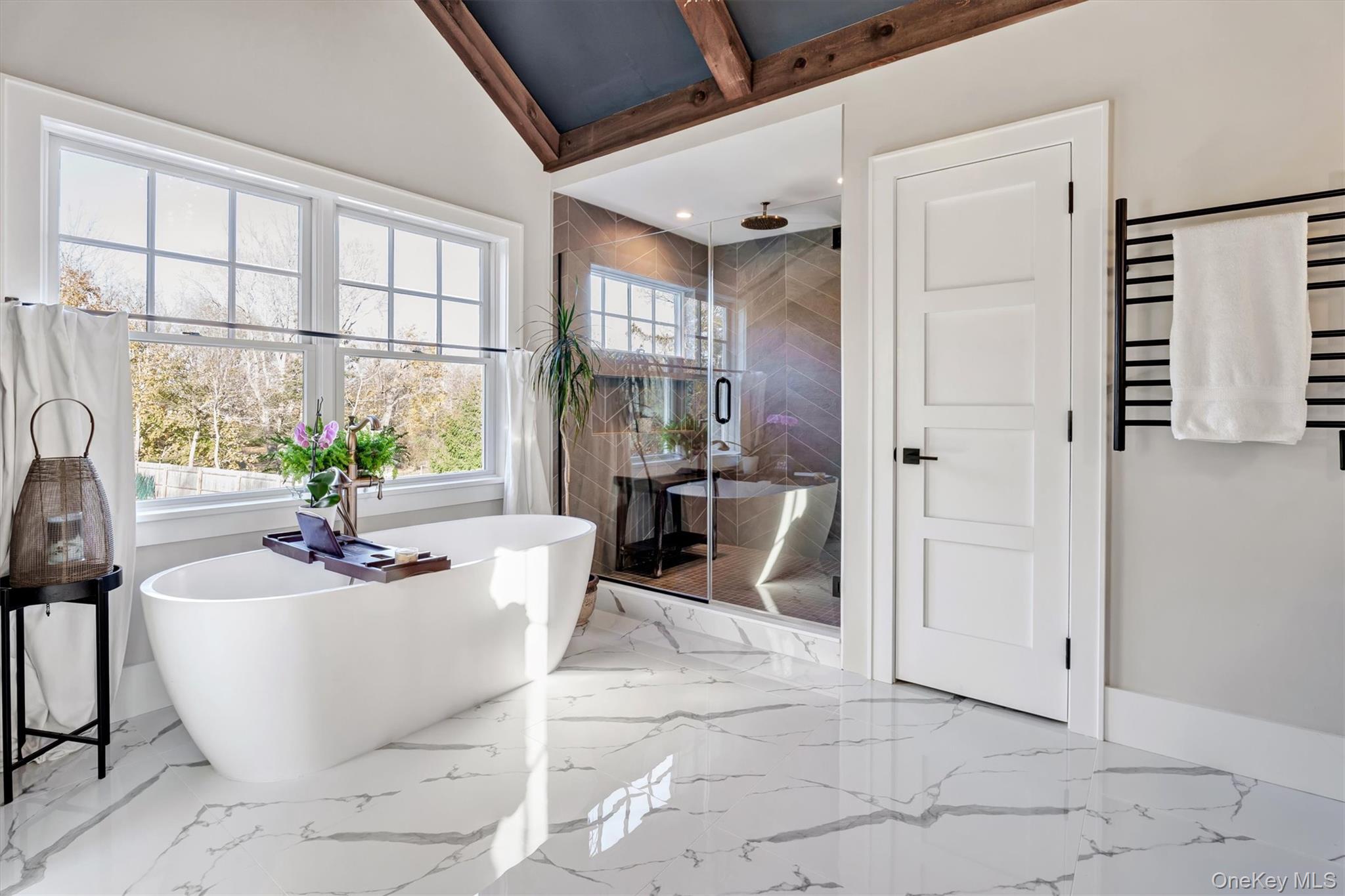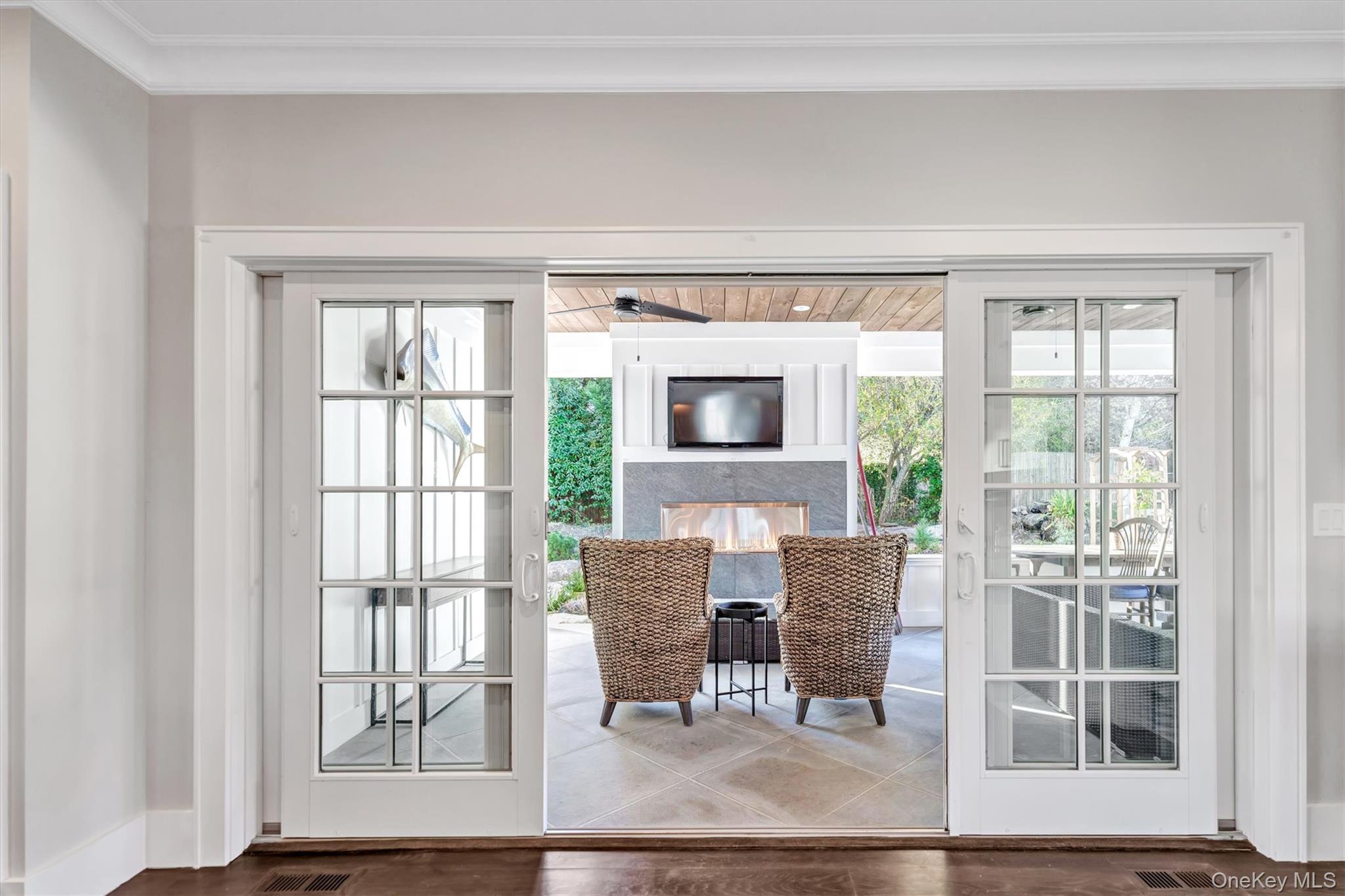 A rare opportunity to own a custom built home in the coastal town of East Moriches. Thoughtfully designed, this newly constructed residence showcases craftsmanship, quality and attention to detail that is truly exceptional. Wood beams from the original home that stood on the property are incorporated in architectural details and are evident throughout the home. Set on beautifully landscaped grounds, the property offers a serene, farm-country setting just steps from Moriches Bay. Inside, sun-filled rooms and elevated timeless finishes define the home's inviting layout. The anchor of the chef's kitchen is the massive custom island and a 60 inch commercial depth Thermador range. Custom cabinetry and built-in appliances have been carefully curated for epicurean enjoyment. Covered porches flank both the front and west side of the house. The side porch offers peaceful views of the fish pond and can be enjoyed for extended seasons thanks to a built-in fireplace and radiant heated floor. The large barn/garage is original to the property and reconstructed for modern conveniences and provides exceptional flexibility--perfect for the car enthusiast or as a workshop. Additional features include a full unfinished basement with 10 foot ceilings and radiant floors. East Moriches is just 75 miles from Manhattan and is known as the gateway to the Hamptons. This home blends luxury living with true South Shore charm. Located near local marinas, waterways, farm stands and restaurants. This is a one-of-a-kind offering designed for both beauty and timeless appeal. Located in the East Moriches School District with choice of high schools. Room for pool