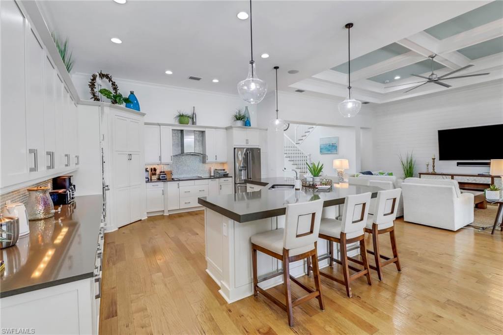 AN “ISLES” BEST BUY – LOWEST PRICED 5 BEDROOM SINGLE FAMILY HOME IN “THE ISLES”! This 2-story 5 bedroom, each with private bath, two additional half-baths, den, waterfront pool home is being sold FURNISHED WITH 6 PASSENGER GOLF CART! The end of cul-de-sac location enhances PRIVACY with rare fenced side yard and waterfront back yard. The beautiful, large GREAT ROOM features hickory hardwood flooring, soaring ceiling, GOURMET KITCHEN with DINING ROOM, all adjacent to the large covered lanai with SUMMER KITCHEN, OUTDOOR LIVING ROOM, FIREPIT, POOL BATH and protected by STORM SHUTTERS. The adjacent outdoor screened lanai covers the OVERSIZED INFINITY EDGE POOL and travertine POOL DECK overlooking the back yard and lake. Additional home amenities include: Large 2nd Floor BONUS ROOM with Balcony overlooking Pool and Lake, 2 HVAC units (replaced 2/24), NEW Water Heater (10/23), NEW Pool Heater (01/22), Dehumidifier (replaced 2/24), Impact Doors and Windows, Electric Storm Shutters. This home is in an X500 Flood Zone: Flood insurance usually not a requirement if financing. FIRST CLASS AMENITIES in The Isles of Collier Preserve include: resort-style pool, spa, , separate lap pool, state-of-the-art fitness center, locker rooms, saunas, tennis, pickleball, bocce, 8 miles of walking and hiking trails, pool-side restaurant, kayaking, canoeing, paddle boarding, dog park, all in an eco-environment with more than half of The Isles a natural preserve. LOCATION! LOCATION! LOCATION! Only 4 miles to OLD NAPLES beaches, shopping and fine dining, adjacent to NAPLES BOTANICAL GARDEN and a short drive to Marco Island.