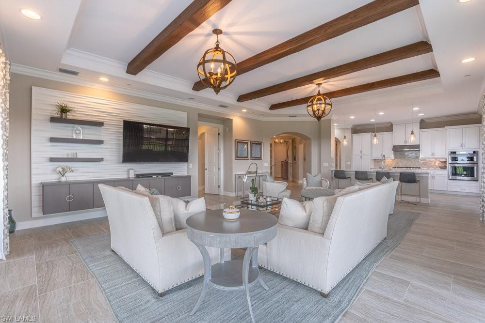 Top floor "Penthouse” Carrara condo comes FURNISHED professional decorated by Design West! Truly unique unit unobstructed views all around. Amazing waterfall/rock feature and golf course views from hole 1 outside your loggia areas, kitchen, and primary bedroom. Large rectangular porcelain tile floors, and wood beams in the living area. White cabinetry in the kitchen with natural gas range for cooking. Automatic storm screens blend in seamlessly as they are the same color as the walls. 2 assigned parking spots on ground floor with additional private storage space and room to park a golf cart. “Carrara” @ Talis Park includes 90 individually owned finished & built out spacious units of maintenance free condo living. Private community pool, spa and grills just for the street. Talis Park's newly renovated golf course and driving range was designed by Greg Norman and Pete Dye and is ranked by Golf Digest as one of Florida's top 20 courses. Short bike ride or golf cart drive to the clubhouse (voted Clubhouse of the year 2016 by Golf Inc. Magazine!) Core Fitness Center, Esprit Spa, and Fiona’s Market Café. Expanded clubhouse rotunda bar area, fitness center, dog park. The community Sports Complex has 5 tennis courts, 4 pickleball courts, and bocce. A Sports Membership purchase is required.