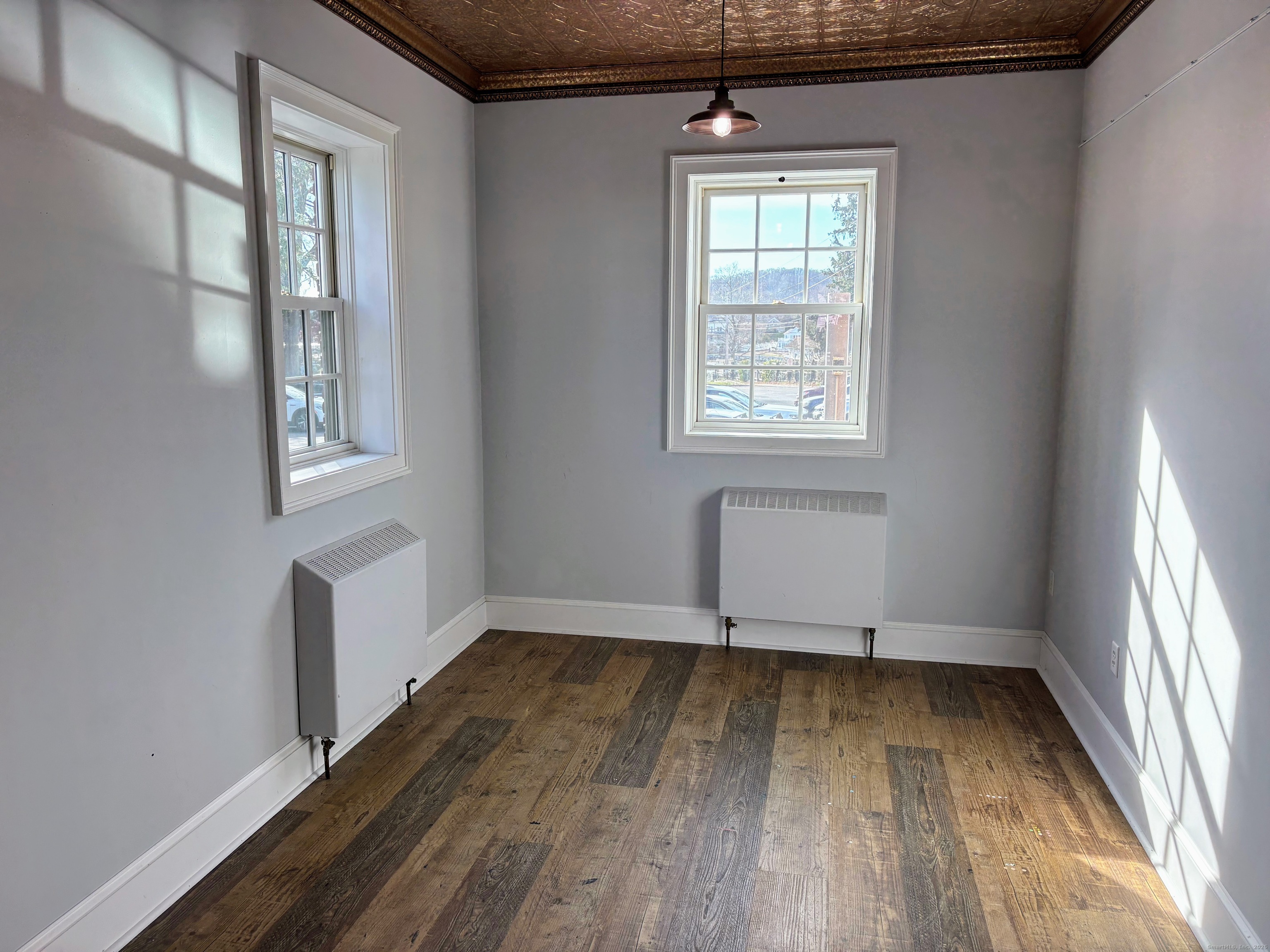 Nearly 1, 300 sqft in Essex Village, First Floor, Suite 6- One large open room in front and 3 smaller rooms + 2 restrooms. Unfinished basement, split systems for A/C, Tenant has responsibility of heat and electric. Landlord is responsible for all grounds care and snow removal. On site off street parking ***Price noted is a discount for the first year***