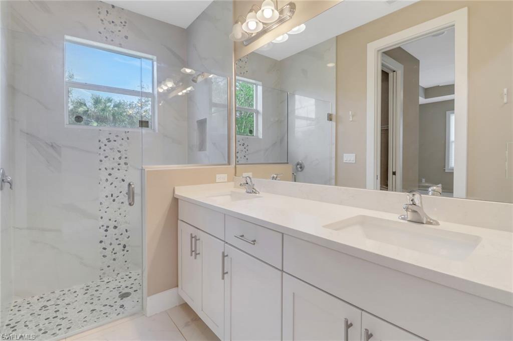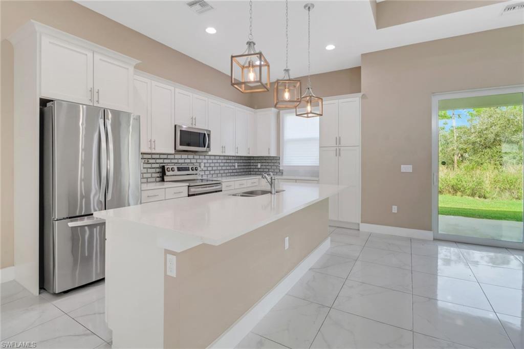 A fantastic place to call home. Imagine yourself living in this bright and spacious three-bedroom plus den, two bath, two car garage home, situated on two and one-half acres of land. As you enter through the front door, you are welcomed into a large great room leading to the open kitchen and dining area. The kitchen features quartz countertops and stainless steel appliances. Imagine hosting get-togethers with family and friends surrounding the large island in the kitchen. The great room also has a sliding glass door that leads to the lanai for al fresco dining. Enjoy watching the children play in the backyard area while sipping your morning coffee or afternoon cocktail on the lanai. An in-residence laundry room will make wash day a breeze. At the end of the day, retire to your master bedroom retreat complete with en-suite bathroom that features dual sinks and a large shower. There are two other spacious bedrooms and a guest bathroom on the opposite side of the home, affording privacy to everyone. Upgrades include impact resistant windows and doors and 24 inch tile throughout the home. Pets are allowed with landlord approval.