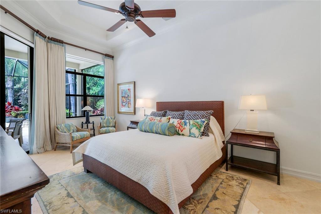 6477 Costa Circle embodies a level of refinement rarely found in Lely Resort. Set within the exclusive enclave of Lakoya, this custom Greenbriar II by Stock Signature Homes pairs architectural integrity with a curated aesthetic that elevates every room. A hand-forged Cantera iron door opens to interiors defined by thoughtful craftsmanship—24-inch diagonal stone flooring, tailored millwork, and a luminous flow of natural light. The kitchen serves as both a functional workspace and a work of art, showcasing stacked illuminated cabinetry, a walnut butcher-block island, hand-painted Tabarka tile, a Viking gas cooktop, Monogram appliances, and a California Closets pantry designed for effortless organization. Sophisticated detailing continues throughout: an antique-mirror feature wall in the dining room, living-room beams with integrated LED lighting, and a bespoke pool bath finished with artisanal tilework. The primary suite stands apart as a serene retreat, enriched with Venetian plaster walls in the bath and dual closets by California Closets. Beyond the glass, more than 2, 400 square feet of lanai space creates an exceptionally private sanctuary. A rectilinear saltwater pool and spa anchor the outdoor living experience, surrounded by mature tropical landscaping and the luxury of true western exposure for nightly sunsets. The 710-square-foot covered area is finished with a cypress ceiling, custom cabinetry, wet bar, sink, refrigerator, and a built-in TV—an outdoor living room designed for year-round enjoyment. Additional features include solid-core doors, impact-resistant windows and doors, hot-water recirculation, custom lighting, upgraded window treatments, and a finished garage with workbench. The result is a residence that feels bespoke at every turn. Within minutes of downtown Naples and the Gulf, and complemented by world-class golf, tennis, spa, and dining amenities, this home speaks to the buyer who values craftsmanship, privacy, and a sophisticated resort lifestyle.