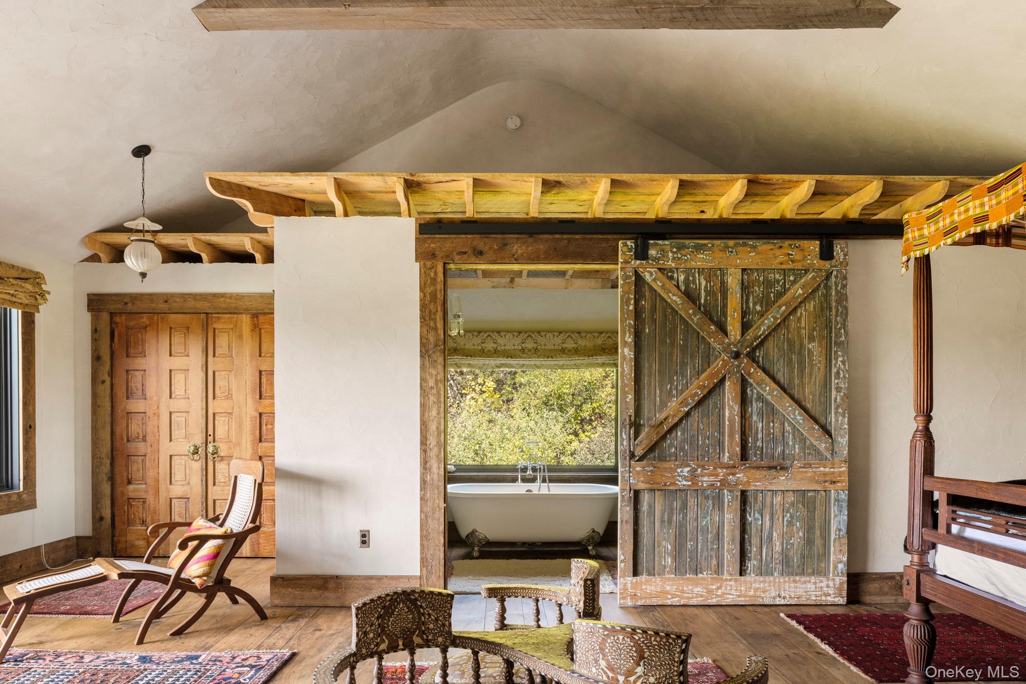 A rare opportunity to own a true Hudson Valley compound awaits in Germantown with this exceptional offering of two neighboring properties—114 Best Lane and 249 Old Saw Mill Road. Together, they seamlessly encompass three unique structures on over 16 acres of pristine land, blending architectural character, modern refinement, and breathtaking natural surroundings including far reaching views of the Catskill Mountains. The custom-designed main residence at 249 Old Saw Mill Road draws its inspiration from the handsome barns at 114 Best Lane, echoing their forms and materials with a sophisticated, contemporary sensibility. Thoughtfully crafted with an emphasis on natural textures and an unwavering attention to detail, the home offers warmth, elegance, and an effortless connection to the landscape. At its core is an expansive open-concept kitchen, dining, and living area, anchored by a wood-burning fireplace and framed by panoramic, western-facing views of the Catskills. The home features two private primary suites, each with its own balcony ideal for enjoying sunset vistas. One suite includes a wood-burning fireplace, creating an intimate and luxurious retreat. A third en suite guest bedroom provides comfort and privacy for visitors. The lower level offers a media lounge, perfect for relaxation or entertaining, while a 2-car garage adds everyday convenience. Just a short stroll away along a private trail, 114 Best Lane features two contemporary barns, one original but fully renovated, and the other newly built, offering dramatic, flexible space for guests, entertainment, creative pursuits, and memorable gatherings. The two barns embody an aesthetic that merges both utter simplicity with the luxury of texture and color. Each is wrapped by porches and has soaring windows and vast doors that open to nature and invite light and views. Exposed beams, stone materials, lofted spaces, and open floor plans create the illusion that inside and outside are one and the same. The main guesthouse has four fireplaces that share an enormous brick chimney that rises proudly through the center of the building. Throughout the structures there are four bedrooms, four bathrooms and two powder rooms. There is a clawfoot or pedestal tub on every floor, including two outside, for peaceful moments while literally soaking it all in. Custom millwork, stained poured-concrete floors and curated finishes lend depth and sophistication. Outdoor living is equally inviting, with covered dining porches, an outdoor shower and soaking tubs, room for a pool and other wellness pursuits like walking trails, vegetable and cutting gardens, and open lawns that can be shaped into both private retreats and shared areas for gathering. A property of this scale and character rarely comes to market in Germantown. This compound is ready for someone who values land, design, nature, and the ability to shape a retreat that feels both personal and expansive. Close by to both Hudson and Rhinebeck and within 2 hours and 15 minutes to Midtown.