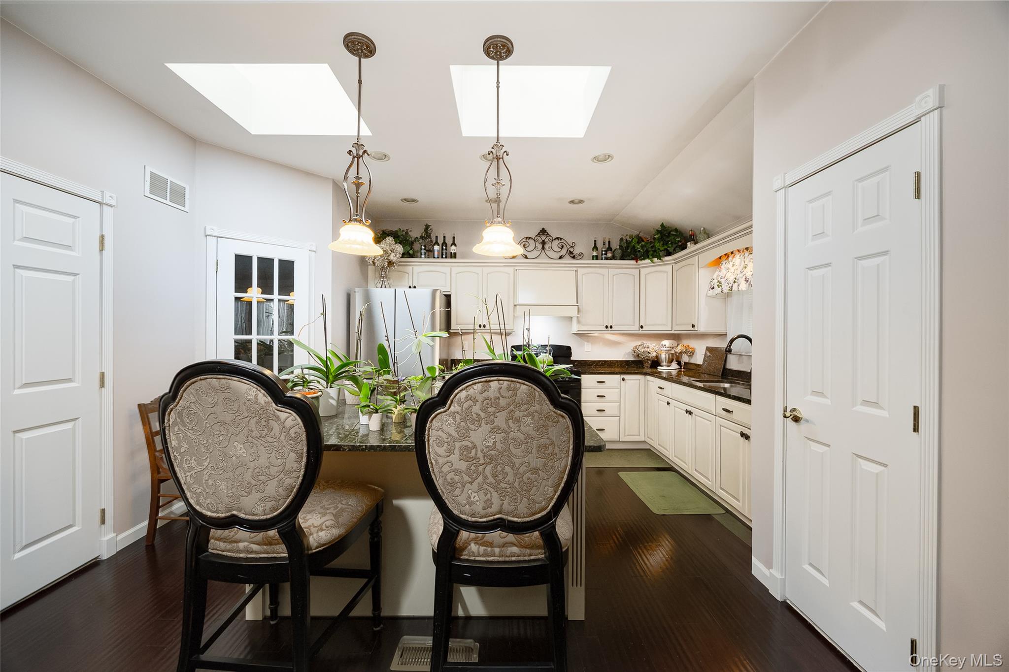 Oversized custom raised ranch privately situated on beautiful 1. 6 acre parcel. Versatile floor plan includes large annex with apartment conducive to in-law suite or guest quarters. Main home includes massive living room/dining room combo complete with fireplace and cathedral ceiling, which flows seamlessly to sunroom w/cathedral ceiling and access to two tiered composite deck. Spacious eat-in kitchen w/granite counter & pantry. Primary bedroom w/walk-in closet, second closet plus ensuite bathroom. Two additional well proportioned bedrooms & full bathroom complete the main level layout. Lower level includes family room w/fireplace, half bathroom/laundry room & access to three season room, ideal for entertaining. Oversized two car garage & shed for abundant storage. Accessory apartment offers attractive layout and designer finishes. Open floor plan featuring kitchen w/custom cabinetry, granite counter, center island, walk-in pantry plus second pantry. Spacious living room/dining area with hardwood floor & crown molding. Large bedroom w/cathedral ceiling & walk-in closet plus office/den. Glamorous bathroom complete with cathedral ceiling, skylight and tile shower. Quiet & private yet located just minutes from schools, shopping, area attractions & commuter routes. The perfect place to entertain .